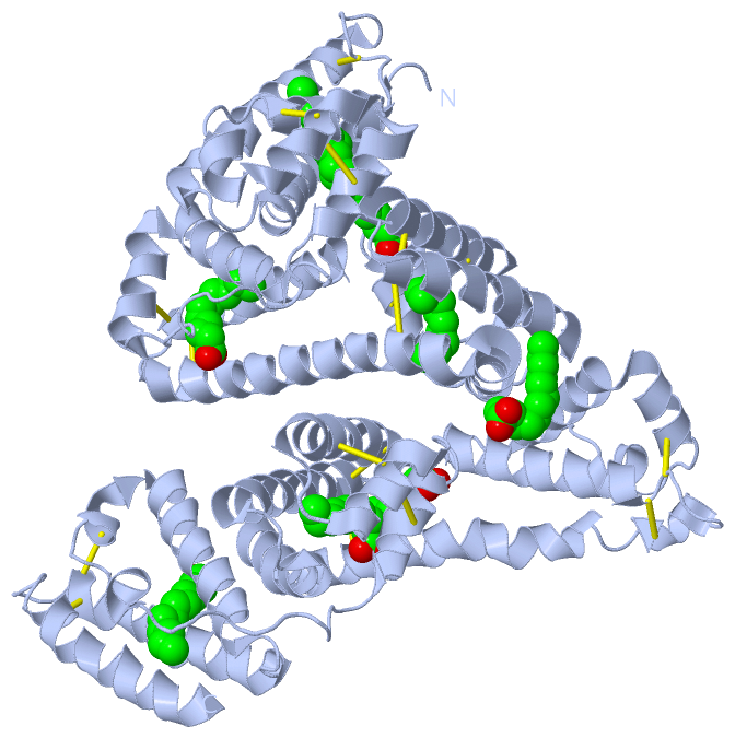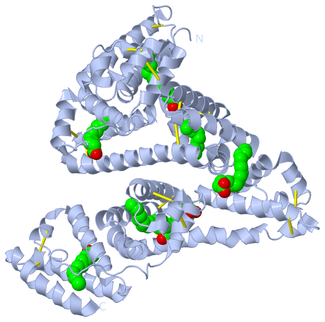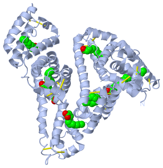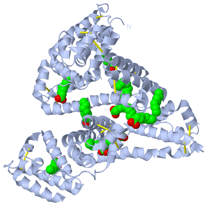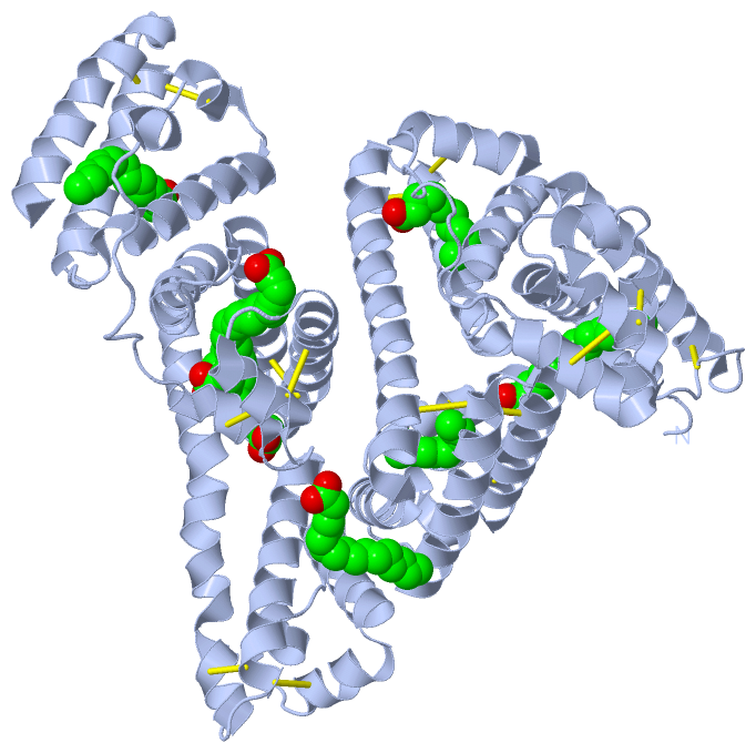 1E7H | 3D3D | (1) | HUMAN SERUM ALBUMIN COMPLEXED WITH HEXADECANOIC ACID (PALMITIC ACID) |