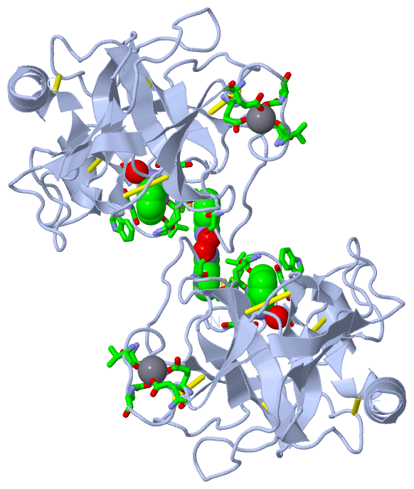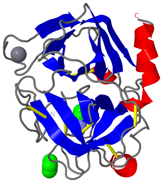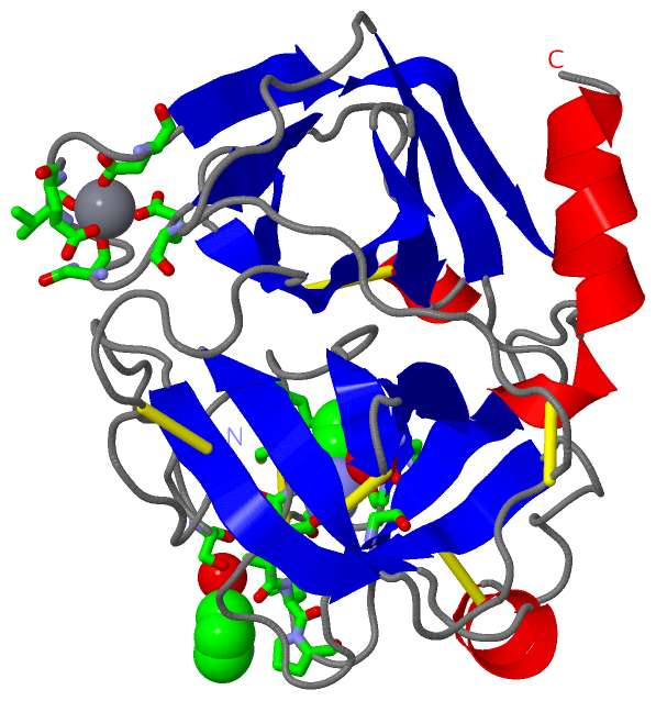 | | GO:0004252 | | serine-type endopeptidase activity | | Catalysis of the hydrolysis of internal, alpha-peptide bonds in a polypeptide chain by a catalytic mechanism that involves a catalytic triad consisting of a serine nucleophile that is activated by a proton relay involving an acidic residue (e.g. aspartate or glutamate) and a basic residue (usually histidine). |