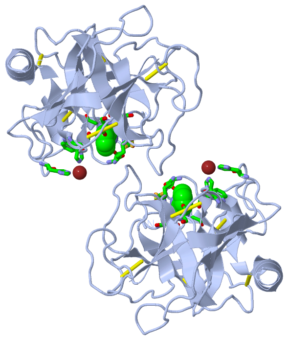 | | GO:0008236 | | serine-type peptidase activity | | Catalysis of the hydrolysis of peptide bonds in a polypeptide chain by a catalytic mechanism that involves a catalytic triad consisting of a serine nucleophile that is activated by a proton relay involving an acidic residue (e.g. aspartate or glutamate) and a basic residue (usually histidine). |