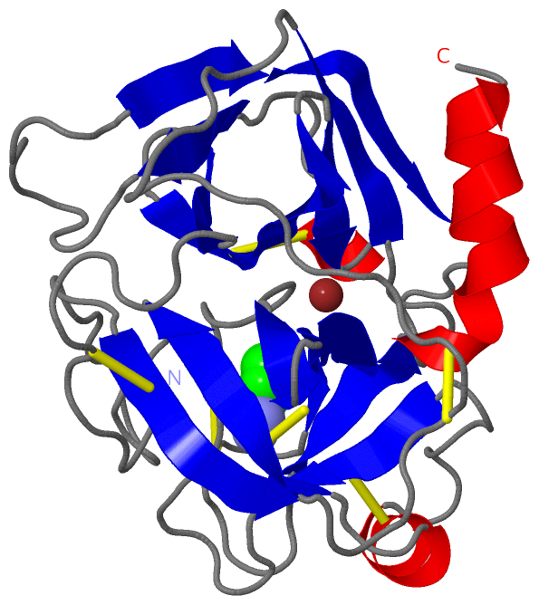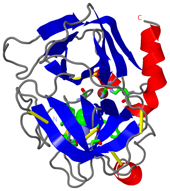 | | GO:0004252 | | serine-type endopeptidase activity | | Catalysis of the hydrolysis of internal, alpha-peptide bonds in a polypeptide chain by a catalytic mechanism that involves a catalytic triad consisting of a serine nucleophile that is activated by a proton relay involving an acidic residue (e.g. aspartate or glutamate) and a basic residue (usually histidine). |