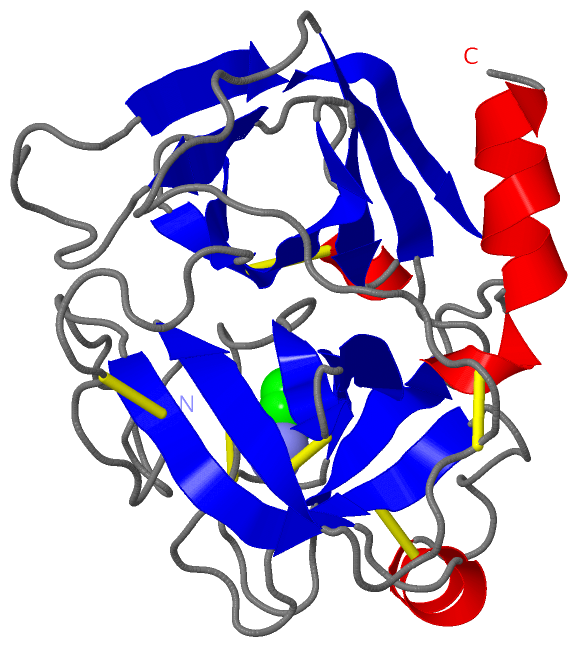 | | GO:0004252 | | serine-type endopeptidase activity | | Catalysis of the hydrolysis of internal, alpha-peptide bonds in a polypeptide chain by a catalytic mechanism that involves a catalytic triad consisting of a serine nucleophile that is activated by a proton relay involving an acidic residue (e.g. aspartate or glutamate) and a basic residue (usually histidine). |
