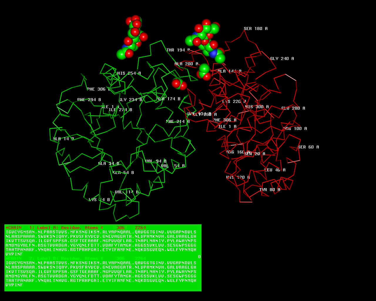 Asymmetric/Biological UnitChain A from PDB Type:PROTEIN Length:306 aligned with GUB2_HORVU | P12257 from UniProtKB/Swiss-Prot Length:312 Alignment length:306 16 26 36 46 56 66 76 86 96 106 116 126 136 146 156 166 176 186 196 206 216 226 236 246 256 266 276 286 296 306 GUB2_HORVU 7 IGVCYGMSANNLPAASTVVSMFKFNGIKSMRLYAPNQAALQAVGGTGINVVVGAPNDVLSNLAASPAAAASWVKSNIQAYPKVSFRYVCVGNEVAGGATRNLVPAMKNVHGALVAAGLGHIKVTTSVSQAILGVFSPPSAGSFTGEAAAFMGPVVQFLARTNAPLMANIYPYLAWAYNPSAMDMGYALFNASGTVVRDGAYGYQNLFDTTVDAFYTAMGKHGGSSVKLVVSESGWPSGGGTAATPANARFYNQHLINHVGRGTPRHPGAIETYIFAMFNENQKDSGVEQNWGLFYPNMQHVYPINF 312 SCOP domains d1aq0a_ A: Plant beta-glucanases SCOP domains CATH domains 1aq0A00 A:1-306 Glycosidases CATH domains Pfam domains ------------------------------------------------------------------------------------------------------------------------------------------------------------------------------------------------------------------------------------------------------------------------------------------------------------------ Pfam domains SAPs(SNPs) ------------------------------------------------------------------------------------------------------------------------------------------------------------------------------------------------------------------------------------------------------------------------------------------------------------------ SAPs(SNPs) PROSITE ---------------------------------------------------------------------------------------------------------------------------------------------------------------------------------------------------------------------------------GLYCOSYL_HYDRO------------------------------------------------------------------- PROSITE Transcript ------------------------------------------------------------------------------------------------------------------------------------------------------------------------------------------------------------------------------------------------------------------------------------------------------------------ Transcript 1aq0 A 1 IGVCYGMSANNLPAASTVVSMFKSNGIKSMRLYAPNQAALQAVGGTGINVVVGAPNDVLSNLAASPAAAASWVKSNIQAYPKVSFRYVCVGNEVAGGATRNLVPAMKNVHGALVAAGLGHIKVTTSVSQAILGVFSPPSAGSFTGEAAAFMGPVVQFLARTNAPLMANIYPYLAWAYNPSAMDMGYALFNASGTVVRDGAYGYQNLFDTTVDAFYTAMGKHGGSSVKLVVSESGWPSGGGTAATPANARFYNQHLINHVGRGTPRHPGAIETYIFAMFNENQKDSGVEQNWGLFYPNMQHVYPINF 306 10 20 30 40 50 60 70 80 90 100 110 120 130 140 150 160 170 180 190 200 210 220 230 240 250 260 270 280 290 300 Chain B from PDB Type:PROTEIN Length:306 aligned with GUB2_HORVU | P12257 from UniProtKB/Swiss-Prot Length:312 Alignment length:306 16 26 36 46 56 66 76 86 96 106 116 126 136 146 156 166 176 186 196 206 216 226 236 246 256 266 276 286 296 306 GUB2_HORVU 7 IGVCYGMSANNLPAASTVVSMFKFNGIKSMRLYAPNQAALQAVGGTGINVVVGAPNDVLSNLAASPAAAASWVKSNIQAYPKVSFRYVCVGNEVAGGATRNLVPAMKNVHGALVAAGLGHIKVTTSVSQAILGVFSPPSAGSFTGEAAAFMGPVVQFLARTNAPLMANIYPYLAWAYNPSAMDMGYALFNASGTVVRDGAYGYQNLFDTTVDAFYTAMGKHGGSSVKLVVSESGWPSGGGTAATPANARFYNQHLINHVGRGTPRHPGAIETYIFAMFNENQKDSGVEQNWGLFYPNMQHVYPINF 312 SCOP domains d1aq0b_ B: Plant beta-glucanases SCOP domains CATH domains 1aq0B00 B:1-306 Glycosidases CATH domains Pfam domains ------------------------------------------------------------------------------------------------------------------------------------------------------------------------------------------------------------------------------------------------------------------------------------------------------------------ Pfam domains SAPs(SNPs) ------------------------------------------------------------------------------------------------------------------------------------------------------------------------------------------------------------------------------------------------------------------------------------------------------------------ SAPs(SNPs) PROSITE ---------------------------------------------------------------------------------------------------------------------------------------------------------------------------------------------------------------------------------GLYCOSYL_HYDRO------------------------------------------------------------------- PROSITE Transcript ------------------------------------------------------------------------------------------------------------------------------------------------------------------------------------------------------------------------------------------------------------------------------------------------------------------ Transcript 1aq0 B 1 IGVCYGMSANNLPAASTVVSMFKSNGIKSMRLYAPNQAALQAVGGTGINVVVGAPNDVLSNLAASPAAAASWVKSNIQAYPKVSFRYVCVGNEVAGGATRNLVPAMKNVHGALVAAGLGHIKVTTSVSQAILGVFSPPSAGSFTGEAAAFMGPVVQFLARTNAPLMANIYPYLAWAYNPSAMDMGYALFNASGTVVRDGAYGYQNLFDTTVDAFYTAMGKHGGSSVKLVVSESGWPSGGGTAATPANARFYNQHLINHVGRGTPRHPGAIETYIFAMFNENQKDSGVEQNWGLFYPNMQHVYPINF 306 10 20 30 40 50 60 70 80 90 100 110 120 130 140 150 160 170 180 190 200 210 220 230 240 250 260 270 280 290 300