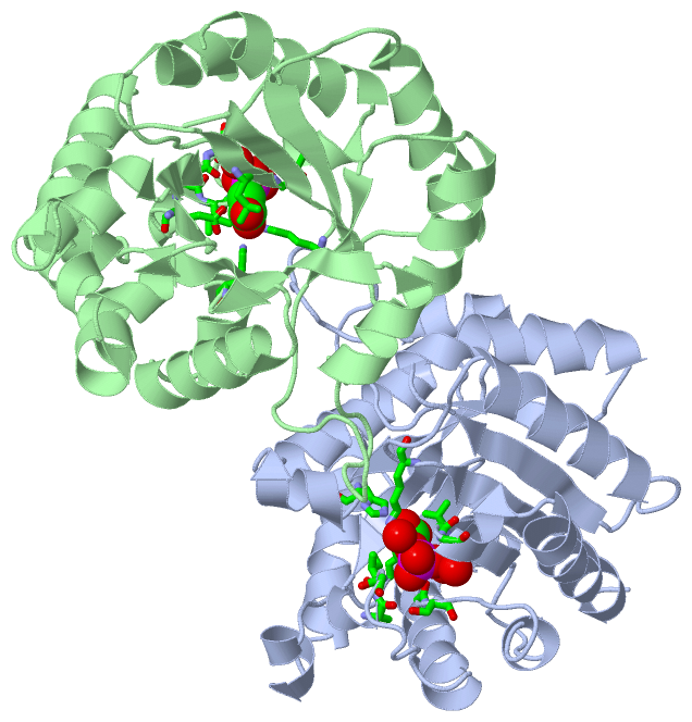Asymmetric UnitChain A from PDB Type:PROTEIN Length:255 aligned with TPIS_MORMI | P50921 from UniProtKB/Swiss-Prot Length:256 Alignment length:255 11 21 31 41 51 61 71 81 91 101 111 121 131 141 151 161 171 181 191 201 211 221 231 241 251 TPIS_MORMI 2 RHPVVMGNWKLNGSKEMVVDLLNGLNAELEGVTGVDVAVAPPALFVDLAERTLTEAGSAIILGAQNTDLNNSGAFTGDMSPAMLKEFGATHIIIGHSERREYHAESDEFVAKKFAFLKENGLTPVLCIGESDAQNEAGETMAVCARQLDAVINTQGVEALEGAIIAYEPIWAIGTGKAATAEDAQRIHAQIRAHIAEKSEAVAKNVVIQYGGSVKPENAAAYFAQPDIDGALVGGAALDAKSFAAIAKAAAEAKA 256 SCOP domains d1aw1a_ A: Triosephosphate isomerase SCOP domains CATH domains 1aw1A00 A:2-256 Aldolase class I CATH domains Pfam domains --------------------------------------------------------------------------------------------------------------------------------------------------------------------------------------------------------------------------------------------------------------- Pfam domains SAPs(SNPs) --------------------------------------------------------------------------------------------------------------------------------------------------------------------------------------------------------------------------------------------------------------- SAPs(SNPs) PROSITE (1) -TIM_2 PDB: A:3-250 UniProt: 3-250 ------ PROSITE (1) PROSITE (2) ---------------------------------------------------------------------------------------------------------------------------------------------------------------------TIM_1 ------------------------------------------------------------------------------- PROSITE (2) Transcript --------------------------------------------------------------------------------------------------------------------------------------------------------------------------------------------------------------------------------------------------------------- Transcript 1aw1 A 2 RHPVVMGNWKLNGSKEMVVDLLNGLNAELEGVTGVDVAVAPPALFVDLAERTLTEAGSAIILGAQNTDLNNSGAFTGDMSPAMLKEFGATHIIIGHSERREYHAESDEFVAKKFAFLKENGLTPVLCIGESDAQNEAGETMAVCARQLDAVINTQGVEALEGAIIAYEPIWAIGTGKAATAEDAQRIHAQIRAHIAEKSEAVAKNVVIQYGGSVKPENAAAYFAQPDIDGALVGGAALDAKSFAAIAKAAAEAKA 256 11 21 31 41 51 61 71 81 91 101 111 121 131 141 151 161 171 181 191 201 211 221 231 241 251 Chain B from PDB Type:PROTEIN Length:254 aligned with TPIS_MORMI | P50921 from UniProtKB/Swiss-Prot Length:256 Alignment length:254 11 21 31 41 51 61 71 81 91 101 111 121 131 141 151 161 171 181 191 201 211 221 231 241 251 TPIS_MORMI 2 RHPVVMGNWKLNGSKEMVVDLLNGLNAELEGVTGVDVAVAPPALFVDLAERTLTEAGSAIILGAQNTDLNNSGAFTGDMSPAMLKEFGATHIIIGHSERREYHAESDEFVAKKFAFLKENGLTPVLCIGESDAQNEAGETMAVCARQLDAVINTQGVEALEGAIIAYEPIWAIGTGKAATAEDAQRIHAQIRAHIAEKSEAVAKNVVIQYGGSVKPENAAAYFAQPDIDGALVGGAALDAKSFAAIAKAAAEAK 255 SCOP domains d1aw1b_ B: Triosephosphate isomerase SCOP domains CATH domains 1aw1B00 B:2-255 Aldolase class I CATH domains Pfam domains -------------------------------------------------------------------------------------------------------------------------------------------------------------------------------------------------------------------------------------------------------------- Pfam domains SAPs(SNPs) -------------------------------------------------------------------------------------------------------------------------------------------------------------------------------------------------------------------------------------------------------------- SAPs(SNPs) PROSITE (1) -TIM_2 PDB: B:3-250 UniProt: 3-250 ----- PROSITE (1) PROSITE (2) ---------------------------------------------------------------------------------------------------------------------------------------------------------------------TIM_1 ------------------------------------------------------------------------------ PROSITE (2) Transcript -------------------------------------------------------------------------------------------------------------------------------------------------------------------------------------------------------------------------------------------------------------- Transcript 1aw1 B 2 RHPVVMGNWKLNGSKEMVVDLLNGLNAELEGVTGVDVAVAPPALFVDLAERTLTEAGSAIILGAQNTDLNNSGAFTGDMSPAMLKEFGATHIIIGHSERREYHAESDEFVAKKFAFLKENGLTPVLCIGESDAQNEAGETMAVCARQLDAVINTQGVEALEGAIIAYEPIWAIGTGKAATAEDAQRIHAQIRAHIAEKSEAVAKNVVIQYGGSVKPENAAAYFAQPDIDGALVGGAALDAKSFAAIAKAAAEAK 255 11 21 31 41 51 61 71 81 91 101 111 121 131 141 151 161 171 181 191 201 211 221 231 241 251 Chain D from PDB Type:PROTEIN Length:255 aligned with TPIS_MORMI | P50921 from UniProtKB/Swiss-Prot Length:256 Alignment length:255 11 21 31 41 51 61 71 81 91 101 111 121 131 141 151 161 171 181 191 201 211 221 231 241 251 TPIS_MORMI 2 RHPVVMGNWKLNGSKEMVVDLLNGLNAELEGVTGVDVAVAPPALFVDLAERTLTEAGSAIILGAQNTDLNNSGAFTGDMSPAMLKEFGATHIIIGHSERREYHAESDEFVAKKFAFLKENGLTPVLCIGESDAQNEAGETMAVCARQLDAVINTQGVEALEGAIIAYEPIWAIGTGKAATAEDAQRIHAQIRAHIAEKSEAVAKNVVIQYGGSVKPENAAAYFAQPDIDGALVGGAALDAKSFAAIAKAAAEAKA 256 SCOP domains d1aw1d_ D: Triosephosphate isomerase SCOP domains CATH domains 1aw1D00 D:2-256 Aldolase class I CATH domains Pfam domains --------------------------------------------------------------------------------------------------------------------------------------------------------------------------------------------------------------------------------------------------------------- Pfam domains SAPs(SNPs) --------------------------------------------------------------------------------------------------------------------------------------------------------------------------------------------------------------------------------------------------------------- SAPs(SNPs) PROSITE (1) -TIM_2 PDB: D:3-250 UniProt: 3-250 ------ PROSITE (1) PROSITE (2) ---------------------------------------------------------------------------------------------------------------------------------------------------------------------TIM_1 ------------------------------------------------------------------------------- PROSITE (2) Transcript ----------------------------------------------------------------------------------------------------------------------------------------------------