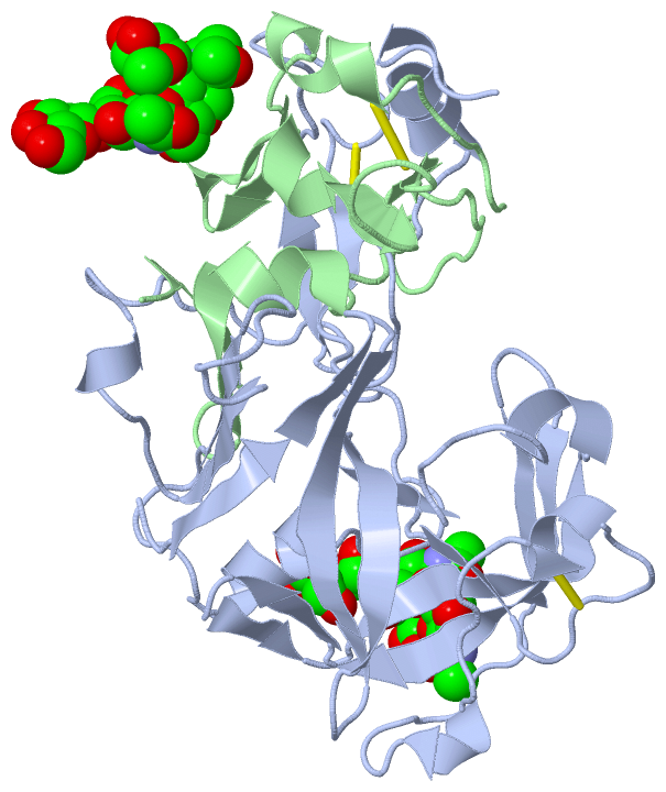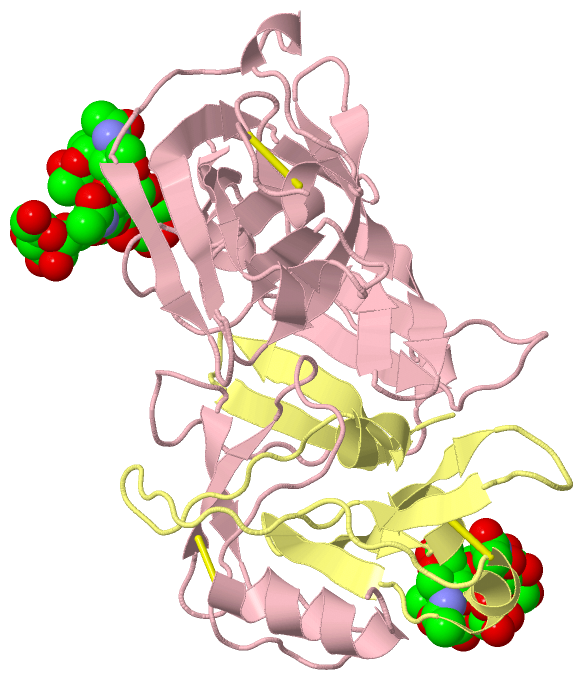 Asymmetric UnitChain A from PDB Type:PROTEIN Length:239 aligned with CARDA_CYNCA | Q9XFX3 from UniProtKB/Swiss-Prot Length:504 Alignment length:239 80 90 100 110 120 130 140 150 160 170 180 190 200 210 220 230 240 250 260 270 280 290 300 CARDA_CYNCA 71 GSAVVALTNDRDTSYFGEIGIGTPPQKFTVIFDTGSSVLWVPSSKCINSKACRAHSMYESSDSSTYKENGTFGAIIYGTGSITGFFSQDSVTIGDLVVKEQDFIEATDEADNVFLHRLFDGILGLSFQTISVPVWYNMLNQGLVKERRFSFWLNRNVDEEEGGELVFGGLDPNHFRGDHTYVPVTYQYYWQFGIGDVLIGDKSTGFCAPGCQAFADSGTSLLSGPTAIVTQINHAIGAN 309 SCOP domains d1b5f.1 A:,B: Plant acid proteinase, phytepsin SCOP domains CATH domains 1b5fA00 A:0-238 Acid Proteases CATH domains Pfam domains ----------------------------------------------------------------------------------------------------------------------------------------------------------------------------------------------------------------------------------------------- Pfam domains SAPs(SNPs) ----------------------------------------------------------------------------------------------------------------------------------------------------------------------------------------------------------------------------------------------- SAPs(SNPs) PROSITE (1) --------------PEPTIDASE_A1 PDB: A:14-238 UniProt: 85-501 PROSITE (1) PROSITE (2) -----------------------------ASP_PROTEASE------------------------------------------------------------------------------------------------------------------------------------------------------------------------------------------------------ PROSITE (2) Transcript ----------------------------------------------------------------------------------------------------------------------------------------------------------------------------------------------------------------------------------------------- Transcript 1b5f A 0 GSAVVALTNDRDTSYFGEIGIGTPPQKFTVIFDTGSSVLWVPSSKCINSKACRAHSMYESSDSSTYKENGTFGAIIYGTGSITGFFSQDSVTIGDLVVKEQDFIEATDEADNVFLHRLFDGILGLSFQTISVPVWYNMLNQGLVKERRFSFWLNRNVDEEEGGELVFGGLDPNHFRGDHTYVPVTYQYYWQFGIGDVLIGDKSTGFCAPGCQAFADSGTSLLSGPTAIVTQINHAIGAN 238 9 19 29 39 |48 58 68 78 88 98 108 118 132 142 152 160B 170 180 190 200 | 209 219 229 46A 126|| 160A| 204A 128| 160B 132 Chain B from PDB Type:PROTEIN Length:87 aligned with CARDA_CYNCA | Q9XFX3 from UniProtKB/Swiss-Prot Length:504 Alignment length:87 427 437 447 457 467 477 487 497 CARDA_CYNCA 418 EELQVDCNTLSSMPNVSFTIGGKKFGLTPEQYILKVGKGEATQCISGFTAMDATLLGPLWILGDVFMRPYHTVFDYGNLLVGFAEAA 504 SCOP domains d1b5f.1 A:,B: Plant acid proteinase, phytepsin SCOP domains CATH domains 1b5fB00 B:243-326 Acid Proteases CATH domains Pfam domains --------------------------------------------------------------------------------------- Pfam domains SAPs(SNPs) --------------------------------------------------------------------------------------- SAPs(SNPs) PROSITE (1) PEPTIDASE_A1 PDB: - UniProt: 85-501 --- PROSITE (1) PROSITE (2) --------------------------------------------------------------------------------------- PROSITE (2) Transcript --------------------------------------------------------------------------------------- Transcript 1b5f B 243 EELQVDCNTLSSMPNVSFTIGGKKFGLTPEQYILKVGKGEATQCISGFTAMDATLLGPLWILGDVFMRPYHTVFDYGNLLVGFAEAA 326 252 262 272 |280|| 288 || 299 309 319 278A| || 293| 278B || 295 280A| 280B Chain C from PDB Type:PROTEIN Length:238 aligned with CARDA_CYNCA | Q9XFX3 from UniProtKB/Swiss-Prot Length:504 Alignment length:238 81 91 101 111 121 131 141 151 161 171 181 191 201 211 221 231 241 251 261 271 281 291 301 CARDA_CYNCA 72 SAVVALTNDRDTSYFGEIGIGTPPQKFTVIFDTGSSVLWVPSSKCINSKACRAHSMYESSDSSTYKENGTFGAIIYGTGSITGFFSQDSVTIGDLVVKEQDFIEATDEADNVFLHRLFDGILGLSFQTISVPVWYNMLNQGLVKERRFSFWLNRNVDEEEGGELVFGGLDPNHFRGDHTYVPVTYQYYWQFGIGDVLIGDKSTGFCAPGCQAFADSGTSLLSGPTAIVTQINHAIGAN 309 SCOP domains d1b5f.2 C:,D: Plant acid proteinase, phytepsin SCOP domains CATH domains 1b5fC00 C:1-238 Acid Proteases CATH domains Pfam domains ---------------------------------------------------------------------------------------------------------------------------------------------------------------------------------------------------------------------------------------------- Pfam domains SAPs(SNPs) ---------------------------------------------------------------------------------------------------------------------------------------------------------------------------------------------------------------------------------------------- SAPs(SNPs) PROSITE (1) -------------PEPTIDASE_A1 PDB: C:14-238 UniProt: 85-501 PROSITE (1) PROSITE (2) ----------------------------ASP_PROTEASE------------------------------------------------------------------------------------------------------------------------------------------------------------------------------------------------------ PROSITE (2) Transcript ---------------------------------------------------------------------------------------------------------------------------------------------------------------------------------------------------------------------------------------------- Transcript 1b5f C 1 SAVVALTNDRDTSYFGEIGIGTPPQKFTVIFDTGSSVLWVPSSKCINSKACRAHSMYESSDSSTYKENGTFGAIIYGTGSITGFFSQDSVTIGDLVVKEQDFIEATDEADNVFLHRLFDGILGLSFQTISVPVWYNMLNQGLVKERRFSFWLNRNVDEEEGGELVFGGLDPNHFRGDHTYVPVTYQYYWQFGIGDVLIGDKSTGFCAPGCQAFADSGTSLLSGPTAIVTQINHAIGAN 238 10 20 30 40 | 49 59 69 79 89 99 109 119 |133 143 153 161 171 181 191 201 | 210 220 230 46A 126|| 160A| 204A 128| 160B 132 Chain D from PDB Type:PROTEIN Length:87 aligned with CARDA_CYNCA | Q9XFX3 from UniProtKB/Swiss-Prot Length:504 Alignment length:87 427 437 447 457 467 477 487 497 CARDA_CYNCA 418 EELQVDCNTLSSMPNVSFTIGGKKFGLTPEQYILKVGKGEATQCISGFTAMDATLLGPLWILGDVFMRPYHTVFDYGNLLVGFAEAA 504 SCOP domains d1b5f.2 C:,D: Plant acid proteinase, phytepsin SCOP domains CATH domains 1b5fD00 D:243-326 Acid Proteases CATH domains Pfam domains --------------------------------------------------------------------------------------- Pfam domains SAPs(SNPs) --------------------------------------------------------------------------------------- SAPs(SNPs) PROSITE (1) PEPTIDASE_A1 PDB: - 