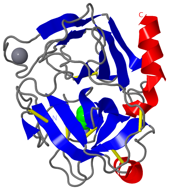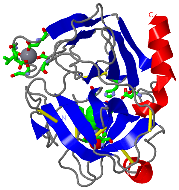 | | GO:0004252 | | serine-type endopeptidase activity | | Catalysis of the hydrolysis of internal, alpha-peptide bonds in a polypeptide chain by a catalytic mechanism that involves a catalytic triad consisting of a serine nucleophile that is activated by a proton relay involving an acidic residue (e.g. aspartate or glutamate) and a basic residue (usually histidine). |