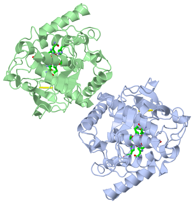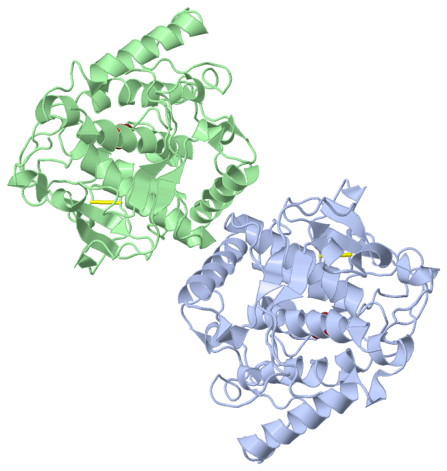 Asymmetric UnitChain A from PDB Type:PROTEIN Length:336 aligned with PPO1_IPOBA | Q9ZP19 from UniProtKB/Swiss-Prot Length:496 Alignment length:341 10 20 30 40 50 60 70 80 90 100 110 120 130 140 150 160 170 180 190 200 210 220 230 240 250 260 270 280 290 300 310 320 330 340 PPO1_IPOBA 1 APIQAPEISKCVVPPADLPPGAVVDNCCPPVASNIVDYKLPAVTTMKVRPAAHTMDKDAIAKFAKAVELMKALPADDPRNFYQQALVHCAYCNGGYDQVNFPDQEIQVHNSWLFFPFHRWYLYFYERILGKLIGDPSFGLPFWNWDNPGGMVLPDFLNDSTSSLYDSNRNQSHLPPVVVDLGYNGADTDVTDQQRITDNLALMYKQMVTNAGTAELFLGKAYRAGDAPSPGAGSIETSPHIPIHRWVGDPRNTNNEDMGNFYSAGRDIAFYCHHSNVDRMWTIWQQLAGKPRKRDYTDSDWLNATFLFYDENGQAVKVRIGDSLDNQKMGYKYAKTPLPWL 341 SCOP domains d1bt1a_ A: Catechol oxidase SCOP domains CATH domains 1bt1A00 A:1-341 Di-copper center containing domain from catechol oxidase CATH domains Pfam domains ----------------------------------------------------------------------------------------------------------------------------------------------------------------------------------------------------------------------------------------------------------------------------------------------------------------------------------------------------- Pfam domains SAPs(SNPs) ----------------------------------------------------------------------------------------------------------------------------------------------------------------------------------------------------------------------------------------------------------------------------------------------------------------------------------------------------- SAPs(SNPs) PROSITE ------------------------------------------------------------------------------------------------------------TYROSINASE_1 ----------------------------------------------------------------------------------------------------------------------------------------------------------------------------------------------------------------------- PROSITE Transcript ----------------------------------------------------------------------------------------------------------------------------------------------------------------------------------------------------------------------------------------------------------------------------------------------------------------------------------------------------- Transcript 1bt1 A 1 APIQAPEISKCVVPPADLPPGAVVDNCCPPVASNIVDYKLPAVTTMKVRPAAHTMDKDAIAKFAKAVELMKALPADDPRNFYQQALVHCAYCNGGYDQVNFPDQEIQVHNSWLFFPFHRWYLYFYERILGKLIGDPSFGLPFWNWDNPGGMVLPDFLNDSTSSLYDSNRNQSHLPPVVVDLGYNGADTDVTDQQRITDNLALMYKQMVTNAGTAELFLGKAYRAGDAPSPGAGSIETSPHIPIHRWVGDPRNTNNEDMGNFYSAGRDIAFYCHHSNVDRMWTIWQQLA-----RDYTDSDWLNATFLFYDENGQAVKVRIGDSLDNQKMGYKYAKTPLPWL 341 10 20 30 40 50 60 70 80 90 100 110 120 130 140 150 160 170 180 190 200 210 220 230 240 250 260 270 280 | - | 300 310 320 330 340 288 294 Chain B from PDB Type:PROTEIN Length:336 aligned with PPO1_IPOBA | Q9ZP19 from UniProtKB/Swiss-Prot Length:496 Alignment length:341 10 20 30 40 50 60 70 80 90 100 110 120 130 140 150 160 170 180 190 200 210 220 230 240 250 260 270 280 290 300 310 320 330 340 PPO1_IPOBA 1 APIQAPEISKCVVPPADLPPGAVVDNCCPPVASNIVDYKLPAVTTMKVRPAAHTMDKDAIAKFAKAVELMKALPADDPRNFYQQALVHCAYCNGGYDQVNFPDQEIQVHNSWLFFPFHRWYLYFYERILGKLIGDPSFGLPFWNWDNPGGMVLPDFLNDSTSSLYDSNRNQSHLPPVVVDLGYNGADTDVTDQQRITDNLALMYKQMVTNAGTAELFLGKAYRAGDAPSPGAGSIETSPHIPIHRWVGDPRNTNNEDMGNFYSAGRDIAFYCHHSNVDRMWTIWQQLAGKPRKRDYTDSDWLNATFLFYDENGQAVKVRIGDSLDNQKMGYKYAKTPLPWL 341 SCOP domains d1bt1b_ B: Catechol oxidase SCOP domains CATH domains 1bt1B00 B:1-341 Di-copper center containing domain from catechol oxidase CATH domains Pfam domains ----------------------------------------------------------------------------------------------------------------------------------------------------------------------------------------------------------------------------------------------------------------------------------------------------------------------------------------------------- Pfam domains SAPs(SNPs) ----------------------------------------------------------------------------------------------------------------------------------------------------------------------------------------------------------------------------------------------------------------------------------------------------------------------------------------------------- SAPs(SNPs) PROSITE ------------------------------------------------------------------------------------------------------------TYROSINASE_1 ----------------------------------------------------------------------------------------------------------------------------------------------------------------------------------------------------------------------- PROSITE Transcript ----------------------------------------------------------------------------------------------------------------------------------------------------------------------------------------------------------------------------------------------------------------------------------------------------------------------------------------------------- Transcript 1bt1 B 1 APIQAPEISKCVVPPADLPPGAVVDNCCPPVASNIVDYKLPAVTTMKVRPAAHTMDKDAIAKFAKAVELMKALPADDPRNFYQQALVHCAYCNGGYDQVNFPDQEIQVHNSWLFFPFHRWYLYFYERILGKLIGDPSFGLPFWNWDNPGGMVLPDFLNDSTSSLYDSNRNQSHLPPVVVDLGYNGADTDVTDQQRITDNLALMYKQMVTNAGTAELFLGKAYRAGDAPSPGAGSIETSPHIPIHRWVGDPRNTNNEDMGNFYSAGRDIAFYCHHSNVDRMWTIWQQLA-----RDYTDSDWLNATFLFYDENGQAVKVRIGDSLDNQKMGYKYAKTPLPWL 341 10 20 30 40 50 60 70 80 90 100 110 120 130 140 150 160 170 180 190 200 210 220 230 240 250 260 270 280 | - | 300 310 320 330 340 288 294