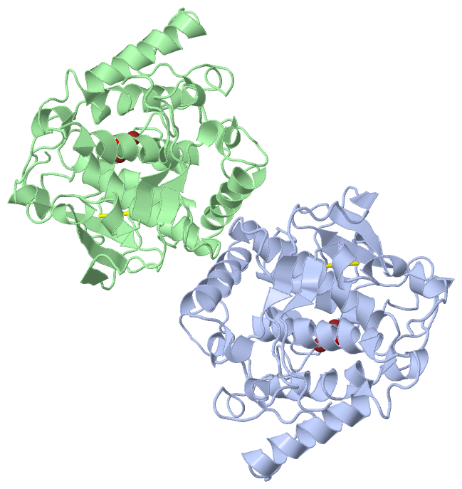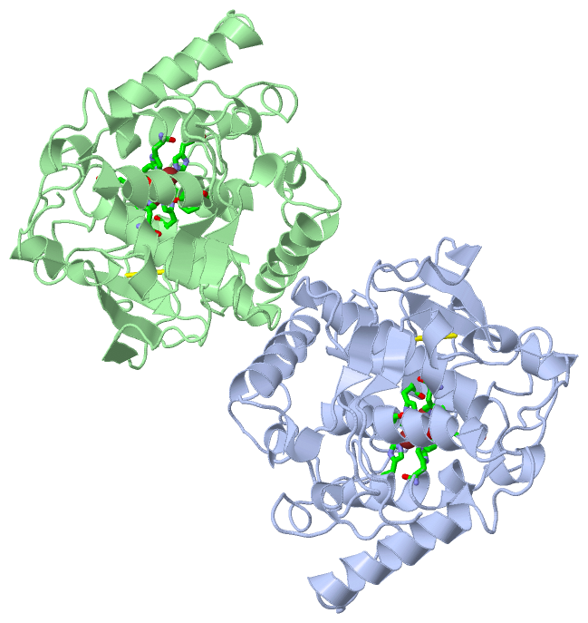 Asymmetric UnitChain A from PDB Type:PROTEIN Length:336 aligned with PPO1_IPOBA | Q9ZP19 from UniProtKB/Swiss-Prot Length:496 Alignment length:341 10 20 30 40 50 60 70 80 90 100 110 120 130 140 150 160 170 180 190 200 210 220 230 240 250 260 270 280 290 300 310 320 330 340 PPO1_IPOBA 1 APIQAPEISKCVVPPADLPPGAVVDNCCPPVASNIVDYKLPAVTTMKVRPAAHTMDKDAIAKFAKAVELMKALPADDPRNFYQQALVHCAYCNGGYDQVNFPDQEIQVHNSWLFFPFHRWYLYFYERILGKLIGDPSFGLPFWNWDNPGGMVLPDFLNDSTSSLYDSNRNQSHLPPVVVDLGYNGADTDVTDQQRITDNLALMYKQMVTNAGTAELFLGKAYRAGDAPSPGAGSIETSPHIPIHRWVGDPRNTNNEDMGNFYSAGRDIAFYCHHSNVDRMWTIWQQLAGKPRKRDYTDSDWLNATFLFYDENGQAVKVRIGDSLDNQKMGYKYAKTPLPWL 341 SCOP domains d1bt2a_ A: Catechol oxidase SCOP domains CATH domains 1bt2A00 A:1-341 Di-copper center containing domain from catechol oxidase CATH domains Pfam domains ----------------------------------------------------------------------------------------------------------------------------------------------------------------------------------------------------------------------------------------------------------------------------------------------------------------------------------------------------- Pfam domains SAPs(SNPs) ----------------------------------------------------------------------------------------------------------------------------------------------------------------------------------------------------------------------------------------------------------------------------------------------------------------------------------------------------- SAPs(SNPs) PROSITE ------------------------------------------------------------------------------------------------------------TYROSINASE_1 ----------------------------------------------------------------------------------------------------------------------------------------------------------------------------------------------------------------------- PROSITE Transcript ----------------------------------------------------------------------------------------------------------------------------------------------------------------------------------------------------------------------------------------------------------------------------------------------------------------------------------------------------- Transcript 1bt2 A 1 APIQAPEISKCVVPPADLPPGAVVDNCCPPVASNIVDYKLPAVTTMKVRPAAHTMDKDAIAKFAKAVELMKALPADDPRNFYQQALVHCAYCNGGYDQVNFPDQEIQVHNSWLFFPFHRWYLYFYERILGKLIGDPSFGLPFWNWDNPGGMVLPDFLNDSTSSLYDSNRNQSHLPPVVVDLGYNGADTDVTDQQRITDNLALMYKQMVTNAGTAELFLGKAYRAGDAPSPGAGSIETSPHIPIHRWVGDPRNTNNEDMGNFYSAGRDIAFYCHHSNVDRMWTIWQQLA-----RDYTDSDWLNATFLFYDENGQAVKVRIGDSLDNQKMGYKYAKTPLPWL 341 10 20 30 40 50 60 70 80 90 100 110 120 130 140 150 160 170 180 190 200 210 220 230 240 250 260 270 280 | - | 300 310 320 330 340 288 294 Chain B from PDB Type:PROTEIN Length:336 aligned with PPO1_IPOBA | Q9ZP19 from UniProtKB/Swiss-Prot Length:496 Alignment length:341 10 20 30 40 50 60 70 80 90 100 110 120 130 140 150 160 170 180 190 200 210 220 230 240 250 260 270 280 290 300 310 320 330 340 PPO1_IPOBA 1 APIQAPEISKCVVPPADLPPGAVVDNCCPPVASNIVDYKLPAVTTMKVRPAAHTMDKDAIAKFAKAVELMKALPADDPRNFYQQALVHCAYCNGGYDQVNFPDQEIQVHNSWLFFPFHRWYLYFYERILGKLIGDPSFGLPFWNWDNPGGMVLPDFLNDSTSSLYDSNRNQSHLPPVVVDLGYNGADTDVTDQQRITDNLALMYKQMVTNAGTAELFLGKAYRAGDAPSPGAGSIETSPHIPIHRWVGDPRNTNNEDMGNFYSAGRDIAFYCHHSNVDRMWTIWQQLAGKPRKRDYTDSDWLNATFLFYDENGQAVKVRIGDSLDNQKMGYKYAKTPLPWL 341 SCOP domains d1bt2b_ B: Catechol oxidase SCOP domains CATH domains 1bt2B00 B:1-341 Di-copper center containing domain from catechol oxidase CATH domains Pfam domains ----------------------------------------------------------------------------------------------------------------------------------------------------------------------------------------------------------------------------------------------------------------------------------------------------------------------------------------------------- Pfam domains SAPs(SNPs) ----------------------------------------------------------------------------------------------------------------------------------------------------------------------------------------------------------------------------------------------------------------------------------------------------------------------------------------------------- SAPs(SNPs) PROSITE ------------------------------------------------------------------------------------------------------------TYROSINASE_1 ----------------------------------------------------------------------------------------------------------------------------------------------------------------------------------------------------------------------- PROSITE Transcript ----------------------------------------------------------------------------------------------------------------------------------------------------------------------------------------------------------------------------------------------------------------------------------------------------------------------------------------------------- Transcript 1bt2 B 1 APIQAPEISKCVVPPADLPPGAVVDNCCPPVASNIVDYKLPAVTTMKVRPAAHTMDKDAIAKFAKAVELMKALPADDPRNFYQQALVHCAYCNGGYDQVNFPDQEIQVHNSWLFFPFHRWYLYFYERILGKLIGDPSFGLPFWNWDNPGGMVLPDFLNDSTSSLYDSNRNQSHLPPVVVDLGYNGADTDVTDQQRITDNLALMYKQMVTNAGTAELFLGKAYRAGDAPSPGAGSIETSPHIPIHRWVGDPRNTNNEDMGNFYSAGRDIAFYCHHSNVDRMWTIWQQLA-----RDYTDSDWLNATFLFYDENGQAVKVRIGDSLDNQKMGYKYAKTPLPWL 341 10 20 30 40 50 60 70 80 90 100 110 120 130 140 150 160 170 180 190 200 210 220 230 240 250 260 270 280 | - | 300 310 320 330 340 288 294