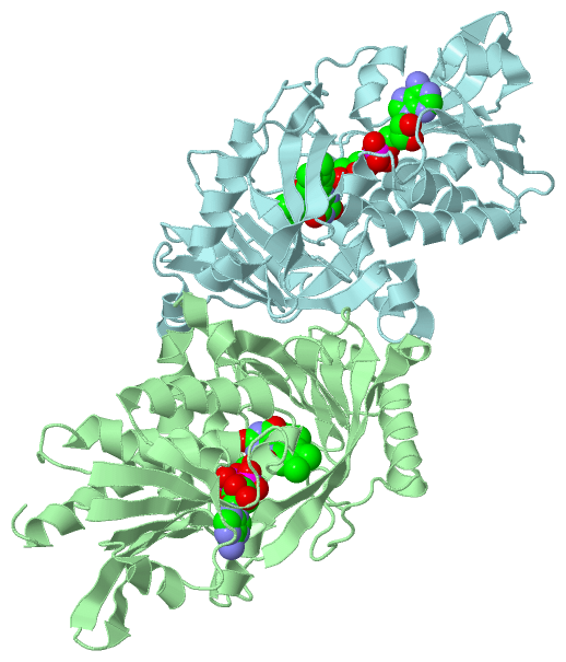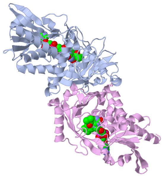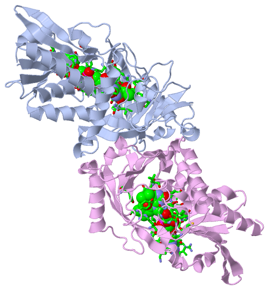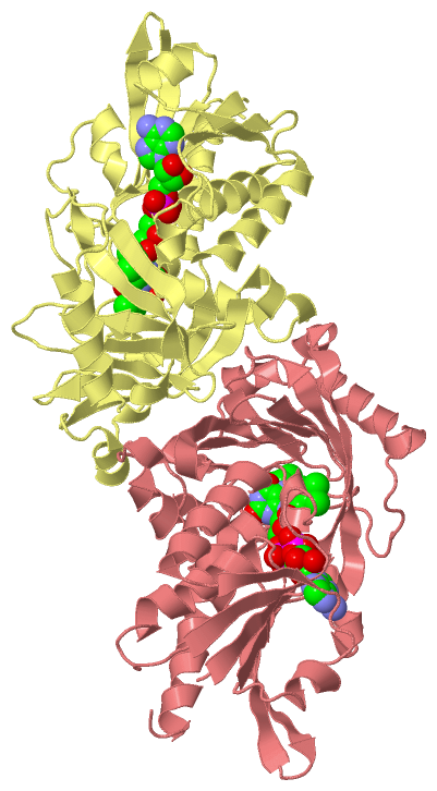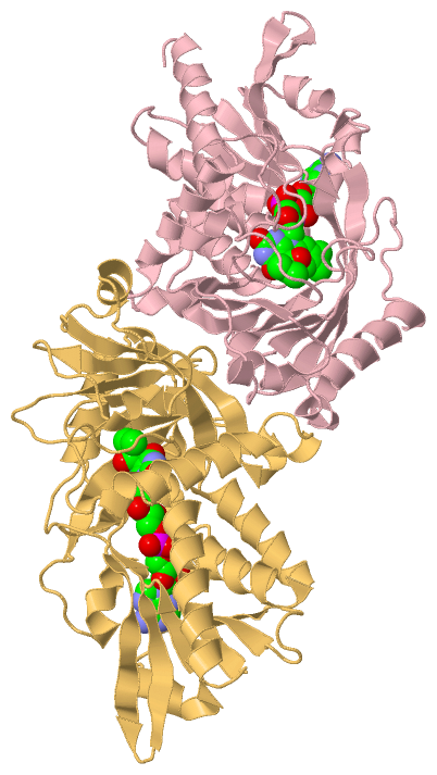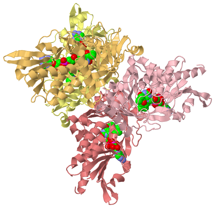 Asymmetric UnitChain A from PDB Type:PROTEIN Length:339 aligned with OXDA_PIG | P00371 from UniProtKB/Swiss-Prot Length:347 Alignment length:339 10 20 30 40 50 60 70 80 90 100 110 120 130 140 150 160 170 180 190 200 210 220 230 240 250 260 270 280 290 300 310 320 330 OXDA_PIG 1 MRVVVIGAGVIGLSTALCIHERYHSVLQPLDVKVYADRFTPFTTTDVAAGLWQPYTSEPSNPQEANWNQQTFNYLLSHIGSPNAANMGLTPVSGYNLFREAVPDPYWKDMVLGFRKLTPRELDMFPDYRYGWFNTSLILEGRKYLQWLTERLTERGVKFFLRKVESFEEVARGGADVIINCTGVWAGVLQPDPLLQPGRGQIIKVDAPWLKNFIITHDLERGIYNSPYIIPGLQAVTLGGTFQVGNWNEINNIQDHNTIWEGCCRLEPTLKDAKIVGEYTGFRPVRPQVRLEREQLRFGSSNTEVIHNYGHGGYGLTIHWGCALEVAKLFGKVLEERNL 339 SCOP domains d1daoa1 A:1-194,A:288-339 D-aminoacid oxidase, N-terminal domain d1daoa2 A:195-287 D-aminoacid oxidase d1daoa1 A:1-194,A:288-339 SCOP domains CATH domains 1daoA01 A:1-88,A:140-195,A:286-339 NAD(P)-binding Rossmann-like Domain 1daoA02 A:89-139,A:196-285 1daoA01 A:1-88,A:140-195,A:286-339 1daoA02 A:89-139,A:196-285 D-Amino Acid Oxidase, subunit A, domain 2 1daoA01 A:1-88,A:140-195,A:286-339 CATH domains Pfam domains --------------------------------------------------------------------------------------------------------------------------------------------------------------------------------------------------------------------------------------------------------------------------------------------------------------------------------------------------- Pfam domains SAPs(SNPs) --------------------------------------------------------------------------------------------------------------------------------------------------------------------------------------------------------------------------------------------------------------------------------------------------------------------------------------------------- SAPs(SNPs) PROSITE ----------------------------------------------------------------------------------------------------------------------------------------------------------------------------------------------------------------------------------------------------------------------------------------------------------------DAO PDB: A:305-323---------------- PROSITE Transcript --------------------------------------------------------------------------------------------------------------------------------------------------------------------------------------------------------------------------------------------------------------------------------------------------------------------------------------------------- Transcript 1dao A 1 MRVVVIGAGVIGLSTALCIHERYHSVLQPLDVKVYADRFTPFTTTDVAAGLWQPYTSEPSNPQEANWNQQTFNYLLSHIGSPNAANMGLTPVSGYNLFREAVPDPYWKDMVLGFRKLTPRELDMFPDYRYGWFNTSLILEGRKYLQWLTERLTERGVKFFLRKVESFEEVARGGADVIINCTGVWAGVLQPDPLLQPGRGQIIKVDAPWLKNFIITHDLERGIYNSPYIIPGLQAVTLGGTFQVGNWNEINNIQDHNTIWEGCCRLEPTLKDAKIVGEYTGFRPVRPQVRLEREQLRFGSSNTEVIHNYGHGGYGLTIHWGCALEVAKLFGKVLEERNL 339 10 20 30 40 50 60 70 80 90 100 110 120 130 140 150 160 170 180 190 200 210 220 230 240 250 260 270 280 290 300 310 320 330 Chain B from PDB Type:PROTEIN Length:339 aligned with OXDA_PIG | P00371 from UniProtKB/Swiss-Prot Length:347 Alignment length:339 10 20 30 40 50 60 70 80 90 100 110 120 130 140 150 160 170 180 190 200 210 220 230 240 250 260 270 280 290 300 310 320 330 OXDA_PIG 1 MRVVVIGAGVIGLSTALCIHERYHSVLQPLDVKVYADRFTPFTTTDVAAGLWQPYTSEPSNPQEANWNQQTFNYLLSHIGSPNAANMGLTPVSGYNLFREAVPDPYWKDMVLGFRKLTPRELDMFPDYRYGWFNTSLILEGRKYLQWLTERLTERGVKFFLRKVESFEEVARGGADVIINCTGVWAGVLQPDPLLQPGRGQIIKVDAPWLKNFIITHDLERGIYNSPYIIPGLQAVTLGGTFQVGNWNEINNIQDHNTIWEGCCRLEPTLKDAKIVGEYTGFRPVRPQVRLEREQLRFGSSNTEVIHNYGHGGYGLTIHWGCALEVAKLFGKVLEERNL 339 SCOP domains d1daob1 B:1-194,B:288-339 D-aminoacid oxidase, N-terminal domain d1daob2 B:195-287 D-aminoacid oxidase d1daob1 B:1-194,B:288-339 SCOP domains CATH domains 1daoB01 B:1-88,B:140-195,B:286-339 NAD(P)-binding Rossmann-like Domain 1daoB02 B:89-139,B:196-285 1daoB01 B:1-88,B:140-195,B:286-339 1daoB02 B:89-139,B:196-285 D-Amino Acid Oxidase, subunit A, domain 2 1daoB01 B:1-88,B:140-195,B:286-339 CATH domains Pfam domains --------------------------------------------------------------------------------------------------------------------------------------------------------------------------------------------------------------------------------------------------------------------------------------------------------------------------------------------------- Pfam domains SAPs(SNPs) --------------------------------------------------------------------------------------------------------------------------------------------------------------------------------------------------------------------------------------------------------------------------------------------------------------------------------------------------- SAPs(SNPs) PROSITE ----------------------------------------------------------------------------------------------------------------------------------------------------------------------------------------------------------------------------------------------------------------------------------------------------------------DAO PDB: B:305-323---------------- PROSITE Transcript --------------------------------------------------------------------------------------------------------------------------------------------------------------------------------------------------------------------------------------------------------------------------------------------------------------------------------------------------- Transcript 1dao B 1 MRVVVIGAGVIGLSTALCIHERYHSVLQPLDVKVYADRFTPFTTTDVAAGLWQPYTSEPSNPQEANWNQQTFNYLLSHIGSPNAANMGLTPVSGYNLFREAVPDPYWKDMVLGFRKLTPRELDMFPDYRYGWFNTSLILEGRKYLQWLTERLTERGVKFFLRKVESFEEVARGGADVIINCTGVWAGVLQPDPLLQPGRGQIIKVDAPWLKNFIITHDLERGIYNSPYIIPGLQAVTLGGTFQVGNWNEINNIQDHNTIWEGCCRLEPTLKDAKIVGEYTGFRPVRPQVRLEREQLRFGSSNTEVIHNYGHGGYGLTIHWGCALEVAKLFGKVLEERNL 339 10 20 30 40 50 60 70 80 90 100 110 120 130 140 150 160 170 180 190 200 210 220 230 240 250 260 270 280 290 300 310 320 330 Chain C from PDB Type:PROTEIN Length:339 aligned with OXDA_PIG | P00371 from UniProtKB/Swis
