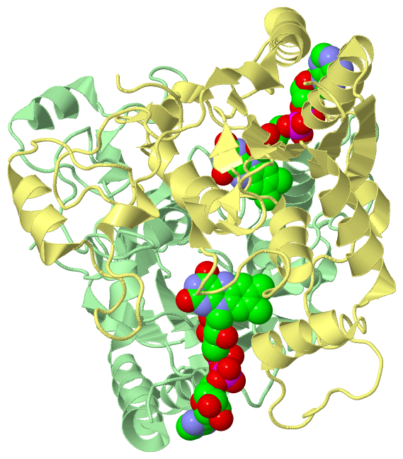 Asymmetric UnitChain A from PDB Type:PROTEIN Length:273 aligned with NQO1_MOUSE | Q64669 from UniProtKB/Swiss-Prot Length:274 Alignment length:273 11 21 31 41 51 61 71 81 91 101 111 121 131 141 151 161 171 181 191 201 211 221 231 241 251 261 271 NQO1_MOUSE 2 AARRALIVLAHSEKTSFNYAMKEAAVEALKKRGWEVLESDLYAMNFNPIISRNDITGELKDSKNFQYPSESSLAYKEGRLSPDIVAEHKKLEAADLVIFQFPLQWFGVPAILKGWFERVLVAGFAYTYAAMYDNGPFQNKKTLLSITTGGSGSMYSLQGVHGDMNVILWPIQSGILRFCGFQVLEPQLVYSIGHTPPDARMQILEGWKKRLETVWEETPLYFAPSSLFDLNFQAGFLMKKEVQEEQKKNKFGLSVGHHLGKSIPADNQIKARK 274 SCOP domains d1dxqa_ A: NAD(P)H:quinone reductase SCOP domains CATH domains 1dxqA00 A:1-273 [code=3.40.50.360, no name defined] CATH domains Pfam domains --------------------------------------------------------------------------------------------------------------------------------------------------------------------------------------------------------------------------------------------------------------------------------- Pfam domains SAPs(SNPs) --------------------------------------------------------------------------------------------------------------------------------------------------------------------------------------------------------------------------------------------------------------------------------- SAPs(SNPs) PROSITE --------------------------------------------------------------------------------------------------------------------------------------------------------------------------------------------------------------------------------------------------------------------------------- PROSITE Transcript --------------------------------------------------------------------------------------------------------------------------------------------------------------------------------------------------------------------------------------------------------------------------------- Transcript 1dxq A 1 AARRALIVLAHSEKTSFNYAMKEAAVEALKKRGWEVLESDLYAMNFNPIISRNDITGELKDSKNFQYPSESSLAYKEGRLSPDIVAEHKKLEAADLVIFQFPLQWFGVPAILKGWFERVLVAGFAYTYAAMYDNGPFQNKKTLLSITTGGSGSMYSLQGVHGDMNVILWPIQSGILRFCGFQVLEPQLVYSIGHTPPDARMQILEGWKKRLETVWEETPLYFAPSSLFDLNFQAGFLLMKEVQEEQKKNKFGLSVGHHLGKSIPADNQIKARK 273 10 20 30 40 50 60 70 80 90 100 110 120 130 140 150 160 170 180 190 200 210 220 230 240 250 260 270 Chain B from PDB Type:PROTEIN Length:273 aligned with NQO1_MOUSE | Q64669 from UniProtKB/Swiss-Prot Length:274 Alignment length:273 11 21 31 41 51 61 71 81 91 101 111 121 131 141 151 161 171 181 191 201 211 221 231 241 251 261 271 NQO1_MOUSE 2 AARRALIVLAHSEKTSFNYAMKEAAVEALKKRGWEVLESDLYAMNFNPIISRNDITGELKDSKNFQYPSESSLAYKEGRLSPDIVAEHKKLEAADLVIFQFPLQWFGVPAILKGWFERVLVAGFAYTYAAMYDNGPFQNKKTLLSITTGGSGSMYSLQGVHGDMNVILWPIQSGILRFCGFQVLEPQLVYSIGHTPPDARMQILEGWKKRLETVWEETPLYFAPSSLFDLNFQAGFLMKKEVQEEQKKNKFGLSVGHHLGKSIPADNQIKARK 274 SCOP domains d1dxqb_ B: NAD(P)H:quinone reductase SCOP domains CATH domains 1dxqB00 B:1-273 [code=3.40.50.360, no name defined] CATH domains Pfam domains --------------------------------------------------------------------------------------------------------------------------------------------------------------------------------------------------------------------------------------------------------------------------------- Pfam domains SAPs(SNPs) --------------------------------------------------------------------------------------------------------------------------------------------------------------------------------------------------------------------------------------------------------------------------------- SAPs(SNPs) PROSITE --------------------------------------------------------------------------------------------------------------------------------------------------------------------------------------------------------------------------------------------------------------------------------- PROSITE Transcript --------------------------------------------------------------------------------------------------------------------------------------------------------------------------------------------------------------------------------------------------------------------------------- Transcript 1dxq B 1 AARRALIVLAHSEKTSFNYAMKEAAVEALKKRGWEVLESDLYAMNFNPIISRNDITGELKDSKNFQYPSESSLAYKEGRLSPDIVAEHKKLEAADLVIFQFPLQWFGVPAILKGWFERVLVAGFAYTYAAMYDNGPFQNKKTLLSITTGGSGSMYSLQGVHGDMNVILWPIQSGILRFCGFQVLEPQLVYSIGHTPPDARMQILEGWKKRLETVWEETPLYFAPSSLFDLNFQAGFLLMKEVQEEQKKNKFGLSVGHHLGKSIPADNQIKARK 273 10 20 30 40 50 60 70 80 90 100 110 120 130 140 150 160 170 180 190 200 210 220 230 240 250 260 270 Chain C from PDB Type:PROTEIN Length:273 aligned with NQO1_MOUSE | Q64669 from UniProtKB/Swiss-Prot Length:274 Alignment length:273 11 21 31 41 51 61 71 81 91 101 111 121 131 141 151 161 171 181 191 201 211 221 231 241 251 261 271 NQO1_MOUSE 2 AARRALIVLAHSEKTSFNYAMKEAAVEALKKRGWEVLESDLYAMNFNPIISRNDITGELKDSKNFQYPSESSLAYKEGRLSPDIVAEHKKLEAADLVIFQFPLQWFGVPAILKGWFERVLVAGFAYTYAAMYDNGPFQNKKTLLSITTGGSGSMYSLQGVHGDMNVILWPIQSGILRFCGFQVLEPQLVYSIGHTPPDARMQILEGWKKRLETVWEETPLYFAPSSLFDLNFQAGFLMKKEVQEEQKKNKFGLSVGHHLGKSIPADNQIKARK 274 SCOP domains d1dxqc_ C: NAD(P)H:quinone reductase SCOP domains CATH domains 1dxqC00 C:1-273 [code=3.40.50.360, no name defined] CATH domains Pfam domains --------------------------------------------------------------------------------------------------------------------------------------------------------------------------------------------------------------------------------------------------------------------------------- Pfam domains SAPs(SNPs) --------------------------------------------------------------------------------------------------------------------------------------------------------------------------------------------------------------------------------------------------------------------------------- SAPs(SNPs) PROSITE ----------------------------------------------------------------------------------------------------------------------------------------------------------------------------------------------------------------------------------------------------------------