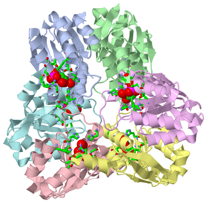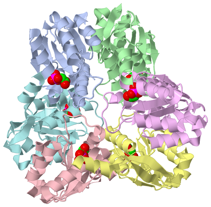 Asymmetric/Biological Unit(hide GO term definitions) Chain A,B,C,D,E,F (MGSA_ECOLI | P0A731)