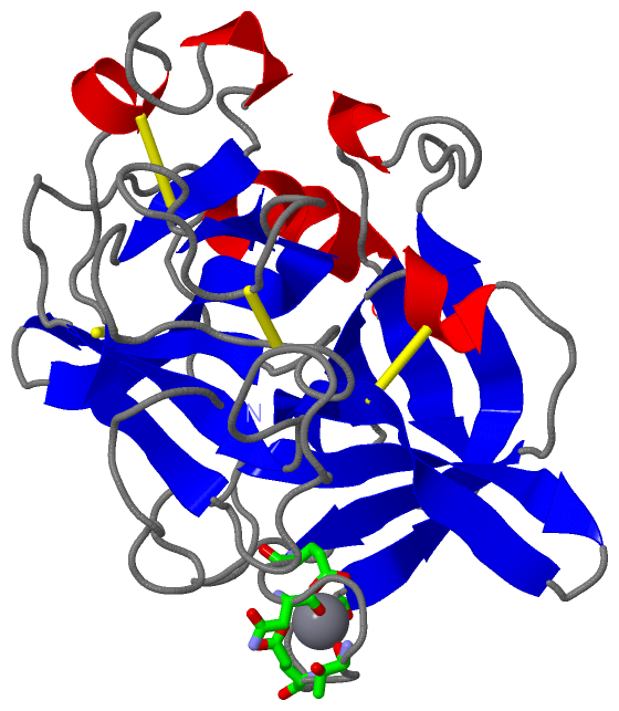 | | GO:0004252 | | serine-type endopeptidase activity | | Catalysis of the hydrolysis of internal, alpha-peptide bonds in a polypeptide chain by a catalytic mechanism that involves a catalytic triad consisting of a serine nucleophile that is activated by a proton relay involving an acidic residue (e.g. aspartate or glutamate) and a basic residue (usually histidine). |