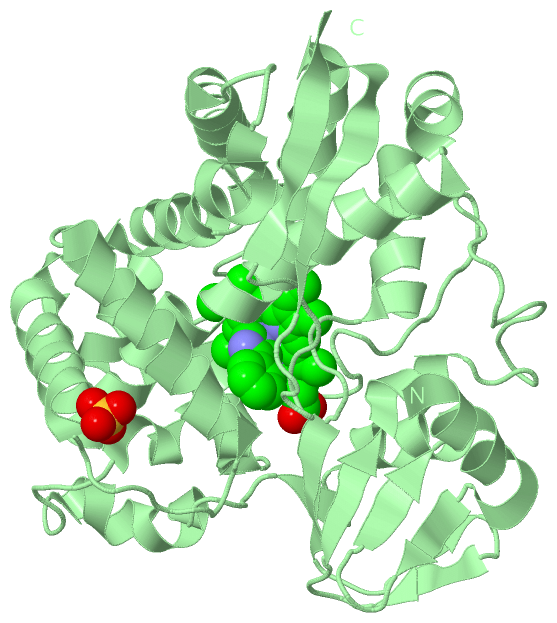 Asymmetric UnitChain A from PDB Type:PROTEIN Length:367 aligned with CP119_SULAC | Q55080 from UniProtKB/Swiss-Prot Length:368 Alignment length:367 10 20 30 40 50 60 70 80 90 100 110 120 130 140 150 160 170 180 190 200 210 220 230 240 250 260 270 280 290 300 310 320 330 340 350 360 CP119_SULAC 1 MYDWFSEMRKKDPVYYDGNIWQVFSYRYTKEVLNNFSKFSSDLTGYHERLEDLRNGKIRFDIPTRYTMLTSDPPLHDELRSMSADIFSPQKLQTLETFIRETTRSLLDSIDPREDDIVKKLAVPLPIIVISKILGLPIEDKEKFKEWSDLVAFRLGKPGEIFELGKKYLELIGYVKDHLNSGTEVVSRVVNSNLSDIEKLGYIILLLIAGNETTTNLISNSVIDFTRFNLWQRIREENLYLKAIEEALRYSPPVMRTVRKTKERVKLGDQTIEEGEYVRVWIASANRDEEVFHDGEKFIPDRNPNPHLSFGSGIHLCLGAPLARLEARIAIEEFSKRFRHIEILDTEKVPNEVLNGYKRLVVRLKSN 367 SCOP domains d1f4ta_ A: Cyp119 SCOP domains CATH domains 1f4tA00 A:1-367 Cytochrome p450 CATH domains Pfam domains ------------------------------------------------------------------------------------------------------------------------------------------------------------------------------------------------------------------------------------------------------------------------------------------------------------------------------------------------------------------------------- Pfam domains SAPs(SNPs) ------------------------------------------------------------------------------------------------------------------------------------------------------------------------------------------------------------------------------------------------------------------------------------------------------------------------------------------------------------------------------- SAPs(SNPs) PROSITE ---------------------------------------------------------------------------------------------------------------------------------------------------------------------------------------------------------------------------------------------------------------------------------------------------------------------CYTOCHROME------------------------------------------------ PROSITE Transcript ------------------------------------------------------------------------------------------------------------------------------------------------------------------------------------------------------------------------------------------------------------------------------------------------------------------------------------------------------------------------------- Transcript 1f4t A 1 MYDWFSEMRKKDPVYYDGNIWQVFSYRYTKEVLNNFSKFSSDLTGYHERLEDLRNGKIRFDIPTRYTMLTSDPPLHDELRSMSADIFSPQKLQTLETFIRETTRSLLDSIDPREDDIVKKLAVPLPIIVISKILGLPIEDKEKFKEWSDLVAFRLGKPGEIFELGKKYLELIGYVKDHLNSGTEVVSRVVNSNLSDIEKLGYIILLLIAGNETTTNLISNSVIDFTRFNLWQRIREENLYLKAIEEALRYSPPVMRTVRKTKERVKLGDQTIEEGEYVRVWIASANRDEEVFHDGEKFIPDRNPNPHLSFGSGIHLCLGAPLARLEARIAIEEFSKRFRHIEILDTEKVPNEVLNGYKRLVVRLKSN 367 10 20 30 40 50 60 70 80 90 100 110 120 130 140 150 160 170 180 190 200 210 220 230 240 250 260 270 280 290 300 310 320 330 340 350 360 Chain B from PDB Type:PROTEIN Length:367 aligned with CP119_SULAC | Q55080 from UniProtKB/Swiss-Prot Length:368 Alignment length:367 10 20 30 40 50 60 70 80 90 100 110 120 130 140 150 160 170 180 190 200 210 220 230 240 250 260 270 280 290 300 310 320 330 340 350 360 CP119_SULAC 1 MYDWFSEMRKKDPVYYDGNIWQVFSYRYTKEVLNNFSKFSSDLTGYHERLEDLRNGKIRFDIPTRYTMLTSDPPLHDELRSMSADIFSPQKLQTLETFIRETTRSLLDSIDPREDDIVKKLAVPLPIIVISKILGLPIEDKEKFKEWSDLVAFRLGKPGEIFELGKKYLELIGYVKDHLNSGTEVVSRVVNSNLSDIEKLGYIILLLIAGNETTTNLISNSVIDFTRFNLWQRIREENLYLKAIEEALRYSPPVMRTVRKTKERVKLGDQTIEEGEYVRVWIASANRDEEVFHDGEKFIPDRNPNPHLSFGSGIHLCLGAPLARLEARIAIEEFSKRFRHIEILDTEKVPNEVLNGYKRLVVRLKSN 367 SCOP domains d1f4tb_ B: Cyp119 SCOP domains CATH domains 1f4tB00 B:1-367 Cytochrome p450 CATH domains Pfam domains ------------------------------------------------------------------------------------------------------------------------------------------------------------------------------------------------------------------------------------------------------------------------------------------------------------------------------------------------------------------------------- Pfam domains SAPs(SNPs) ------------------------------------------------------------------------------------------------------------------------------------------------------------------------------------------------------------------------------------------------------------------------------------------------------------------------------------------------------------------------------- SAPs(SNPs) PROSITE ---------------------------------------------------------------------------------------------------------------------------------------------------------------------------------------------------------------------------------------------------------------------------------------------------------------------CYTOCHROME------------------------------------------------ PROSITE Transcript ------------------------------------------------------------------------------------------------------------------------------------------------------------------------------------------------------------------------------------------------------------------------------------------------------------------------------------------------------------------------------- Transcript 1f4t B 1 MYDWFSEMRKKDPVYYDGNIWQVFSYRYTKEVLNNFSKFSSDLTGYHERLEDLRNGKIRFDIPTRYTMLTSDPPLHDELRSMSADIFSPQKLQTLETFIRETTRSLLDSIDPREDDIVKKLAVPLPIIVISKILGLPIEDKEKFKEWSDLVAFRLGKPGEIFELGKKYLELIGYVKDHLNSGTEVVSRVVNSNLSDIEKLGYIILLLIAGNETTTNLISNSVIDFTRFNLWQRIREENLYLKAIEEALRYSPPVMRTVRKTKERVKLGDQTIEEGEYVRVWIASANRDEEVFHDGEKFIPDRNPNPHLSFGSGIHLCLGAPLARLEARIAIEEFSKRFRHIEILDTEKVPNEVLNGYKRLVVRLKSN 367 10 20 30 40 50 60 70 80 90 100 110 120 130 140 150 160 170 180 190 200 210 220 230 240 250 260 270 280 290 300 310 320 330 340 350 360