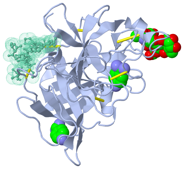 Asymmetric/Biological UnitChain A from PDB Type:PROTEIN Length:260 aligned with ACRO_SHEEP | Q9GL10 from UniProtKB/Swiss-Prot Length:329 Alignment length:260 49 59 69 79 89 99 109 119 129 139 149 159 169 179 189 199 209 219 229 239 249 259 269 279 289 299 ACRO_SHEEP 40 IIGGQDAAHGAWPWMVSLQIFTYHNNRRYHVCGGSLLNSQWLLTAAHCFRIKKKVTDWRLIFGAKEVEWGTNKPVKPPLQERYVEKIIIHEKYSASSEANDIALMKITPPVTCGHFIGPGCLPQFRAGPPRVPQTCWVAGWGFLQENARRTSPMLQEARVDLIDLGLCNSTRWYNGRIRSTNVCAGYPEGKIDTCQGDSGGPLMCKDSAENSYVVVGITSWGVGCARAKRPGVYTSTWSYLNWIASKIGSTAVHMIQLPT 299 SCOP domains d1fiw.1 L:,A: Beta-acrosin SCOP domains CATH domains 1fiwA01 1fiwA02 A:28-120,A:233-245 Trypsin-like serine proteases 1fiwA01 A:16-27,A:121-232 Trypsin-like serine proteases 1fiwA02 --------- CATH domains Pfam domains -------------------------------------------------------------------------------------------------------------------------------------------------------------------------------------------------------------------------------------------------------------------- Pfam domains SAPs(SNPs) -------------------------------------------------------------------------------------------------------------------------------------------------------------------------------------------------------------------------------------------------------------------- SAPs(SNPs) PROSITE (1) TRYPSIN_DOM PDB: A:16-243 UniProt: 40-288 ----------- PROSITE (1) PROSITE (2) ------------------------------------------TRYPSI------------------------------------------------------------------------------------------------------------------------------------------------TRYPSIN_SER -------------------------------------------------------- PROSITE (2) Transcript -------------------------------------------------------------------------------------------------------------------------------------------------------------------------------------------------------------------------------------------------------------------- Transcript 1fiw A 16 IIGGQDAAHGAWPWMVSLQIFTYHNNRRYHVCGGSLLNSQWLLTAAHCFRIKKKVTDWRLIFGAKEVEWGTNKPVKPPLQERYVEKIIIHEKYSASSEANDIALMKITPPVTCGHFIGPGCLPQFRAGPPRVPQTCWVAGWGFLQENARRTSPMLQEARVDLIDLGLCNSTRWYNGRIRSTNVCAGYPEGKIDTCQGDSGGPLMCKDSAENSYVVVGITSWGVGCARAKRPGVYTSTWSYLNWIASKIGSTAVHMIQLPT 254 25 37||||||| 40 50 60 ||||| 65||| 75A|||| 81 91 101 111 121 ||129|| 140 150 160 170|| 178 |187 | 196 |202B|| || 214 || |224 234 244 254 34|||||||| 61A|||| 65A|| 75A|||| 126A| 130| 170A| 184A 188A 201A| |||| || 217| | 37||||||| 61B||| 66| 75B||| 126B 132 170B 201B |||| || 219 | 37A|||||| 61C|| 69 75C|| 202A||| || 221A 37B||||| 61D| 75D| 202B|| || 37C|||| 61E 75E 202C| || 37D||| 202D || 37E|| 204| 37F| 209 37G Chain L from PDB Type:PROTEIN Length:14 aligned with ACRO_SHEEP | Q9GL10 from UniProtKB/Swiss-Prot Length:329 Alignment length:14 29 ACRO_SHEEP 20 TTCDGPCGVRFRQN 33 SCOP domains d1fiw.1 L:,A: SCOP domains CATH domains -------------- CATH domains Pfam domains -------------- Pfam domains SAPs(SNPs) -------------- SAPs(SNPs) PROSITE (1) -------------- PROSITE (1) PROSITE (2) -------------- PROSITE (2) Transcript -------------- Transcript 1fiw L 3 TTCDGPCGVRFRQN 16 12