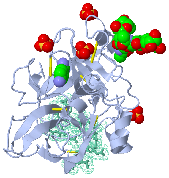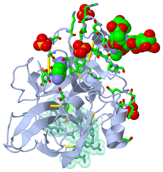 | | GO:0008236 | | serine-type peptidase activity | | Catalysis of the hydrolysis of peptide bonds in a polypeptide chain by a catalytic mechanism that involves a catalytic triad consisting of a serine nucleophile that is activated by a proton relay involving an acidic residue (e.g. aspartate or glutamate) and a basic residue (usually histidine). |