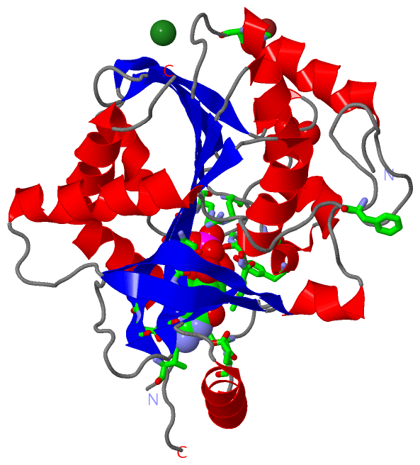 Asymmetric UnitChain A from PDB Type:PROTEIN Length:278 aligned with PNPH_BOVIN | P55859 from UniProtKB/Swiss-Prot Length:289 Alignment length:281 13 23 33 43 53 63 73 83 93 103 113 123 133 143 153 163 173 183 193 203 213 223 233 243 253 263 273 283 PNPH_BOVIN 4 GYTYEDYQDTAKWLLSHTEQRPQVAVICGSGLGGLVNKLTQAQTFDYSEIPNFPESTVPGHAGRLVFGILNGRACVMMQGRFHMYEGYPFWKVTFPVRVFRLLGVETLVVTNAAGGLNPNFEVGDIMLIRDHINLPGFSGENPLRGPNEERFGVRFPAMSDAYDRDMRQKAHSTWKQMGEQRELQEGTYVMLGGPNFETVAECRLLRNLGADAVGMSTVPEVIVARHCGLRVFGFSLITNKVIMDYESQGKANHEEVLEAGKQAAQKLEQFVSLLMASIPV 284 SCOP domains d1fxua_ A: Purine nucleoside phosphorylase, PNP SCOP domains CATH domains 1fxuA00 A:4-284 [code=3.40.50.1580, no name defined] CATH domains Pfam domains ----------------------------------------------------------------------------------------------------------------------------------------------------------------------------------------------------------------------------------------------------------------------------------------- Pfam domains SAPs(SNPs) ----------------------------------------------------------------------------------------------------------------------------------------------------------------------------------------------------------------------------------------------------------------------------------------- SAPs(SNPs) PROSITE ---------------------------------------------------------------------------PNP_MTAP_2 PDB: A:79-120 UniProt: 79-120 -------------------------------------------------------------------------------------------------------------------------------------------------------------------- PROSITE Transcript 1 (1) Exon 1.1 PDB: A:4-33 --------------------------------------------------------Exon 1.4 PDB: A:90-124 Exon 1.5 PDB: A:125-183 UniProt: 125-183 ---------------------------------------------------------------Exon 1.7 PDB: A:247-284 (gaps) Transcript 1 (1) Transcript 1 (2) -----------------------------Exon 1.3 PDB: A:33-90 UniProt: 33-90 --------------------------------------------------------------------------------------------Exon 1.6 PDB: A:183-247 UniProt: 183-247 ------------------------------------- Transcript 1 (2) 1fxu A 4 GYTYEDYQDTAKWLLSHTEQRPQVAVICGSGLGGLVNKLTQAQTFDYSEIPNFPESTVPGHAGRLVFGILNGRACVMMQGRFHMYEGYPFWKVTFPVRVFRLLGVETLVVTNAAGGLNPNFEVGDIMLIRDHINLPGFSGQNPLRGPNEERFGVRFPAMSDAYDRDMRQKAHSTWKQMGEQRELQEGTYVMLGGPNFETVAECRLLRNLGADAVGMSTVPEVIVARHCGLRVFGFSLITNKVIMDT---GKANHEEVLEAGKQAAQKLEQFVSLLMASIPV 284 13 23 33 43 53 63 73 83 93 103 113 123 133 143 153 163 173 183 193 203 213 223 233 243 | 253 263 273 283 249 253
