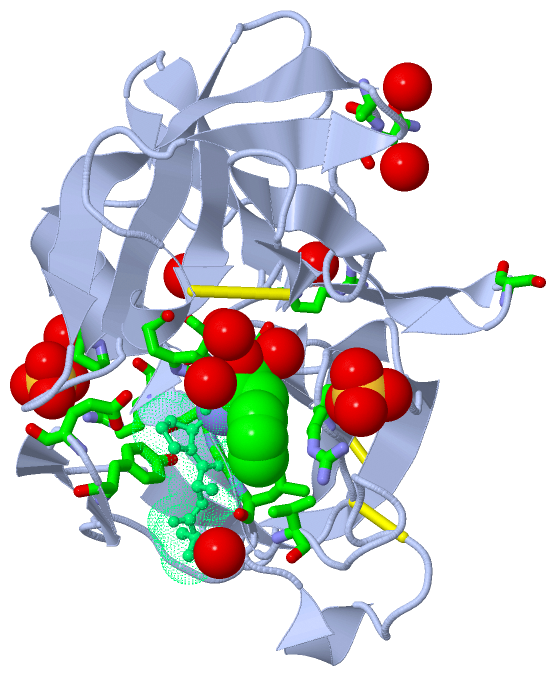 Asymmetric/Biological UnitChain A from PDB Type:PROTEIN Length:198 aligned with PRLA_LYSEN | P00778 from UniProtKB/Swiss-Prot Length:397 Alignment length:198 209 219 229 239 249 259 269 279 289 299 309 319 329 339 349 359 369 379 389 PRLA_LYSEN 200 ANIVGGIEYSINNASLCSVGFSVTRGATKGFVTAGHCGTVNATARIGGAVVGTFAARVFPGNDRAWVSLTSAQTLLPRVANGSSFVTVRGSTEAAVGAAVCRSGRTTGYQCGTITAKNVTANYAEGAVRGLTQGNACMGRGDSGGSWITSAGQAQGVMSGGNVQSNGNNCGIPASQRSSLFERLQPILSQYGLSLVTG 397 SCOP domains d1gbia_ A: alpha-Lytic protease SCOP domains CATH domains --1gbiA01 A:16-119,A:231-243 Trypsin-like serine proteases 1gbiA02 A:120-230 Trypsin-like serine proteases 1gbiA01 -- CATH domains Pfam domains ------------------------------------------------------------------------------------------------------------------------------------------------------------------------------------------------------ Pfam domains SAPs(SNPs) ------------------------------------------------------------------------------------------------------------------------------------------------------------------------------------------------------ SAPs(SNPs) PROSITE -------------------------------TRYPSI---------------------------------------------------------------------------------------------------TRYPSIN_SER -------------------------------------------------- PROSITE Transcript ------------------------------------------------------------------------------------------------------------------------------------------------------------------------------------------------------ Transcript 1gbi A 15A ANIVGGIEYSINNASLCSVGFSVTRGATKGFVTAGHCGTVNATARIGGAVVGTFAARVFPGNDRAWVSLTSAQTLLPRVANGSSFVTVRGSTEAAVGAAVCRSGRTTGYQCGTITAKNVTANYAEGAVRGLTQGNACAGRGDSGGSWITSAGQAQGVMSGLNVQSNGNNCGIPASQRSSLFERLQPILSQYGLSLVTG 245 || || 34 || 44A ||| 51 59B || ||83 || | |95| 109 ||120C|||||||123 || 136 |158 168 || 179 ||192 201A|| 215 ||220A ||| 227 237 || 19| 36| 44A 48A|| 59A| 62| 67| 85| | 91||| 114| ||||120I|| 125| 143| 171| 185| 201A|| 219A||| | ||| 15A| 31 38 48B| 59B 64 81 87 | 94|| 119 |||||120J| 129 156 173 189 202| 219B|| | ||| 15B 48C 88A 95| 120A|||||120K 207 219C| | ||| 100 120B||||| 219D | ||| 120C|||| 220A ||| 120D||| 222A|| 120E|| 222B| 120G| 222C 120H