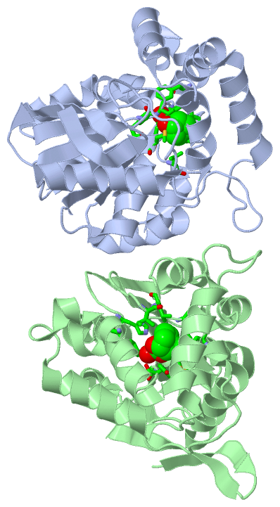 Asymmetric UnitChain A from PDB Type:PROTEIN Length:279 aligned with Q8GJP7_9MICO | Q8GJP7 from UniProtKB/TrEMBL Length:280 Alignment length:279 11 21 31 41 51 61 71 81 91 101 111 121 131 141 151 161 171 181 191 201 211 221 231 241 251 261 271 Q8GJP7_9MICO 2 GYITVGNENSTPIELYYEDQGSGQPVVLIHGYPLDGHSWERQTRELLAQGYRVITYDRRGFGGSSKVNTGYDYDTFAADLHTVLETLDLRDVVLVGFSMGTGELARYVARYGHERVAKLAFLASLEPFLVQRDDNPEGVPQEVFDGIEAAAKGDRFAWFTDFYKNFYNLDENLGSRISEQAVTGSWNVAIGSAPVAAYAVVPAWIEDFRSDVEAVRAAGKPTLILHGTKDNILPIDATARRFHQAVPEADYVEVEGAPHGLLWTHADEVNAALKTFLAK 280 SCOP domains d1hl7a_ A: Gamma-lactamase SCOP domains CATH domains 1hl7A00 A:1-279 [code=3.40.50.1820, no name defined] CATH domains Pfam domains --------------------------------------------------------------------------------------------------------------------------------------------------------------------------------------------------------------------------------------------------------------------------------------- Pfam domains SAPs(SNPs) --------------------------------------------------------------------------------------------------------------------------------------------------------------------------------------------------------------------------------------------------------------------------------------- SAPs(SNPs) PROSITE --------------------------------------------------------------------------------------------------------------------------------------------------------------------------------------------------------------------------------------------------------------------------------------- PROSITE Transcript --------------------------------------------------------------------------------------------------------------------------------------------------------------------------------------------------------------------------------------------------------------------------------------- Transcript 1hl7 A 1 GYITVGNENSTPIELYYEDQGSGQPVVLIHGYPLDGHSWERQTRELLAQGYRVITYDRRGFGGSSKVNTGYDYDTFAADLHTVLETLDLRDVVLVGFSMGTGELARYVARYGHERVAKLAFLASLEPFLVQRDDNPEGVPQEVFDGIEAAAKGDRFAWFTDFYKNFYNLDENLGSRISEQAVTGSWNVAIGSAPVAAYAVVPAWIEDFRSDVEAVRAAGKPTLILHGTKDNILPIDATARRFHQAVPEADYVEVEGAPHGLLWTHADEVNAALKTFLAK 279 10 20 30 40 50 60 70 80 90 100 110 120 130 140 150 160 170 180 190 200 210 220 230 240 250 260 270 Chain B from PDB Type:PROTEIN Length:279 aligned with Q8GJP7_9MICO | Q8GJP7 from UniProtKB/TrEMBL Length:280 Alignment length:279 11 21 31 41 51 61 71 81 91 101 111 121 131 141 151 161 171 181 191 201 211 221 231 241 251 261 271 Q8GJP7_9MICO 2 GYITVGNENSTPIELYYEDQGSGQPVVLIHGYPLDGHSWERQTRELLAQGYRVITYDRRGFGGSSKVNTGYDYDTFAADLHTVLETLDLRDVVLVGFSMGTGELARYVARYGHERVAKLAFLASLEPFLVQRDDNPEGVPQEVFDGIEAAAKGDRFAWFTDFYKNFYNLDENLGSRISEQAVTGSWNVAIGSAPVAAYAVVPAWIEDFRSDVEAVRAAGKPTLILHGTKDNILPIDATARRFHQAVPEADYVEVEGAPHGLLWTHADEVNAALKTFLAK 280 SCOP domains d1hl7b_ B: Gamma-lactamase SCOP domains CATH domains 1hl7B00 B:1-279 [code=3.40.50.1820, no name defined] CATH domains Pfam domains --------------------------------------------------------------------------------------------------------------------------------------------------------------------------------------------------------------------------------------------------------------------------------------- Pfam domains SAPs(SNPs) --------------------------------------------------------------------------------------------------------------------------------------------------------------------------------------------------------------------------------------------------------------------------------------- SAPs(SNPs) PROSITE --------------------------------------------------------------------------------------------------------------------------------------------------------------------------------------------------------------------------------------------------------------------------------------- PROSITE Transcript --------------------------------------------------------------------------------------------------------------------------------------------------------------------------------------------------------------------------------------------------------------------------------------- Transcript 1hl7 B 1 GYITVGNENSTPIELYYEDQGSGQPVVLIHGYPLDGHSWERQTRELLAQGYRVITYDRRGFGGSSKVNTGYDYDTFAADLHTVLETLDLRDVVLVGFSMGTGELARYVARYGHERVAKLAFLASLEPFLVQRDDNPEGVPQEVFDGIEAAAKGDRFAWFTDFYKNFYNLDENLGSRISEQAVTGSWNVAIGSAPVAAYAVVPAWIEDFRSDVEAVRAAGKPTLILHGTKDNILPIDATARRFHQAVPEADYVEVEGAPHGLLWTHADEVNAALKTFLAK 279 10 20 30 40 50 60 70 80 90 100 110 120 130 140 150 160 170 180 190 200 210 220 230 240 250 260 270