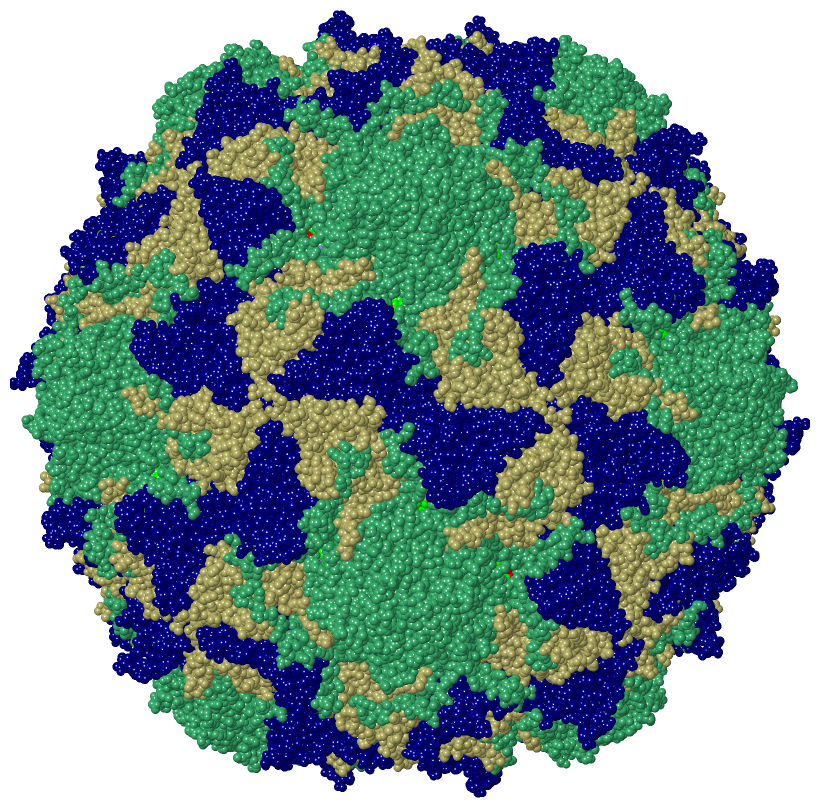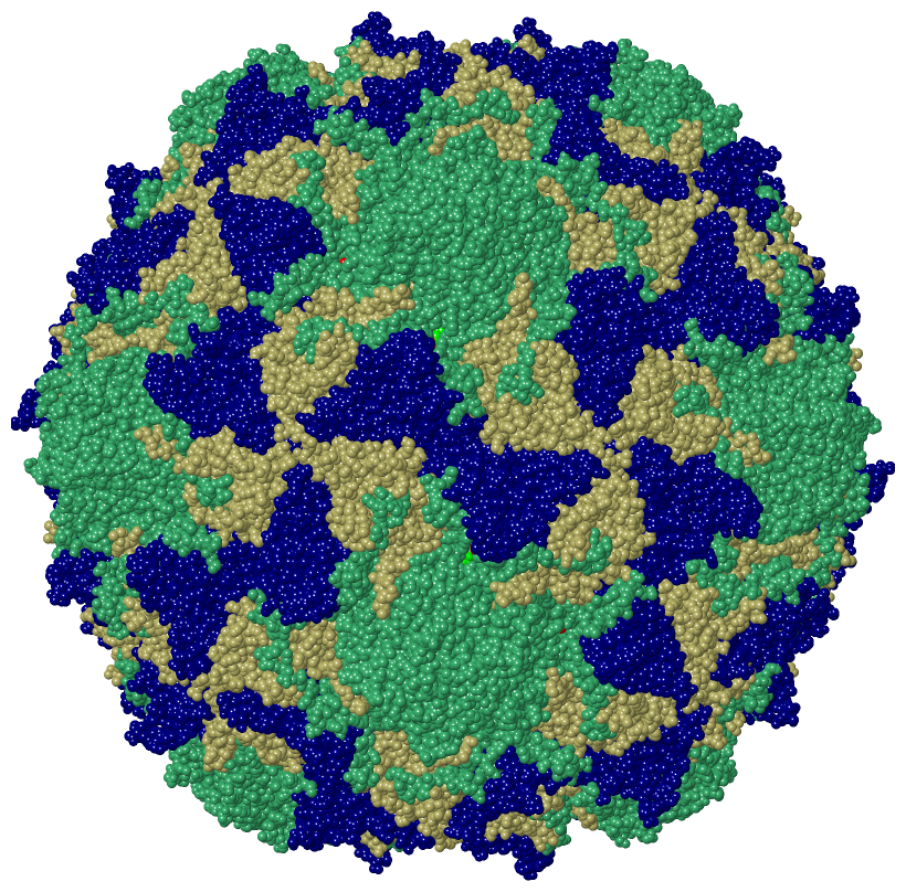 | | GO:0039618 | | T=pseudo3 icosahedral viral capsid | | The protein coat that surrounds the infective nucleic acid in some virus particles where the subunits (capsomeres) are arranged to form an icosahedron with pseudo T=3 symmetry. The T=pseudo3 capsid is composed of 12 pentameric and 20 hexameric capsomeres. |