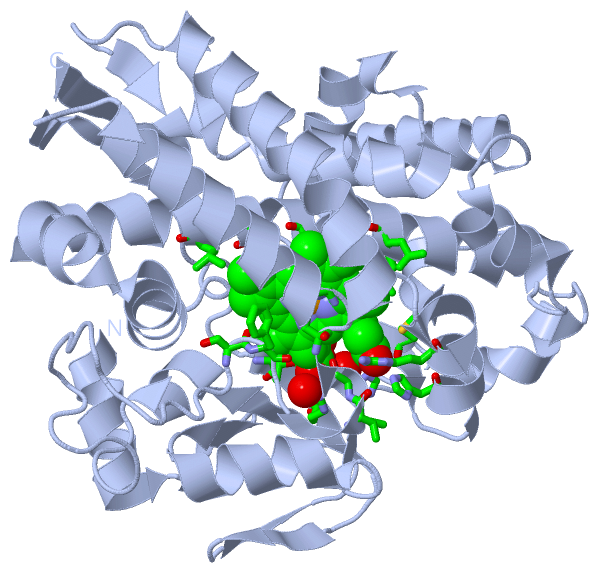 Asymmetric UnitChain A from PDB Type:PROTEIN Length:366 aligned with CP119_SULAC | Q55080 from UniProtKB/Swiss-Prot Length:368 Alignment length:366 10 20 30 40 50 60 70 80 90 100 110 120 130 140 150 160 170 180 190 200 210 220 230 240 250 260 270 280 290 300 310 320 330 340 350 360 CP119_SULAC 1 MYDWFSEMRKKDPVYYDGNIWQVFSYRYTKEVLNNFSKFSSDLTGYHERLEDLRNGKIRFDIPTRYTMLTSDPPLHDELRSMSADIFSPQKLQTLETFIRETTRSLLDSIDPREDDIVKKLAVPLPIIVISKILGLPIEDKEKFKEWSDLVAFRLGKPGEIFELGKKYLELIGYVKDHLNSGTEVVSRVVNSNLSDIEKLGYIILLLIAGNETTTNLISNSVIDFTRFNLWQRIREENLYLKAIEEALRYSPPVMRTVRKTKERVKLGDQTIEEGEYVRVWIASANRDEEVFHDGEKFIPDRNPNPHLSFGSGIHLCLGAPLARLEARIAIEEFSKRFRHIEILDTEKVPNEVLNGYKRLVVRLKS 366 SCOP domains d1io7a_ A: Cyp119 SCOP domains CATH domains 1io7A00 A:1-366 Cytochrome p450 CATH domains Pfam domains ------------------------------------------------------------------------------------------------------------------------------------------------------------------------------------------------------------------------------------------------------------------------------------------------------------------------------------------------------------------------------ Pfam domains SAPs(SNPs) ------------------------------------------------------------------------------------------------------------------------------------------------------------------------------------------------------------------------------------------------------------------------------------------------------------------------------------------------------------------------------ SAPs(SNPs) PROSITE ---------------------------------------------------------------------------------------------------------------------------------------------------------------------------------------------------------------------------------------------------------------------------------------------------------------------CYTOCHROME----------------------------------------------- PROSITE Transcript ------------------------------------------------------------------------------------------------------------------------------------------------------------------------------------------------------------------------------------------------------------------------------------------------------------------------------------------------------------------------------ Transcript 1io7 A 1 MYDWFSEMRKKDPVYYDGNIWQVFSYRYTKEVLNNFSKFSSDLTGYHERLEDLRNGKIRFDIPTRYTMLTSDPPLHDELRSMSADIFSPQKLQTLETFIRETTRSLLDSIDPREDDIVKKLAVPLPIIVISKILGLPIEDKEKFKEWSDLVAFRLGKPGEIFELGKKYLELIGYVKDHLNSGTEVVSRVVNSNLSDIEKLGYIILLLIAGNETTTNLISNSVIDFTRFNLWQRIREENLYLKAIEEALRYSPPVMRTVRKTKERVKLGDQTIEEGEYVRVWIASANRDEEVFHDGEKFIPDRNPNPHLSFGSGIHLCLGAPLARLEARIAIEEFSKRFRHIEILDTEKVPNEVLNGYKRLVVRLKS 366 10 20 30 40 50 60 70 80 90 100 110 120 130 140 150 160 170 180 190 200 210 220 230 240 250 260 270 280 290 300 310 320 330 340 350 360 Chain B from PDB Type:PROTEIN Length:359 aligned with CP119_SULAC | Q55080 from UniProtKB/Swiss-Prot Length:368 Alignment length:366 10 20 30 40 50 60 70 80 90 100 110 120 130 140 150 160 170 180 190 200 210 220 230 240 250 260 270 280 290 300 310 320 330 340 350 360 CP119_SULAC 1 MYDWFSEMRKKDPVYYDGNIWQVFSYRYTKEVLNNFSKFSSDLTGYHERLEDLRNGKIRFDIPTRYTMLTSDPPLHDELRSMSADIFSPQKLQTLETFIRETTRSLLDSIDPREDDIVKKLAVPLPIIVISKILGLPIEDKEKFKEWSDLVAFRLGKPGEIFELGKKYLELIGYVKDHLNSGTEVVSRVVNSNLSDIEKLGYIILLLIAGNETTTNLISNSVIDFTRFNLWQRIREENLYLKAIEEALRYSPPVMRTVRKTKERVKLGDQTIEEGEYVRVWIASANRDEEVFHDGEKFIPDRNPNPHLSFGSGIHLCLGAPLARLEARIAIEEFSKRFRHIEILDTEKVPNEVLNGYKRLVVRLKS 366 SCOP domains d1io7b_ B: Cyp119 SCOP domains CATH domains 1io7B00 B:501-866 Cytochrome p450 CATH domains Pfam domains ------------------------------------------------------------------------------------------------------------------------------------------------------------------------------------------------------------------------------------------------------------------------------------------------------------------------------------------------------------------------------ Pfam domains SAPs(SNPs) ------------------------------------------------------------------------------------------------------------------------------------------------------------------------------------------------------------------------------------------------------------------------------------------------------------------------------------------------------------------------------ SAPs(SNPs) PROSITE ---------------------------------------------------------------------------------------------------------------------------------------------------------------------------------------------------------------------------------------------------------------------------------------------------------------------CYTOCHROME----------------------------------------------- PROSITE Transcript ------------------------------------------------------------------------------------------------------------------------------------------------------------------------------------------------------------------------------------------------------------------------------------------------------------------------------------------------------------------------------ Transcript 1io7 B 501 MYDWFSEMRKKDPVYYDGNIWQVFSYRYTKEVLNNFSKFSSDLTGYHERLEDLRNGKIRFDIPTRYTMLTSDPPLHDELRSMSADIFSPQKLQTLETFIRETTRSLLDSIDPREDDIVKKLAVPLPIIVISKILGLPIEDKEKFKEWSDLVAFR-------FELGKKYLELIGYVKDHLNSGTEVVSRVVNSNLSDIEKLGYIILLLIAGNETTTNLISNSVIDFTRFNLWQRIREENLYLKAIEEALRYSPPVMRTVRKTKERVKLGDQTIEEGEYVRVWIASANRDEEVFHDGEKFIPDRNPNPHLSFGSGIHLCLGAPLARLEARIAIEEFSKRFRHIEILDTEKVPNEVLNGYKRLVVRLKS 866 510 520 530 540 550 560 570 580 590 600 610 620 630 640 650 | - | 670 680 690 700 710 720 730 740 750 760 770 780 790 800 810 820 830 840 850 860 654 662