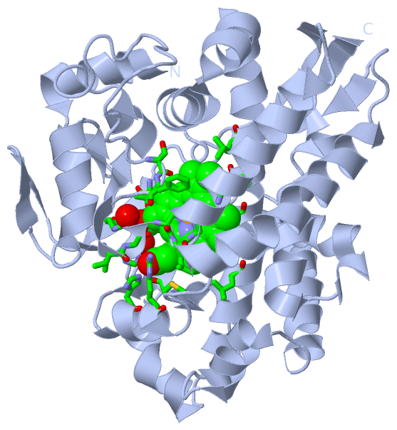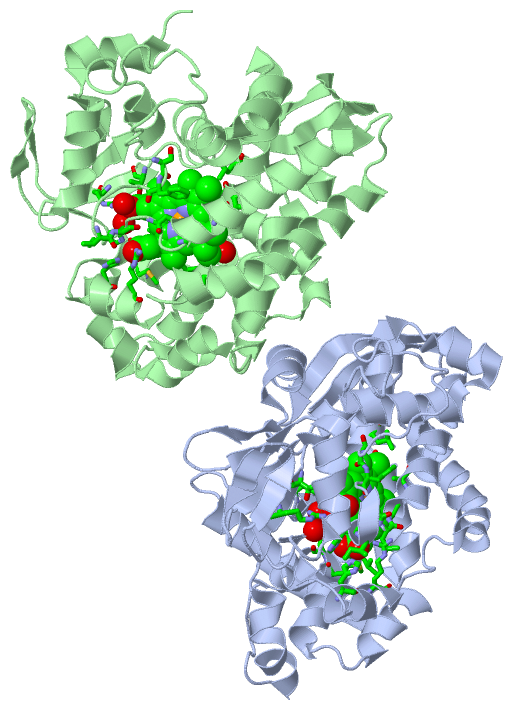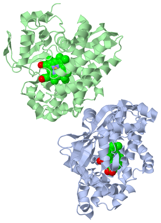 Asymmetric UnitChain A from PDB Type:PROTEIN Length:366 aligned with CP119_SULAC | Q55080 from UniProtKB/Swiss-Prot Length:368 Alignment length:366 10 20 30 40 50 60 70 80 90 100 110 120 130 140 150 160 170 180 190 200 210 220 230 240 250 260 270 280 290 300 310 320 330 340 350 360 CP119_SULAC 1 MYDWFSEMRKKDPVYYDGNIWQVFSYRYTKEVLNNFSKFSSDLTGYHERLEDLRNGKIRFDIPTRYTMLTSDPPLHDELRSMSADIFSPQKLQTLETFIRETTRSLLDSIDPREDDIVKKLAVPLPIIVISKILGLPIEDKEKFKEWSDLVAFRLGKPGEIFELGKKYLELIGYVKDHLNSGTEVVSRVVNSNLSDIEKLGYIILLLIAGNETTTNLISNSVIDFTRFNLWQRIREENLYLKAIEEALRYSPPVMRTVRKTKERVKLGDQTIEEGEYVRVWIASANRDEEVFHDGEKFIPDRNPNPHLSFGSGIHLCLGAPLARLEARIAIEEFSKRFRHIEILDTEKVPNEVLNGYKRLVVRLKS 366 SCOP domains d1io8a_ A: Cyp119 SCOP domains CATH domains 1io8A00 A:1-366 Cytochrome p450 CATH domains Pfam domains ------------------------------------------------------------------------------------------------------------------------------------------------------------------------------------------------------------------------------------------------------------------------------------------------------------------------------------------------------------------------------ Pfam domains SAPs(SNPs) ------------------------------------------------------------------------------------------------------------------------------------------------------------------------------------------------------------------------------------------------------------------------------------------------------------------------------------------------------------------------------ SAPs(SNPs) PROSITE ---------------------------------------------------------------------------------------------------------------------------------------------------------------------------------------------------------------------------------------------------------------------------------------------------------------------CYTOCHROME----------------------------------------------- PROSITE Transcript ------------------------------------------------------------------------------------------------------------------------------------------------------------------------------------------------------------------------------------------------------------------------------------------------------------------------------------------------------------------------------ Transcript 1io8 A 1 MYDWFSEMRKKDPVYYDGNIWQVLSYRYTKEVLNNFSKFSSDLTGYHERLEDLRNGKIRFDIPTRYTMLTSDPPLHDELRSMSADIFSPQKLQTLETFIRETTRSLLDSIDPREDDIVKKLAVPLPIIVISKILGLPIEDKEKFKEWSDLVAFRLGKPGEIFELGKKYLELIGYVKDHLNSGTEVVSRVVNSNLSDIEKLGYIILLLIAGNETTTNLISNSVIDFTRFNLWQRIREENLYLKAIEEALRYSPPVMRTVRKTKERVKLGDQTIEEGEYVRVWIASANRDEEVFHDGEKFIPDRNPNPHLSFGSGIHLCLGAPLARLEARIAIEEFSKRFRHIEILDTEKVPNEVLNGYKRLVVRLKS 366 10 20 30 40 50 60 70 80 90 100 110 120 130 140 150 160 170 180 190 200 210 220 230 240 250 260 270 280 290 300 310 320 330 340 350 360 Chain B from PDB Type:PROTEIN Length:359 aligned with CP119_SULAC | Q55080 from UniProtKB/Swiss-Prot Length:368 Alignment length:366 10 20 30 40 50 60 70 80 90 100 110 120 130 140 150 160 170 180 190 200 210 220 230 240 250 260 270 280 290 300 310 320 330 340 350 360 CP119_SULAC 1 MYDWFSEMRKKDPVYYDGNIWQVFSYRYTKEVLNNFSKFSSDLTGYHERLEDLRNGKIRFDIPTRYTMLTSDPPLHDELRSMSADIFSPQKLQTLETFIRETTRSLLDSIDPREDDIVKKLAVPLPIIVISKILGLPIEDKEKFKEWSDLVAFRLGKPGEIFELGKKYLELIGYVKDHLNSGTEVVSRVVNSNLSDIEKLGYIILLLIAGNETTTNLISNSVIDFTRFNLWQRIREENLYLKAIEEALRYSPPVMRTVRKTKERVKLGDQTIEEGEYVRVWIASANRDEEVFHDGEKFIPDRNPNPHLSFGSGIHLCLGAPLARLEARIAIEEFSKRFRHIEILDTEKVPNEVLNGYKRLVVRLKS 366 SCOP domains d1io8b_ B: Cyp119 SCOP domains CATH domains 1io8B00 B:501-866 Cytochrome p450 CATH domains Pfam domains ------------------------------------------------------------------------------------------------------------------------------------------------------------------------------------------------------------------------------------------------------------------------------------------------------------------------------------------------------------------------------ Pfam domains SAPs(SNPs) ------------------------------------------------------------------------------------------------------------------------------------------------------------------------------------------------------------------------------------------------------------------------------------------------------------------------------------------------------------------------------ SAPs(SNPs) PROSITE ---------------------------------------------------------------------------------------------------------------------------------------------------------------------------------------------------------------------------------------------------------------------------------------------------------------------CYTOCHROME----------------------------------------------- PROSITE Transcript ------------------------------------------------------------------------------------------------------------------------------------------------------------------------------------------------------------------------------------------------------------------------------------------------------------------------------------------------------------------------------ Transcript 1io8 B 501 MYDWFSEMRKKDPVYYDGNIWQVLSYRYTKEVLNNFSKFSSDLTGYHERLEDLRNGKIRFDIPTRYTMLTSDPPLHDELRSMSADIFSPQKLQTLETFIRETTRSLLDSIDPREDDIVKKLAVPLPIIVISKILGLPIEDKEKFKEWSDLVAFR-------FELGKKYLELIGYVKDHLNSGTEVVSRVVNSNLSDIEKLGYIILLLIAGNETTTNLISNSVIDFTRFNLWQRIREENLYLKAIEEALRYSPPVMRTVRKTKERVKLGDQTIEEGEYVRVWIASANRDEEVFHDGEKFIPDRNPNPHLSFGSGIHLCLGAPLARLEARIAIEEFSKRFRHIEILDTEKVPNEVLNGYKRLVVRLKS 866 510 520 530 540 550 560 570 580 590 600 610 620 630 640 650 | - | 670 680 690 700 710 720 730 740 750 760 770 780 790 800 810 820 830 840 850 860 654 662