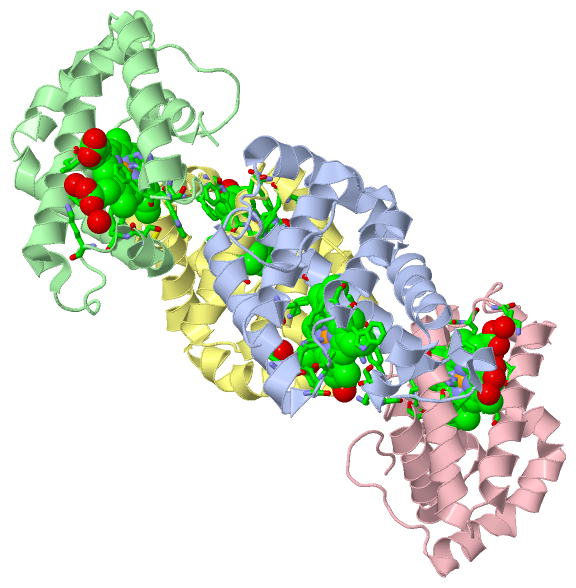 Asymmetric UnitChain A from PDB Type:PROTEIN Length:146 aligned with GLBF1_EPTBU | Q7SID0 from UniProtKB/Swiss-Prot Length:146 Alignment length:146 10 20 30 40 50 60 70 80 90 100 110 120 130 140 GLBF1_EPTBU 1 PIIDQGPLPTLTDGDKKAINKIWPKIYKEYEQYSLNILLRFLKCFPQAQASFPKFSTKKSNLEQDPEVKHQAVVIFNKVNEIINSMDNQEEIIKSLKDLSQKHKTVFKVDSIWFKELSSIFVSTIDGGAEFEKLFSIICILLRSAY 146 SCOP domains d1it3a_ A: Hagfish hemoglobin SCOP domains CATH domains 1it3A00 A:1-146 Globins CATH domains Pfam domains -------------------------------------------------------------------------------------------------------------------------------------------------- Pfam domains SAPs(SNPs) -------------------------------------------------------------------------------------------------------------------------------------------------- SAPs(SNPs) PROSITE ----------GLOBIN PDB: A:11-146 UniProt: 11-146 PROSITE Transcript -------------------------------------------------------------------------------------------------------------------------------------------------- Transcript 1it3 A 1 PIIDQGPLPTLTDGDKKAINKIWPKIYKEYEQYSLNILLRFLKCFPQAQASFPKFSTKKSNLEQDPEVKHQAVVIFNKVNEIINSMDNQEEIIKSLKDLSQKHKTVFKVDSIWFKELSSIFVSTIDGGAEFEKLFSIICILLRSAY 146 10 20 30 40 50 60 70 80 90 100 110 120 130 140 Chain B from PDB Type:PROTEIN Length:146 aligned with GLBF1_EPTBU | Q7SID0 from UniProtKB/Swiss-Prot Length:146 Alignment length:146 10 20 30 40 50 60 70 80 90 100 110 120 130 140 GLBF1_EPTBU 1 PIIDQGPLPTLTDGDKKAINKIWPKIYKEYEQYSLNILLRFLKCFPQAQASFPKFSTKKSNLEQDPEVKHQAVVIFNKVNEIINSMDNQEEIIKSLKDLSQKHKTVFKVDSIWFKELSSIFVSTIDGGAEFEKLFSIICILLRSAY 146 SCOP domains d1it3b_ B: Hagfish hemoglobin SCOP domains CATH domains 1it3B00 B:201-346 Globins CATH domains Pfam domains -------------------------------------------------------------------------------------------------------------------------------------------------- Pfam domains SAPs(SNPs) -------------------------------------------------------------------------------------------------------------------------------------------------- SAPs(SNPs) PROSITE ----------GLOBIN PDB: B:211-346 UniProt: 11-146 PROSITE Transcript -------------------------------------------------------------------------------------------------------------------------------------------------- Transcript 1it3 B 201 PIIDQGPLPTLTDGDKKAINKIWPKIYKEYEQYSLNILLRFLKCFPQAQASFPKFSTKKSNLEQDPEVKHQAVVIFNKVNEIINSMDNQEEIIKSLKDLSQKHKTVFKVDSIWFKELSSIFVSTIDGGAEFEKLFSIICILLRSAY 346 210 220 230 240 250 260 270 280 290 300 310 320 330 340 Chain C from PDB Type:PROTEIN Length:146 aligned with GLBF1_EPTBU | Q7SID0 from UniProtKB/Swiss-Prot Length:146 Alignment length:146 10 20 30 40 50 60 70 80 90 100 110 120 130 140 GLBF1_EPTBU 1 PIIDQGPLPTLTDGDKKAINKIWPKIYKEYEQYSLNILLRFLKCFPQAQASFPKFSTKKSNLEQDPEVKHQAVVIFNKVNEIINSMDNQEEIIKSLKDLSQKHKTVFKVDSIWFKELSSIFVSTIDGGAEFEKLFSIICILLRSAY 146 SCOP domains d1it3c_ C: Hagfish hemoglobin SCOP domains CATH domains 1it3C00 C:401-546 Globins CATH domains Pfam domains -------------------------------------------------------------------------------------------------------------------------------------------------- Pfam domains SAPs(SNPs) -------------------------------------------------------------------------------------------------------------------------------------------------- SAPs(SNPs) PROSITE ----------GLOBIN PDB: C:411-546 UniProt: 11-146 PROSITE Transcript -------------------------------------------------------------------------------------------------------------------------------------------------- Transcript 1it3 C 401 PIIDQGPLPTLTDGDKKAINKIWPKIYKEYEQYSLNILLRFLKCFPQAQASFPKFSTKKSNLEQDPEVKHQAVVIFNKVNEIINSMDNQEEIIKSLKDLSQKHKTVFKVDSIWFKELSSIFVSTIDGGAEFEKLFSIICILLRSAY 546 410 420 430 440 450 460 470 480 490 500 510 520 530 540 Chain D from PDB Type:PROTEIN Length:146 aligned with GLBF1_EPTBU | Q7SID0 from UniProtKB/Swiss-Prot Length:146 Alignment length:146 10 20 30 40 50 60 70 80 90 100 110 120 130 140 GLBF1_EPTBU 1 PIIDQGPLPTLTDGDKKAINKIWPKIYKEYEQYSLNILLRFLKCFPQAQASFPKFSTKKSNLEQDPEVKHQAVVIFNKVNEIINSMDNQEEIIKSLKDLSQKHKTVFKVDSIWFKELSSIFVSTIDGGAEFEKLFSIICILLRSAY 146 SCOP domains d1it3d_ D: Hagfish hemoglobin SCOP domains CATH domains 1it3D00 D:601-746 Globins CATH domains Pfam domains -------------------------------------------------------------------------------------------------------------------------------------------------- Pfam domains SAPs(SNPs) -------------------------------------------------------------------------------------------------------------------------------------------------- SAPs(SNPs) PROSITE ----------GLOBIN PDB: D:611-746 UniProt: 11-146 PROSITE Transcript -------------------------------------------------------------------------------------------------------------------------------------------------- Transcript 1it3 D 601 PIIDQGPLPTLTDGDKKAINKIWPKIYKEYEQYSLNILLRFLKCFPQAQASFPKFSTKKSNLEQDPEVKHQAVVIFNKVNEIINSMDNQEEIIKSLKDLSQKHKTVFKVDSIWFKELSSIFVSTIDGGAEFEKLFSIICILLRSAY 746 610 620 630 640 650 660 670 680 690 700 710 720 730 740
