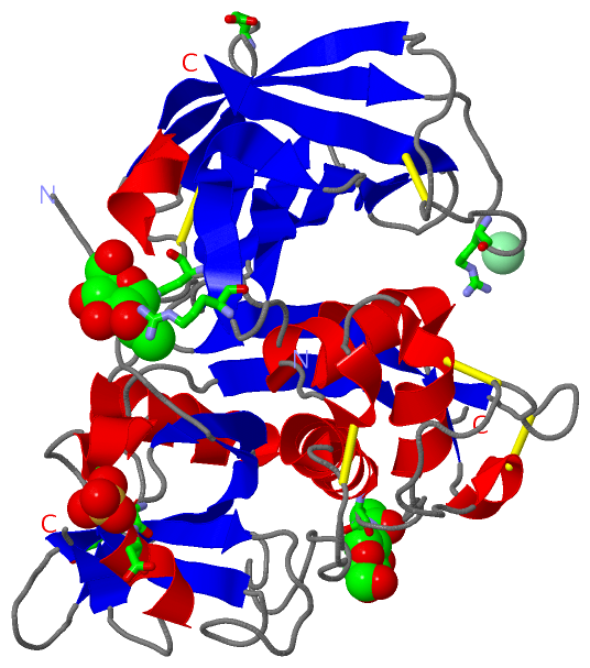 | | GO:0004197 | | cysteine-type endopeptidase activity | | Catalysis of the hydrolysis of internal, alpha-peptide bonds in a polypeptide chain by a mechanism in which the sulfhydryl group of a cysteine residue at the active center acts as a nucleophile. |