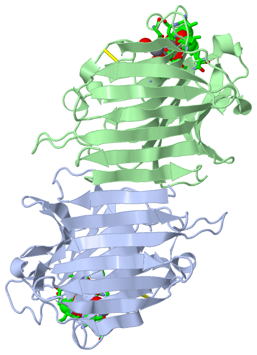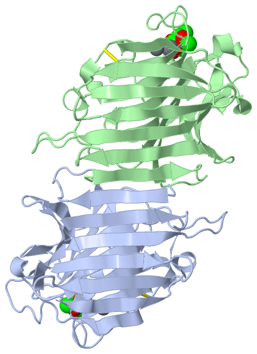 Asymmetric UnitChain A from PDB Type:PROTEIN Length:240 aligned with LEC1_ULEEU | P22972 from UniProtKB/Swiss-Prot Length:243 Alignment length:241 10 20 30 40 50 60 70 80 90 100 110 120 130 140 150 160 170 180 190 200 210 220 230 240 LEC1_ULEEU 1 SDDLSFKFKNFSQNGKDLSFQGDASVIETGVLQLNKVGNNLPDETGGIARYIAPIHIWNCNTGEVASFITSFSFFMETSANPKAATDGLTFFLAPPDSPLRRAGGYFGLFEDTKDNDSSYQTVAVEFDTIGSPVNFDDPGFPHIGIDVNRVKSINAERWNKRYGLNNVANVEIIYEASSKTLTASLTYPSDQTSISVTSIVDLKEILPEWVSVGFSGGTYIGRQATHEVLNWYFTSNLINT 241 SCOP domains d1jxna_ A: Legume lectin SCOP domains CATH domains 1jxnA00 A:1-240 [code=2.60.120.200, no name defined] CATH domains Pfam domains ------------------------------------------------------------------------------------------------------------------------------------------------------------------------------------------------------------------------------------------------- Pfam domains SAPs(SNPs) ------------------------------------------------------------------------------------------------------------------------------------------------------------------------------------------------------------------------------------------------- SAPs(SNPs) PROSITE --------------------------------------------------------------------------------------------------------------------------LECTIN_-----------------------------------------------------------------------------LECTIN_LEG------------------------- PROSITE Transcript ------------------------------------------------------------------------------------------------------------------------------------------------------------------------------------------------------------------------------------------------- Transcript 1jxn A 1 SDDLSFKFKNFSQNGKDLSFQGNASVIETGVLQLNKVGNNLPDETGGIARYIAPIHIWNCNTGELASFITSFSFFMETSANPKAATDGLTFFLAPPDSPLRRAGGYFGLFNDTK-CDSSYQTVAVEFDTIGSPVNFWDPGFPHIGIDVNCVKSINAERWNKRYGLNNVANVEIIYEASSKTLTASLTYPSDQTSISVTSIVDLKEILPEWVSVGFSGSTYIGRQATHEVLNWYFTSTFINT 240 10 20 30 40 50 60 70 80 90 100 110 | | 119 129 139 149 159 169 179 189 199 209 219 229 239 114 | 115 Chain B from PDB Type:PROTEIN Length:240 aligned with LEC1_ULEEU | P22972 from UniProtKB/Swiss-Prot Length:243 Alignment length:241 10 20 30 40 50 60 70 80 90 100 110 120 130 140 150 160 170 180 190 200 210 220 230 240 LEC1_ULEEU 1 SDDLSFKFKNFSQNGKDLSFQGDASVIETGVLQLNKVGNNLPDETGGIARYIAPIHIWNCNTGEVASFITSFSFFMETSANPKAATDGLTFFLAPPDSPLRRAGGYFGLFEDTKDNDSSYQTVAVEFDTIGSPVNFDDPGFPHIGIDVNRVKSINAERWNKRYGLNNVANVEIIYEASSKTLTASLTYPSDQTSISVTSIVDLKEILPEWVSVGFSGGTYIGRQATHEVLNWYFTSNLINT 241 SCOP domains d1jxnb_ B: Legume lectin SCOP domains CATH domains 1jxnB00 B:1-240 [code=2.60.120.200, no name defined] CATH domains Pfam domains ------------------------------------------------------------------------------------------------------------------------------------------------------------------------------------------------------------------------------------------------- Pfam domains SAPs(SNPs) ------------------------------------------------------------------------------------------------------------------------------------------------------------------------------------------------------------------------------------------------- SAPs(SNPs) PROSITE --------------------------------------------------------------------------------------------------------------------------LECTIN_-----------------------------------------------------------------------------LECTIN_LEG------------------------- PROSITE Transcript ------------------------------------------------------------------------------------------------------------------------------------------------------------------------------------------------------------------------------------------------- Transcript 1jxn B 1 SDDLSFKFKNFSQNGKDLSFQGNASVIETGVLQLNKVGNNLPDETGGIARYIAPIHIWNCNTGELASFITSFSFFMETSANPKAATDGLTFFLAPPDSPLRRAGGYFGLFNDTK-CDSSYQTVAVEFDTIGSPVNFWDPGFPHIGIDVNCVKSINAERWNKRYGLNNVANVEIIYEASSKTLTASLTYPSDQTSISVTSIVDLKEILPEWVSVGFSGSTYIGRQATHEVLNWYFTSTFINT 240 10 20 30 40 50 60 70 80 90 100 110 | | 119 129 139 149 159 169 179 189 199 209 219 229 239 114 | 115 Chain C from PDB Type:PROTEIN Length:240 aligned with LEC1_ULEEU | P22972 from UniProtKB/Swiss-Prot Length:243 Alignment length:241 10 20 30 40 50 60 70 80 90 100 110 120 130 140 150 160 170 180 190 200 210 220 230 240 LEC1_ULEEU 1 SDDLSFKFKNFSQNGKDLSFQGDASVIETGVLQLNKVGNNLPDETGGIARYIAPIHIWNCNTGEVASFITSFSFFMETSANPKAATDGLTFFLAPPDSPLRRAGGYFGLFEDTKDNDSSYQTVAVEFDTIGSPVNFDDPGFPHIGIDVNRVKSINAERWNKRYGLNNVANVEIIYEASSKTLTASLTYPSDQTSISVTSIVDLKEILPEWVSVGFSGGTYIGRQATHEVLNWYFTSNLINT 241 SCOP domains d1jxnc_ C: Legume lectin SCOP domains CATH domains 1jxnC00 C:1-240 [code=2.60.120.200, no name defined] CATH domains Pfam domains ------------------------------------------------------------------------------------------------------------------------------------------------------------------------------------------------------------------------------------------------- Pfam domains SAPs(SNPs) ------------------------------------------------------------------------------------------------------------------------------------------------------------------------------------------------------------------------------------------------- SAPs(SNPs) PROSITE --------------------------------------------------------------------------------------------------------------------------LECTIN_-----------------------------------------------------------------------------LECTIN_LEG------------------------- PROSITE Transcript ------------------------------------------------------------------------------------------------------------------------------------------------------------------------------------------------------------------------------------------------- Transcript 1jxn C 1 SDDLSFKFKNFSQNGKDLSFQGNASVIETGVLQLNKVGNNLPDETGGIARYIAPIHIWNCNTGELASFITSFSFFMETSANPKAATDGLTFFLAPPDSPLRRAGGYFGLFNDTK-CDSSYQTVAVEFDTIGSPVNFWDPGFPHIGIDVNCVKSINAERWNKRYGLNNVANVEIIYEASSKTLTASLTYPSDQTSISVTSIVDLKEILPEWVSVGFSGSTYIGRQATHEVLNWYFTSTFINT 240 10 20 30 40 50 60 70 80 90 100 1