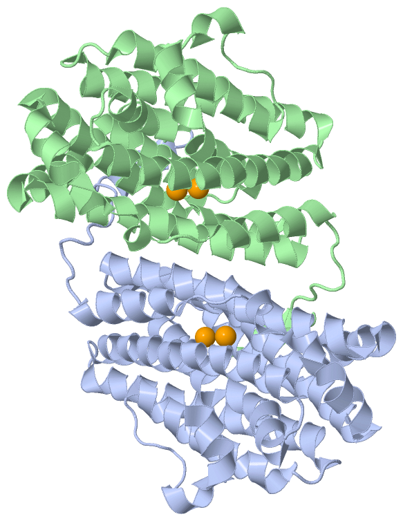 Asymmetric UnitChain A from PDB Type:PROTEIN Length:296 aligned with O69274_CORAM | O69274 from UniProtKB/TrEMBL Length:329 Alignment length:296 11 21 31 41 51 61 71 81 91 101 111 121 131 141 151 161 171 181 191 201 211 221 231 241 251 261 271 281 291 O69274_CORAM 2 SNEYDEYIANHTDPVKAINWNVIPDEKDLEVWDRLTGNFWLPEKIPVSNDIQSWNKMTPQEQLATMRVFTGLTLLDTIQGTVGAISLLPDAETMHEEAVYTNIAFMESVHAKSYSNIFMTLASTPQINEAFRWSEENENLQRKAKIIMSYYNGDDPLKKKVASTLLESFLFYSGFYLPMYLSSRAKLTNTADIIRLIIRDESVHGYYIGYKYQQGVKKLSEAEQEEYKAYTFDLMYDLYENEIEYTEDIYDDLGWTEDVKRFLRYNANKALNNLGYEGLFPTDETKVSPAILSSLS 297 SCOP domains d1kgna_ A: Ribonucleotide reductase R2 SCOP domains CATH domains 1kgnA00 A:2-297 Ribonucleotide Reductase, subunit A CATH domains Pfam domains -------------------------------------------------------------------------------------------------------------------------------------------------------------------------------------------------------------------------------------------------------------------------------------------------------- Pfam domains SAPs(SNPs) -------------------------------------------------------------------------------------------------------------------------------------------------------------------------------------------------------------------------------------------------------------------------------------------------------- SAPs(SNPs) PROSITE -------------------------------------------------------------------------------------------------------------------------------------------------------------------------------------------------------------------------------------------------------------------------------------------------------- PROSITE Transcript -------------------------------------------------------------------------------------------------------------------------------------------------------------------------------------------------------------------------------------------------------------------------------------------------------- Transcript 1kgn A 2 SNEYDEYIANHTDPVKAINWNVIPDEKDLEVWDRLTGNFWLPEKIPVSNDIQSWNKMTPQEQLATMRVFTGLTLLDTIQGTVGAISLLPDAETMHEEAVYTNIAFMESVHAKSYSNIFMTLASTPQINEAFRWSEENENLQRKAKIIMSYYNGDDPLKKKVASTLLESFLFYSGFYLPMYLSSRAKLTNTADIIRLIIRDESVHGYYIGYKYQQGVKKLSEAEQEEYKAYTFDLMYDLYENEIEYTEDIYDDLGWTEDVKRFLRYNANKALNNLGYEGLFPTDETKVSPAILSSLS 297 11 21 31 41 51 61 71 81 91 101 111 121 131 141 151 161 171 181 191 201 211 221 231 241 251 261 271 281 291 Chain B from PDB Type:PROTEIN Length:296 aligned with O69274_CORAM | O69274 from UniProtKB/TrEMBL Length:329 Alignment length:296 11 21 31 41 51 61 71 81 91 101 111 121 131 141 151 161 171 181 191 201 211 221 231 241 251 261 271 281 291 O69274_CORAM 2 SNEYDEYIANHTDPVKAINWNVIPDEKDLEVWDRLTGNFWLPEKIPVSNDIQSWNKMTPQEQLATMRVFTGLTLLDTIQGTVGAISLLPDAETMHEEAVYTNIAFMESVHAKSYSNIFMTLASTPQINEAFRWSEENENLQRKAKIIMSYYNGDDPLKKKVASTLLESFLFYSGFYLPMYLSSRAKLTNTADIIRLIIRDESVHGYYIGYKYQQGVKKLSEAEQEEYKAYTFDLMYDLYENEIEYTEDIYDDLGWTEDVKRFLRYNANKALNNLGYEGLFPTDETKVSPAILSSLS 297 SCOP domains d1kgnb_ B: Ribonucleotide reductase R2 SCOP domains CATH domains 1kgnB00 B:2-297 Ribonucleotide Reductase, subunit A CATH domains Pfam domains -------------------------------------------------------------------------------------------------------------------------------------------------------------------------------------------------------------------------------------------------------------------------------------------------------- Pfam domains SAPs(SNPs) -------------------------------------------------------------------------------------------------------------------------------------------------------------------------------------------------------------------------------------------------------------------------------------------------------- SAPs(SNPs) PROSITE -------------------------------------------------------------------------------------------------------------------------------------------------------------------------------------------------------------------------------------------------------------------------------------------------------- PROSITE Transcript -------------------------------------------------------------------------------------------------------------------------------------------------------------------------------------------------------------------------------------------------------------------------------------------------------- Transcript 1kgn B 2 SNEYDEYIANHTDPVKAINWNVIPDEKDLEVWDRLTGNFWLPEKIPVSNDIQSWNKMTPQEQLATMRVFTGLTLLDTIQGTVGAISLLPDAETMHEEAVYTNIAFMESVHAKSYSNIFMTLASTPQINEAFRWSEENENLQRKAKIIMSYYNGDDPLKKKVASTLLESFLFYSGFYLPMYLSSRAKLTNTADIIRLIIRDESVHGYYIGYKYQQGVKKLSEAEQEEYKAYTFDLMYDLYENEIEYTEDIYDDLGWTEDVKRFLRYNANKALNNLGYEGLFPTDETKVSPAILSSLS 297 11 21 31 41 51 61 71 81 91 101 111 121 131 141 151 161 171 181 191 201 211 221 231 241 251 261 271 281 291 Chain C from PDB Type:PROTEIN Length:296 aligned with O69274_CORAM | O69274 from UniProtKB/TrEMBL Length:329 Alignment length:296 11 21 31 41 51 61 71 81 91 101 111 121 131 141 151 161 171 181 191 201 211 221 231 241 251 261 271 281 291 O69274_CORAM 2 SNEYDEYIANHTDPVKAINWNVIPDEKDLEVWDRLTGNFWLPEKIPVSNDIQSWNKMTPQEQLATMRVFTGLTLLDTIQGTVGAISLLPDAETMHEEAVYTNIAFMESVHAKSYSNIFMTLASTPQINEAFRWSEENENLQRKAKIIMSYYNGDDPLKKKVASTLLESFLFYSGFYLPMYLSSRAKLTNTADIIRLIIRDESVHGYYIGYKYQQGVKKLSEAEQEEYKAYTFDLMYDLYENEIEYTEDIYDDLGWTEDVKRFLRYNANKALNNLGYEGLFPTDETKVSPAILSSLS 297 SCOP domains d1kgnc_ C: Ribonucleotide reductase R2 SCOP domains CATH domains 1kgnC00 C:2-297 Ribonucleotide Reductase, subunit A CATH domains Pfam domains -------------------------------------------------------------------------------------------------------------------------------------------------------------------------------------------------------------------------------------------------------------------------------------------------------- Pfam domains SAPs(SNPs) -------------------------------------------------------------------------------------------------------------------------------------------------------------------------------------