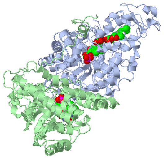 Asymmetric UnitChain A from PDB Type:PROTEIN Length:478 aligned with CYB2_YEAST | P00175 from UniProtKB/Swiss-Prot Length:591 Alignment length:502 99 109 119 129 139 149 159 169 179 189 199 209 219 229 239 249 259 269 279 289 299 309 319 329 339 349 359 369 379 389 399 409 419 429 439 449 459 469 479 489 499 509 519 529 539 549 559 569 579 589 CYB2_YEAST 90 KISPAEVAKHNKPDDCWVVINGYVYDLTRFLPNHPGGQDVIKFNAGKDVTAIFEPLHAPNVIDKYIAPEKKLGPLQGSMPPELVCPPYAPGETKEDIARKEQLKSLLPPLDNIINLYDFEYLASQTLTKQAWAYYSSGANDEVTHRENHNAYHRIFFKPKILVDVRKVDISTDMLGSHVDVPFYVSATALCKLGNPLEGEKDVARGCGQGVTKVPQMISTLASCSPEEIIEAAPSDKQIQWYQLYVNSDRKITDDLVKNVEKLGVKALFVTVDAPSLGQREKDMKLKFSNTKAGPKAMKKTNVEESQGASRALSKFIDPSLTWKDIEELKKKTKLPIVIKGVQRTEDVIKAAEIGVSGVVLSNHGGRQLDFSRAPIEVLAETMPILEQRNLKDKLEVFVDGGVRRGTDVLKALCLGAKGVGLGRPFLYANSCYGRNGVEKAIEILRDEIEMSMRLLGVTSIAELKPDLLDLSTLKARTVGVPNDVLYNEVYEGPTLTEFEDA 591 SCOP domains d1ldca2 A:10-97 Flavocytochrome b2, N-terminal domain d1ldca1 A:98-511 Flavocytochrome b2, C-terminal domain SCOP domains CATH domains 1ldcA01 A:10-104 Flavocytochrome B2, subunit A, domain 1 -------1ldcA02 A:112-493 Aldolase class I ------------------ CATH domains Pfam domains ---------------------------------------------------------------------------------------------------------------------------------------------------------------------------------------------------------------------------------------------------------------------------------------------------------------------------------------------------------------------------------------------------------------------------------------------------------------------------------------------------------------------- Pfam domains SAPs(SNPs) ---------------------------------------------------------------------------------------------------------------------------------------------------------------------------------------------------------------------------------------------------------------------------------------------------------------------------------------------------------------------------------------------------------------------------------------------------------------------------------------------------------------------- SAPs(SNPs) PROSITE (1) -----------------------------CYTOCHRO----------------------------------------------------------------------FMN_HYDROXY_ACID_DH_2 PDB: A:117-483 UniProt: 197-563 ---------------------------- PROSITE (1) PROSITE (2) -------------------------------------------------------------------------------------------------------------------------------------------------------------------------------------------------------------------------------------------------------------------------------------------------------------------------------------------------------------------------FMN_HYD-------------------------------------------------------------------------------------------------------------------------------------- PROSITE (2) Transcript 1 Exon 1.1 PDB: A:10-511 (gaps) UniProt: 1-591 [INCOMPLETE] Transcript 1 1ldc A 10 KISPAEVAKHNKPDDCWVVINGYVYDLTRFLPNHPGGQDVIKFNAGKDVTAIFEPLHAPNVIDKYIAPEKKLGPLQGSMPPELVCPPYAPGETKEDIARKEQLKSLLPPLDNIINLYDFEYLASQTLTKQAWAFYSSGANDEVTHRENHNAYHRIFFKPKILVDVRKVDISTDMLGSHVDVPFYVSATALCKLGNPLEGEKDVARGCGQGVTKVPQMISTLASCSPEEIIEAAPSDKQIQWYQLYVNSDRKITDDLVKNVEKLGVKALFVTVDAPSLGQREKDMKLK------------------------ALSKFIDPSLTWKDIEELKKKTKLPIVIKGVQRTEDVIKAAEIGVSGVVLSNHGGRQLDFSRAPIEVLAETMPILEQRNLKDKLEVFVDGGVRRGTDVLKALCLGAKGVGLGRPFLYANSCYGRNGVEKAIEILRDEIEMSMRLLGVTSIAELKPDLLDLSTLKARTVGVPNDVLYNEVYEGPTLTEFEDA 511 19 29 39 49 59 69 79 89 99 109 119 129 139 149 159 169 179 189 199 209 219 229 239 249 259 269 279 289 | - - - | 329 339 349 359 369 379 389 399 409 419 429 439 449 459 469 479 489 499 509 296 321 Chain B from PDB Type:PROTEIN Length:382 aligned with CYB2_YEAST | P00175 from UniProtKB/Swiss-Prot Length:591 Alignment length:410 191 201 211 221 231 241 251 261 271 281 291 301 311 321 331 341 351 361 371 381 391 401 411 421 431 441 451 461 471 481 491 501 511 521 531 541 551 561 571 581 591 CYB2_YEAST 182 TKEDIARKEQLKSLLPPLDNIINLYDFEYLASQTLTKQAWAYYSSGANDEVTHRENHNAYHRIFFKPKILVDVRKVDISTDMLGSHVDVPFYVSATALCKLGNPLEGEKDVARGCGQGVTKVPQMISTLASCSPEEIIEAAPSDKQIQWYQLYVNSDRKITDDLVKNVEKLGVKALFVTVDAPSLGQREKDMKLKFSNTKAGPKAMKKTNVEESQGASRALSKFIDPSLTWKDIEELKKKTKLPIVIKGVQRTEDVIKAAEIGVSGVVLSNHGGRQLDFSRAPIEVLAETMPILEQRNLKDKLEVFVDGGVRRGTDVLKALCLGAKGVGLGRPFLYANSCYGRNGVEKAIEILRDEIEMSMRLLGVTSIAELKPDLLDLSTLKARTVGVPNDVLYNEVYEGPTLTEFEDA 591 SCOP domains d1ldcb_ B: Flavocytochrome b2, C-terminal domain SCOP domains CATH domains 1ldcB00 B:102-511 Aldolase class I CATH domains Pfam domains (1) ------------------------------FMN_dh-1ldcB01 B:132-480 ------------------------------- Pfam domains (1) Pfam domains (2) ------------------------------FMN_dh-1ldcB02 B:132-480 ------------------------------- Pfam domains (2) Pfam domains (3) Cyt-b5-1ldcB03 B:102-162 ------------------------------------------------------------------------------------------------------------------------------------------------------------------------------------------------------------------------------------------------------------------------------------------------------------------------------------------------------------- Pfam domains (3) Pfam domains (4) Cyt-b5-1ldcB04 B:102-162 ------------------------------------------------------------------------------------------------------------------------------------------------------------------------------------------------------------------------------------------------------------------------------------------------------------------------------------------------------------- Pfam domains (4) SAPs(SNPs) ----------------------------------------------------------------------------------------------------------------------------------------------------------------------------------------------------------------------------------------------------------------------------------------------------------------------------------------
