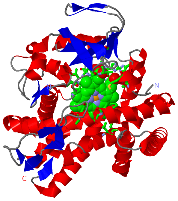 Asymmetric/Biological UnitChain A from PDB Type:PROTEIN Length:377 aligned with C5B3_AMYOR | Q8RN04 from UniProtKB/Swiss-Prot Length:398 Alignment length:394 14 24 34 44 54 64 74 84 94 104 114 124 134 144 154 164 174 184 194 204 214 224 234 244 254 264 274 284 294 304 314 324 334 344 354 364 374 384 394 C5B3_AMYOR 5 DPRPLHIRRQGLDPADELLAAGALTRVTIGSGADAETHWMATAHAVVRQVMGDHQQFSTRRRWDPRDEIGGKGIFRPRELVGNLMDYDPPEHTRLRRKLTPGFTLRKMQRMAPYIEQIVNDRLDEMERAGSPADLIAFVADKVPGAVLCELVGVPRDDRDMFMKLCHGHLDASLSQKRRAALGDKFSRYLLAMIARERKEPGEGMIGAVVAEYGDDATDEELRGFCVQVMLAGDDNISGMIGLGVLAMLRHPEQIDAFRGDEQSAQRAVDELIRYLTVPYSPTPRIAREDLTLAGQEIKKGDSVICSLPAANRDPALAPDVDRLDVTREPIPHVAFGHGVHHCLGAALARLELRTVFTELWRRFPALRLADPAQDTEFRLTTPAYGLTELMVAW 398 SCOP domains d1lg9a_ A: p450 monoxygenase OxyB SCOP domains CATH domains 1lg9A00 A:5-398 Cytochrome p450 CATH domains Pfam domains ---------------------------------------------------------------------------------------------------------------------------------------------------------p450-1lg9A01 A:158-392 ------ Pfam domains SAPs(SNPs) ---------------------------------------------------------------------------------------------------------------------------------------------------------------------------------------------------------------------------------------------------------------------------------------------------------------------------------------------------------------------------------------------------------- SAPs(SNPs) PROSITE -----------------------------------------------------------------------------------------------------------------------------------------------------------------------------------------------------------------------------------------------------------------------------------------------------------------------------------------------CYTOCHROME------------------------------------------------- PROSITE Transcript ---------------------------------------------------------------------------------------------------------------------------------------------------------------------------------------------------------------------------------------------------------------------------------------------------------------------------------------------------------------------------------------------------------- Transcript 1lg9 A 5 DPRPLHIRRQGLDPADELLAAGALTRVTIGSGADAETHWMATAHAVVRQVMGDHQQFSTRR-----------------ELVGNLMDYDPPEHTRLRRKLTPGFTLRKMQRMAPYIEQIVNDRLDEMERAGSPADLIAFVADKVPGAVLCELVGVPRDDRDMFMKLCHGHLDASLSQKRRAALGDKFSRYLLAMIARERKEPGEGMIGAVVAEYGDDATDEELRGFCVQVMLAGDDNISGMIGLGVLAMLRHPEQIDAFRGDEQSAQRAVDELIRYLTVPYSPTPRIAREDLTLAGQEIKKGDSVICSLPAANRDPALAPDVDRLDVTREPIPHVAFGHGVHHCLGAALARLELRTVFTELWRRFPALRLADPAQDTEFRLTTPAYGLTELMVAW 398 14 24 34 44 54 64| - 84 94 104 114 124 134 144 154 164 174 184 194 204 214 224 234 244 254 264 274 284 294 304 314 324 334 344 354 364 374 384 394 65 83