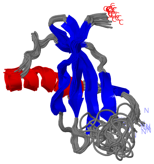 NMR StructureChain A from PDB Type:PROTEIN Length:97 aligned with MONA_DIOCU | P02881 from UniProtKB/Swiss-Prot Length:45 Alignment length:97 1 - - - - - | 8 18 28 38 MONA_DIOCU - ----------------------------------------------------FREIKGYEYQLYVYASDKLFRADISEDYKTRGRKLLRFNGPVPPP 45 SCOP domains d1m9ga_ A: Monellin, B & A chains together SCOP domains CATH domains 1m9gA00 A:1-97 [code=3.10.450.10, no name defined] CATH domains Pfam domains ------------------------------------------------------------------------------------------------- Pfam domains SAPs(SNPs) ------------------------------------------------------------------------------------------------- SAPs(SNPs) PROSITE ------------------------------------------------------------------------------------------------- PROSITE Transcript ------------------------------------------------------------------------------------------------- Transcript 1m9g A 1 MGEWEIIDIGPFTQNLAKFAVDEENKIGQYGRLTFNKVIRPCMKKTIYENEGFREIKGYEYQLYVYASDKLFRADISEDYKTRGRKLLRFNGPVPPP 97 10 20 30 40 50 60 70 80 90 Chain A from PDB Type:PROTEIN Length:97 aligned with MONB_DIOCU | P02882 from UniProtKB/Swiss-Prot Length:50 Alignment length:97 1 50 | 9 19 29 39 49| - - - - MONB_DIOCU - -GEWEIIDIGPFTQNLGKFAVDEENKIGQYGRLTFNKVIRPCMKKTIYEEN---------------------------------------------- - SCOP domains d1m9ga_ A: Monellin, B & A chains together SCOP domains CATH domains 1m9gA00 A:1-97 [code=3.10.450.10, no name defined] CATH domains Pfam domains ------------------------------------------------------------------------------------------------- Pfam domains SAPs(SNPs) ------------------------------------------------------------------------------------------------- SAPs(SNPs) PROSITE ------------------------------------------------------------------------------------------------- PROSITE Transcript ------------------------------------------------------------------------------------------------- Transcript 1m9g A 1 MGEWEIIDIGPFTQNLAKFAVDEENKIGQYGRLTFNKVIRPCMKKTIYENEGFREIKGYEYQLYVYASDKLFRADISEDYKTRGRKLLRFNGPVPPP 97 10 20 30 40 50 60 70 80 90