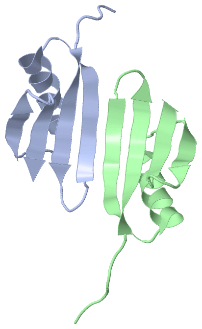 Asymmetric UnitChain A from PDB Type:PROTEIN Length:61 aligned with Q53291_FINMA | Q53291 from UniProtKB/TrEMBL Length:455 Alignment length:63 334 333 | 333 | 341 351 361 371 381 Q53291_FINMA 324 PEEPMDTYKL--ILNGKTLKGETTTEAVDAATAEKVFKQYANDNGVDGEWTYDDATKTFTVTE 384 SCOP domains d1mi0a_ A: SCOP domains CATH domains 1mi0A00 A:1-61 [cod e=3.10.20.10, no name defined] CATH domains Pfam domains --------------------------------------------------------------- Pfam domains SAPs(SNPs) --------------------------------------------------------------- SAPs(SNPs) PROSITE --------------------------------------------------------------- PROSITE Transcript --------------------------------------------------------------- Transcript 1mi0 A 1 HHHAMDTYKLVIVLNGTTFT--YTTEAVDAATAEKVFKQYANDNGVDGEWTYADATKTFTVTE 61 10 20 | 28 38 48 58 20 21 Chain B from PDB Type:PROTEIN Length:62 aligned with Q53291_FINMA | Q53291 from UniProtKB/TrEMBL Length:455 Alignment length:64 334 333 | 332| | 340 350 360 370 380 Q53291_FINMA 323 KPEEPMDTYKL--ILNGKTLKGETTTEAVDAATAEKVFKQYANDNGVDGEWTYDDATKTFTVTE 384 SCOP domains d1mi0b_ B: SCOP domains CATH domains 1mi0B00 B:1-62 [code =3.10.20.10, no name defined] CATH domains Pfam domains ---------------------------------------------------------------- Pfam domains SAPs(SNPs) ---------------------------------------------------------------- SAPs(SNPs) PROSITE ---------------------------------------------------------------- PROSITE Transcript ---------------------------------------------------------------- Transcript 1mi0 B 1 HHHHAMDTYKLVIVLNGTTFT--YTTEAVDAATAEKVFKQYANDNGVDGEWTYADATKTFTVTE 62 10 20| | 28 38 48 58 21 22