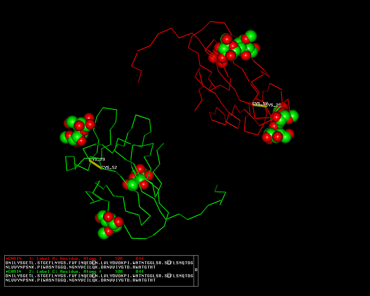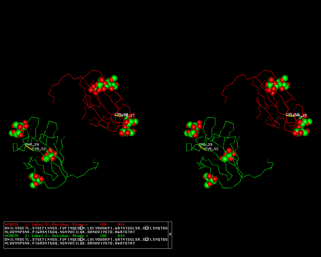 Asymmetric UnitChain A from PDB Type:PROTEIN Length:108 aligned with LEC_GALNI | P30617 from UniProtKB/Swiss-Prot Length:157 Alignment length:108 33 43 53 63 73 83 93 103 113 123 LEC_GALNI 24 DNILYSGETLSTGEFLNYGSFVFIMQEDCNLVLYDVDKPIWATNTGGLSRSCFLSMQTDGNLVVYNPSNKPIWASNTGGQNGNYVCILQKDRNVVIYGTDRWATGTHT 131 SCOP domains d1niva_ A: Lectin (agglutinin) SCOP domains CATH domains 1nivA00 A:1-108 Agglutinin, subunit A CATH domains Pfam domains ------------------------------------------------------------------------------------------------------------ Pfam domains SAPs(SNPs) --------------------------------------------------H-Y--------------------------------S---------------------- SAPs(SNPs) PROSITE BULB_LECTIN PDB: A:1-108 UniProt: 24-132 PROSITE Transcript ------------------------------------------------------------------------------------------------------------ Transcript 1niv A 1 DNILYSGETLSTGEFLNYGSFVFIMQEDCNLVLYDVDKPIWATNTGGLSRSCFLSMQTDGNLVVYNPSNKPIWASNTGGQNGNYVCILQKDRNVVIYGTDRWATGTHT 108 10 20 30 40 50 60 70 80 90 100 Chain C from PDB Type:PROTEIN Length:108 aligned with LEC_GALNI | P30617 from UniProtKB/Swiss-Prot Length:157 Alignment length:108 33 43 53 63 73 83 93 103 113 123 LEC_GALNI 24 DNILYSGETLSTGEFLNYGSFVFIMQEDCNLVLYDVDKPIWATNTGGLSRSCFLSMQTDGNLVVYNPSNKPIWASNTGGQNGNYVCILQKDRNVVIYGTDRWATGTHT 131 SCOP domains d1nivc_ C: Lectin (agglutinin) SCOP domains CATH domains 1nivC00 C:1-108 Agglutinin, subunit A CATH domains Pfam domains (1) -B_lectin-1nivC01 C:2-108 Pfam domains (1) Pfam domains (2) -B_lectin-1nivC02 C:2-108 Pfam domains (2) SAPs(SNPs) --------------------------------------------------H-Y--------------------------------S---------------------- SAPs(SNPs) PROSITE BULB_LECTIN PDB: C:1-108 UniProt: 24-132 PROSITE Transcript ------------------------------------------------------------------------------------------------------------ Transcript 1niv C 1 DNILYSGETLSTGEFLNYGSFVFIMQEDCNLVLYDVDKPIWATNTGGLSRSCFLSMQTDGNLVVYNPSNKPIWASNTGGQNGNYVCILQKDRNVVIYGTDRWATGTHT 108 10 20 30 40 50 60 70 80 90 100