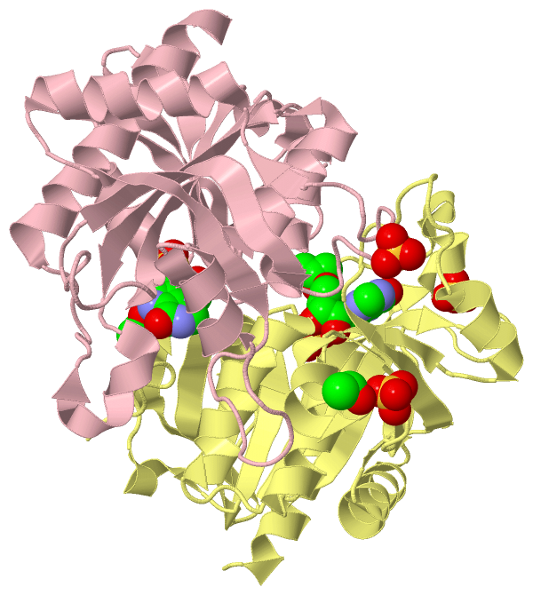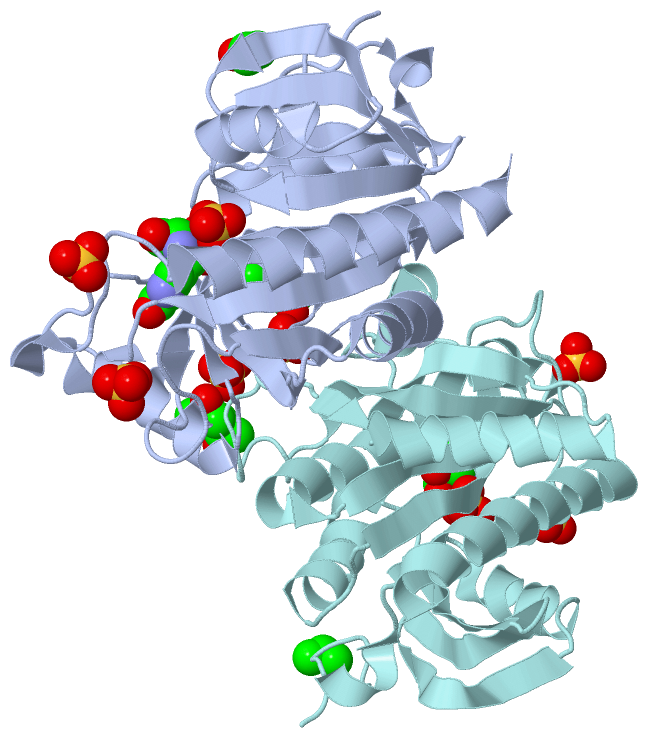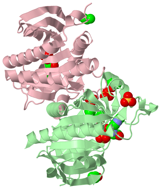 Asymmetric UnitChain A from PDB Type:PROTEIN Length:243 aligned with Q8I3X4_PLAF7 | Q8I3X4 from UniProtKB/TrEMBL Length:245 Alignment length:243 12 22 32 42 52 62 72 82 92 102 112 122 132 142 152 162 172 182 192 202 212 222 232 242 Q8I3X4_PLAF7 3 NLLRHLKISKEQITPVVLVVGDPGRVDKIKVVCDSYVDLAYNREYKSVECHYKGQKFLCVSHGVGSAGCAVCFEELCQNGAKVIIRAGSCGSLQPDLIKRGDICICNAAVREDRVSHLLIHGDFPAVGDFDVYDTLNKCAQELNVPVFNGISVSSDMYYPNKIIPSRLEDYSKANAAVVEMELATLMVIGTLRKVKTGGILIVDGCPFKWDEGDFDNNLVPHQLENMIKIALGACAKLATKYA 245 SCOP domains d1nw4a_ A: Putative uridine phosphorylase SCOP domains CATH domains 1nw4A00 A:3-245 [code=3.40.50.1580, no name defined] CATH domains Pfam domains --------------------------------------------------------------------------------------------------------------------------------------------------------------------------------------------------------------------------------------------------- Pfam domains SAPs(SNPs) --------------------------------------------------------------------------------------------------------------------------------------------------------------------------------------------------------------------------------------------------- SAPs(SNPs) PROSITE --------------------------------------------------------------------------------------------------------------------------------------------------------------------------------------------------------------------------------------------------- PROSITE Transcript --------------------------------------------------------------------------------------------------------------------------------------------------------------------------------------------------------------------------------------------------- Transcript 1nw4 A 3 NLLRHLKISKEQITPVVLVVGDPGRVDKIKVVCDSYVDLAYNREYKSVECHYKGQKFLCVSHGVGSAGCAVCFEELCQNGAKVIIRAGSCGSLQPDLIKRGDICICNAAVREDRVSHLLIHGDFPAVGDFDVYDTLNKCAQELNVPVFNGISVSSDMYYPNKIIPSRLEDYSKANAAVVEMELATLMVIGTLRKVKTGGILIVDGCPFKWDEGDFDNNLVPHQLENMIKIALGACAKLATKYA 245 12 22 32 42 52 62 72 82 92 102 112 122 132 142 152 162 172 182 192 202 212 222 232 242 Chain B from PDB Type:PROTEIN Length:243 aligned with Q8I3X4_PLAF7 | Q8I3X4 from UniProtKB/TrEMBL Length:245 Alignment length:243 12 22 32 42 52 62 72 82 92 102 112 122 132 142 152 162 172 182 192 202 212 222 232 242 Q8I3X4_PLAF7 3 NLLRHLKISKEQITPVVLVVGDPGRVDKIKVVCDSYVDLAYNREYKSVECHYKGQKFLCVSHGVGSAGCAVCFEELCQNGAKVIIRAGSCGSLQPDLIKRGDICICNAAVREDRVSHLLIHGDFPAVGDFDVYDTLNKCAQELNVPVFNGISVSSDMYYPNKIIPSRLEDYSKANAAVVEMELATLMVIGTLRKVKTGGILIVDGCPFKWDEGDFDNNLVPHQLENMIKIALGACAKLATKYA 245 SCOP domains d1nw4b_ B: Putative uridine phosphorylase SCOP domains CATH domains 1nw4B00 B:3-245 [code=3.40.50.1580, no name defined] CATH domains Pfam domains --------------------------------------------------------------------------------------------------------------------------------------------------------------------------------------------------------------------------------------------------- Pfam domains SAPs(SNPs) --------------------------------------------------------------------------------------------------------------------------------------------------------------------------------------------------------------------------------------------------- SAPs(SNPs) PROSITE --------------------------------------------------------------------------------------------------------------------------------------------------------------------------------------------------------------------------------------------------- PROSITE Transcript --------------------------------------------------------------------------------------------------------------------------------------------------------------------------------------------------------------------------------------------------- Transcript 1nw4 B 3 NLLRHLKISKEQITPVVLVVGDPGRVDKIKVVCDSYVDLAYNREYKSVECHYKGQKFLCVSHGVGSAGCAVCFEELCQNGAKVIIRAGSCGSLQPDLIKRGDICICNAAVREDRVSHLLIHGDFPAVGDFDVYDTLNKCAQELNVPVFNGISVSSDMYYPNKIIPSRLEDYSKANAAVVEMELATLMVIGTLRKVKTGGILIVDGCPFKWDEGDFDNNLVPHQLENMIKIALGACAKLATKYA 245 12 22 32 42 52 62 72 82 92 102 112 122 132 142 152 162 172 182 192 202 212 222 232 242 Chain C from PDB Type:PROTEIN Length:243 aligned with Q8I3X4_PLAF7 | Q8I3X4 from UniProtKB/TrEMBL Length:245 Alignment length:243 12 22 32 42 52 62 72 82 92 102 112 122 132 142 152 162 172 182 192 202 212 222 232 242 Q8I3X4_PLAF7 3 NLLRHLKISKEQITPVVLVVGDPGRVDKIKVVCDSYVDLAYNREYKSVECHYKGQKFLCVSHGVGSAGCAVCFEELCQNGAKVIIRAGSCGSLQPDLIKRGDICICNAAVREDRVSHLLIHGDFPAVGDFDVYDTLNKCAQELNVPVFNGISVSSDMYYPNKIIPSRLEDYSKANAAVVEMELATLMVIGTLRKVKTGGILIVDGCPFKWDEGDFDNNLVPHQLENMIKIALGACAKLATKYA 245 SCOP domains d1nw4c_ C: Putative uridine phosphorylase SCOP domains CATH domains 1nw4C00 C:3-245 [code=3.40.50.1580, no name defined] CATH domains Pfam domains --------------------------------------------------------------------------------------------------------------------------------------------------------------------------------------------------------------------------------------------------- Pfam domains SAPs(SNPs) --------------------------------------------------------------------------------------------------------------------------------------------------------------------------------------------------------------------------------------------------- SAPs(SNPs) PROSITE --------------------------------------------------------------------------------------------------------------------------------------------------------------------------------------------------------------------------------------------------- PROSITE Transcript --------------------------------------------------------------------------------------------------------------------------------------------------------------------------------------------------------------------------------------------------- Transcript 1nw4 C 3 NLLRHLKISKEQITPVVLVVGDPGRVDKIKVVCDSYVDLAYNREYKSVECHYKGQKFLCVSHGVGSAGCAVCFEELCQNGAKVIIRAGSCGSLQPDLIKRGDICICNAAVREDRVSHLLIHGDFPAVGDFDVYDTLNKCAQELNVPVFNGISVSSDMYYPNKIIPSRLEDYSKANAAVVEMELATLMVIGTLRKVKTGGILIVDGCPFKWDEGDFDNNLVP