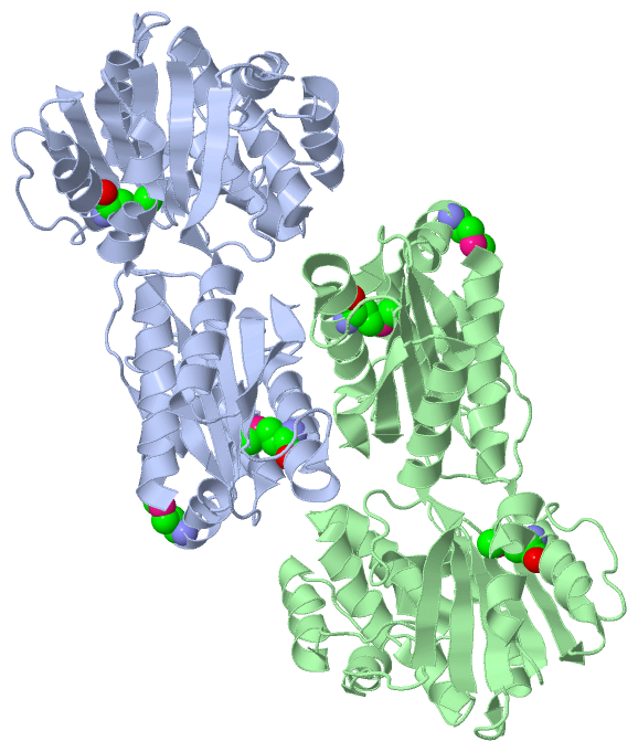 Asymmetric UnitChain A from PDB Type:PROTEIN Length:414 aligned with GCK_THEMA | Q9X1S1 from UniProtKB/Swiss-Prot Length:417 Alignment length:414 13 23 33 43 53 63 73 83 93 103 113 123 133 143 153 163 173 183 193 203 213 223 233 243 253 263 273 283 293 303 313 323 333 343 353 363 373 383 393 403 413 GCK_THEMA 4 PESLKKLAIEIVKKSIEAVFPDRAVKETLPKLNLDRVILVAVGKAAWRMAKAAYEVLGKKIRKGVVVTKYGHSEGPIDDFEIYEAGHPVPDENTIKTTRRVLELVDQLNENDTVLFLLSGGGSSLFELPLEGVSLEEIQKLTSALLKSGASIEEINTVRKHLSQVKGGRFAERVFPAKVVALVLSDVLGDRLDVIASGPAWPDSSTSEDALKVLEKYGIETSESVKRAILQETPKHLSNVEIHLIGNVQKVCDEAKSLAKEKGFNAEIITTSLDCEAREAGRFIASIMKEVKFKDRPLKKPAALIFGGETVVHVKGNGIGGRNQELALSAAIALEGIEGVILCSAGTDGTDGPTDAAGGIVDGSTAKTLKAMGEDPYQYLKNNDSYNALKKSGALLITGPTGTNVNDLIIGLIV 417 SCOP domains d2b8na_ A: Putative glycerate kinase (hypothetical protein TM1585) SCOP domains CATH domains 2b8nA01 2b8nA02 A:23-249 [code=3.40.50.10180, no name defined] 2b8nA01 A:4-22,A:250-417 Glycerate kinase like, domain 1 CATH domains Pfam domains ------------------------------------------------------------------------------------------------------------------------------------------------------------------------------------------------------------------------------------------------------------------------------------------------------------------------------------------------------------------------------------------------------------------------------ Pfam domains SAPs(SNPs) ------------------------------------------------------------------------------------------------------------------------------------------------------------------------------------------------------------------------------------------------------------------------------------------------------------------------------------------------------------------------------------------------------------------------------ SAPs(SNPs) PROSITE ------------------------------------------------------------------------------------------------------------------------------------------------------------------------------------------------------------------------------------------------------------------------------------------------------------------------------------------------------------------------------------------------------------------------------ PROSITE Transcript ------------------------------------------------------------------------------------------------------------------------------------------------------------------------------------------------------------------------------------------------------------------------------------------------------------------------------------------------------------------------------------------------------------------------------ Transcript 2b8n A 4 PESLKKLAIEIVKKSIEAVFPDRAVKETLPKLNLDRVILVAVGKAAWRmAKAAYEVLGKKIRKGVVVTKYGHSEGPIDDFEIYEAGHPVPDENTIKTTRRVLELVDQLNENDTVLFLLSGGGSSLFELPLEGVSLEEIQKLTSALLKSGASIEEINTVRKHLSQVKGGRFAERVFPAKVVALVLSDVLGDRLDVIASGPAWPDSSTSEDALKVLEKYGIETSESVKRAILQETPKHLSNVEIHLIGNVQKVCDEAKSLAKEKGFNAEIITTSLDCEAREAGRFIASImKEVKFKDRPLKKPAALIFGGETVVHVKGNGIGGRNQELALSAAIALEGIEGVILCSAGTDGTDGPTDAAGGIVDGSTAKTLKAmGEDPYQYLKNNDSYNALKKSGALLITGPTGTNVNDLIIGLIV 417 13 23 33 43 53 63 73 83 93 103 113 123 133 143 153 163 173 183 193 203 213 223 233 243 253 263 273 283 293 303 313 323 333 343 353 363 373 | 383 393 403 413 52-MSE 291-MSE 375-MSE Chain B from PDB Type:PROTEIN Length:414 aligned with GCK_THEMA | Q9X1S1 from UniProtKB/Swiss-Prot Length:417 Alignment length:414 13 23 33 43 53 63 73 83 93 103 113 123 133 143 153 163 173 183 193 203 213 223 233 243 253 263 273 283 293 303 313 323 333 343 353 363 373 383 393 403 413 GCK_THEMA 4 PESLKKLAIEIVKKSIEAVFPDRAVKETLPKLNLDRVILVAVGKAAWRMAKAAYEVLGKKIRKGVVVTKYGHSEGPIDDFEIYEAGHPVPDENTIKTTRRVLELVDQLNENDTVLFLLSGGGSSLFELPLEGVSLEEIQKLTSALLKSGASIEEINTVRKHLSQVKGGRFAERVFPAKVVALVLSDVLGDRLDVIASGPAWPDSSTSEDALKVLEKYGIETSESVKRAILQETPKHLSNVEIHLIGNVQKVCDEAKSLAKEKGFNAEIITTSLDCEAREAGRFIASIMKEVKFKDRPLKKPAALIFGGETVVHVKGNGIGGRNQELALSAAIALEGIEGVILCSAGTDGTDGPTDAAGGIVDGSTAKTLKAMGEDPYQYLKNNDSYNALKKSGALLITGPTGTNVNDLIIGLIV 417 SCOP domains d2b8nb_ B: Putative glycerate kinase (hypothetical protein TM1585) SCOP domains CATH domains 2b8nB01 2b8nB02 B:23-249 [code=3.40.50.10180, no name defined] 2b8nB01 B:4-22,B:250-417 Glycerate kinase like, domain 1 CATH domains Pfam domains ------------------------------------------------------------------------------------------------------------------------------------------------------------------------------------------------------------------------------------------------------------------------------------------------------------------------------------------------------------------------------------------------------------------------------ Pfam domains SAPs(SNPs) ------------------------------------------------------------------------------------------------------------------------------------------------------------------------------------------------------------------------------------------------------------------------------------------------------------------------------------------------------------------------------------------------------------------------------ SAPs(SNPs) PROSITE ------------------------------------------------------------------------------------------------------------------------------------------------------------------------------------------------------------------------------------------------------------------------------------------------------------------------------------------------------------------------------------------------------------------------------ PROSITE Transcript ---------------------------------------------------------------------------------------------------------------------------------------------------------------------------------------------------------------------------------------------------------------------------------------------------------------------------------------------------------------------------------------------------------------