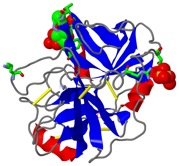 Asymmetric/Biological UnitChain A from PDB Type:PROTEIN Length:234 aligned with VSPP_DEIAC | Q9I8X1 from UniProtKB/Swiss-Prot Length:258 Alignment length:234 34 44 54 64 74 84 94 104 114 124 134 144 154 164 174 184 194 204 214 224 234 244 254 VSPP_DEIAC 25 VIGGNECDINEHRFLVAFFNTTGFFCGGTLINPEWVVTAAHCDSTDFQMQLGVHSKKVLNEDEQTRNPKEKFICPNKNNNEVLDKDIMLIKLDKPISNSKHIAPLSLPSSPPSVGSVCRIMGWGSITPVKETFPDVPYCANINLLDHAVCQAGYPELLAEYRTLCAGIVQGGKDTCGGDSGGPLICNGQFQGIVSYGAHPCGQGPKPGIYTNVFDYTDWIQRNIAGNTDATCPP 258 SCOP domains d1op2a_ A: Venom serine protease SCOP domains CATH domains 1op2A01 1op2A02 A:28-120,A:233-245 Trypsin-like serine proteases 1op2A01 A:16-27,A:121-232 Trypsin-like serine proteases 1op2A02 ------- CATH domains Pfam domains ------------------------------------------------------------------------------------------------------------------------------------------------------------------------------------------------------------------------------------------ Pfam domains SAPs(SNPs) ---------------------------------------------N-------------------------------------------------------------------------------------------------------------------------------------------------------------------------------------------- SAPs(SNPs) PROSITE (1) TRYPSIN_DOM PDB: A:16-243 UniProt: 25-249 --------- PROSITE (1) PROSITE (2) ------------------------------------TRYPSI-----------------------------------------------------------------------------------------------------------------------------------TRYPSIN_SER ------------------------------------------------- PROSITE (2) Transcript ------------------------------------------------------------------------------------------------------------------------------------------------------------------------------------------------------------------------------------------ Transcript 1op2 A 16 VIGGNECDINEHRFLVAFFNTTGFFCGGTLINPEWVVTAAHCDSTNFQMQLGVHSKKVLNEDEQTRNPKEKFICPNKNNNEVLDKDIMLIKLDKPISNSKHIAPLSLPSSPPSVGSVCRIMGWGSITPVKETFPDVPYCANINLLDHAVCQAGYPELLAEYRTLCAGIVQGGKDTCGGDSGGPLICNGQFQGIVSYGAHPCGQGPKPGIYTNVFDYTDWIQRNIAGNTDATCPP 245G 25 35|| 46 56 || 67 77 87 96 106 116 127 || 138 148 158 168 | 177 186A| 195 |209 219 | 228 238 245C|||| 36| 60| 95A 125| || 172A 186A| 202| 221A 245A|||||| 38 62 127 || 186B 207 245B||||| 129| 245C|||| 131 245D||| 245E|| 245F| 245G