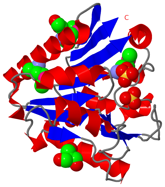 Asymmetric/Biological UnitChain A from PDB Type:PROTEIN Length:220 aligned with 6PGL_THEMA | Q9X0N8 from UniProtKB/Swiss-Prot Length:220 Alignment length:220 10 20 30 40 50 60 70 80 90 100 110 120 130 140 150 160 170 180 190 200 210 220 6PGL_THEMA 1 MEKTVIYLLEDGYVDFVVEKIRTKMEKLLEEKDKIFVVLAGGRTPLPVYEKLAEQKFPWNRIHFFLSDERYVPLDSDQSNFRNINEVLFSRAKIPSGNVHYVDTSLPIEKACEKYEREIRSATDQFDLAILGMGPDGHVASIFDLETGNKDNLVTFTDPSGDPKVPRVTLTFRALNTSLYVLFLIRGKEKINRLTEILKDTPLPAYFVRGKEKTVWFVGK 220 SCOP domains d1pbta_ A: 6-phosphogluconolactonase SCOP domains CATH domains -1pbtA00 A:2-220 [code=3.40.50.1360, no name defined] CATH domains Pfam domains ------------Glucosamine_iso-1pbtA01 A:13-199 --------------------- Pfam domains SAPs(SNPs) ---------------------------------------------------------------------------------------------------------------------------------------------------------------------------------------------------------------------------- SAPs(SNPs) PROSITE ---------------------------------------------------------------------------------------------------------------------------------------------------------------------------------------------------------------------------- PROSITE Transcript ---------------------------------------------------------------------------------------------------------------------------------------------------------------------------------------------------------------------------- Transcript 1pbt A 1 mEKTVIYLLEDGYVDFVVEKIRTKmEKLLEEKDKIFVVLAGGRTPLPVYEKLAEQKFPWNRIHFFLSDERYVPLDSDQSNFRNINEVLFSRAKIPSGNVHYVDTSLPIEKACEKYEREIRSATDQFDLAILGmGPDGHVASIFDLETGNKDNLVTFTDPSGDPKVPRVTLTFRALNTSLYVLFLIRGKEKINRLTEILKDTPLPAYFVRGKEKTVWFVGK 220 | 10 20 | 30 40 50 60 70 80 90 100 110 120 130 | 140 150 160 170 180 190 200 210 220 | 25-MSE 133-MSE 1-MSE