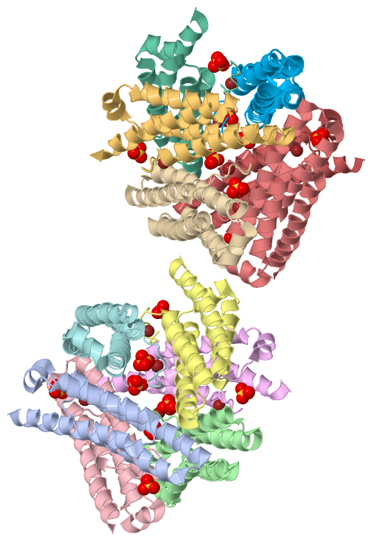 Ligands, Modified Residues, Ions (2, 28)| Asymmetric Unit (2, 28) Biological Unit 1 (2, 14) Biological Unit 2 (2, 14) |