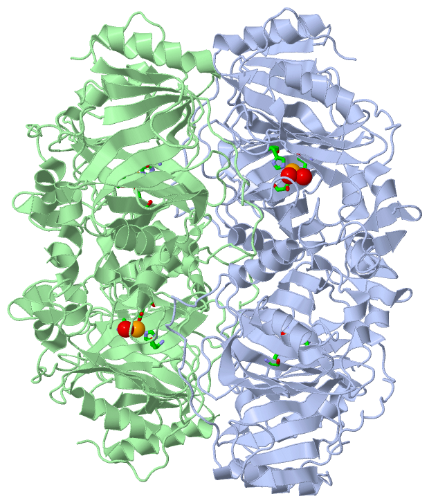 SCOP domains d1q0ob1 B:4-147 Homoprotocatechuate 2,3-dioxygenase d1q0ob2 B:148-359 Homoprotocatechuate 2,3-dioxygenase SCOP domains