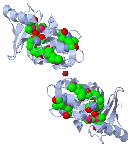 Asymmetric UnitChain A from PDB Type:PROTEIN Length:151 aligned with Q9HIB8_THEAC | Q9HIB8 from UniProtKB/TrEMBL Length:153 Alignment length:151 12 22 32 42 52 62 72 82 92 102 112 122 132 142 152 Q9HIB8_THEAC 3 SKHFISKKEAKRIWEAMARYGIDITGESLEVAAQKSASAYYIGGKPMVFQAGDLIPSVYLLNYRNPSRNIVTVDEGAEPHILNGSDLFAPGIVSMDDSIRKGDMIFVKSSKGYFIAVGMAEMDAGEVMATKRGKAARIIHFPGDELIRAFP 153 SCOP domains d1q7ha2 A:3-68 Hypothetical protein Ta1423, N-terminal domain d1q7ha1 A:69-153 Hypothetical protein Ta1423, C-terminal domain SCOP domains CATH domains 1q7hA01 A:3-67 Pre-PUA domain; domain 1 1q7hA02 A:68-153 [code=2.30.130.10, no name defined] CATH domains Pfam domains DUF1947-1q7hA02 A:3-67 ---PUA-1q7hA01 A:71-144 --------- Pfam domains SAPs(SNPs) ------------------------------------------------------------------------------------------------------------------------------------------------------- SAPs(SNPs) PROSITE ------------------------------------------------------------------------------------------------------------------------------------------------------- PROSITE Transcript ------------------------------------------------------------------------------------------------------------------------------------------------------- Transcript 1q7h A 3 SKHFISKKEAKRIWEQmSRYGIDITGESLEVAAQKSASAYYIGGKPmVFQAGDLIPSVYLLNYRNPSRNIVTVDEGAEPHILNGSDLFAPGIVSmDDSIRKGDmIFVKSSKGYFIAVGmAEmDAGEVmATKRGKAARIIHFPGDELIRAFP 153 12 | 22 32 42 | 52 62 72 82 92 | 102 | 112 122 | 132 142 152 19-MSE 49-MSE 97-MSE 106-MSE 121-MSE | 124-MSE | 130-MSE