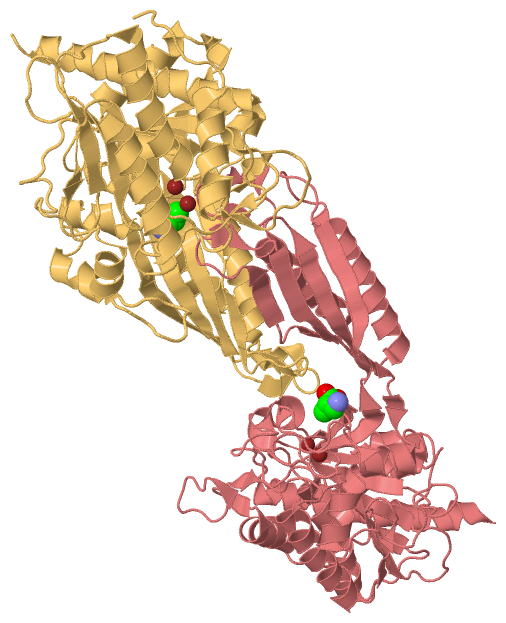 Asymmetric UnitChain A from PDB Type:PROTEIN Length:438 aligned with Q96W94_LACKL | Q96W94 from UniProtKB/TrEMBL Length:455 Alignment length:438 27 37 47 57 67 77 87 97 107 117 127 137 147 157 167 177 187 197 207 217 227 237 247 257 267 277 287 297 307 317 327 337 347 357 367 377 387 397 407 417 427 437 447 Q96W94_LACKL 18 GTLNLPAAAPLSIASGRLNQTILETGSQFGGVARWGQESHEFGMRRLAGTALDGAMRDWFTNECESLGCKVKVDKIGNMFAVYPGKNGGKPTATGSHLDTQPEAGKYDGILGVLAGLEVLRTFKDNNYVPNYDVCVVVWFNEEGARFARSCTGSSVWSHDLSLEEAYGLMSVGEDKPESVYDSLKNIGYIGDTPASYKENEIDAHFELHIEQGPILEDENKAIGIVTGVQAYNWQKVTVHGVGAHAGTTPWRLRKDALLMSSKMIVAASEIAQRHNGLFTCGIIDAKPYSVNIIPGEVSFTLDFRHPSDDVLATMLKEAAAEFDRLIKINDGGALSYESETLQVSPAVNFHEVCIECVSRSAFAQFKKDQVRQIWSGAGHDSCQTAPHVPTSMIFIPSKDGLSHNYYEYSSPEEIENGFKVLLQAIINYDNYRVIRGH 455 SCOP domains d1r3na1 A:18-247,A:364-455 Peptidase-like beta-alanine synthase, catalytic domain d1r3na2 A:248-363 Peptidase-like beta-alanine synthase d1r3na1 A:18-247,A:364-455 Peptidase-like beta-alanine synthase, catalytic domain SCOP domains CATH domains 1r3nA01 A:18-247,A:364-455 Zn peptidases 1r3nA02 A:248-363 [code=3.30.70.360, no name defined] 1r3nA01 A:18-247,A:364-455 Zn peptidases CATH domains Pfam domains ------------------------------------------------------------------------------------------------------------------------------------------------------------------------------------------------------------------------------------------------------------------------------------------------------------------------------------------------------------------------------------------------------------------------------------------------------ Pfam domains SAPs(SNPs) ------------------------------------------------------------------------------------------------------------------------------------------------------------------------------------------------------------------------------------------------------------------------------------------------------------------------------------------------------------------------------------------------------------------------------------------------------ SAPs(SNPs) PROSITE ------------------------------------------------------------------------------------------------------------------------------------------------------------------------------------------------------------------------------------------------------------------------------------------------------------------------------------------------------------------------------------------------------------------------------------------------------ PROSITE Transcript ------------------------------------------------------------------------------------------------------------------------------------------------------------------------------------------------------------------------------------------------------------------------------------------------------------------------------------------------------------------------------------------------------------------------------------------------------ Transcript 1r3n A 18 GTLNLPAAAPLSIASGRLNQTILETGSQFGGVARWGQESHEFGMRRLAGTALDGAMRDWFTNECESLGCKVKVDKIGNMFAVYPGKNGGKPTATGSHLDTQPEAGKYDGILGVLAGLEVLRTFKDNNYVPNYDVCVVVWFNEEGARFARSCTGSSVWSHDLSLEEAYGLMSVGEDKPESVYDSLKNIGYIGDTPASYKENEIDAHFELHIEQGPILEDENKAIGIVTGVQAYNWQKVTVHGVGAHAGTTPWRLRKDALLMSSKMIVAASEIAQRHNGLFTCGIIDAKPYSVNIIPGEVSFTLDFRHPSDDVLATMLKEAAAEFDRLIKINDGGALSYESETLQVSPAVNFHEVCIECVSRSAFAQFKKDQVRQIWSGAGHDSCQTAPHVPTSMIFIPSKDGLSHNYYEYSSPEEIENGFKVLLQAIINYDNYRVIRGH 455 27 37 47 57 67 77 87 97 107 117 127 137 147 157 167 177 187 197 207 217 227 237 247 257 267 277 287 297 307 317 327 337 347 357 367 377 387 397 407 417 427 437 447 Chain B from PDB Type:PROTEIN Length:433 aligned with Q96W94_LACKL | Q96W94 from UniProtKB/TrEMBL Length:455 Alignment length:433 32 42 52 62 72 82 92 102 112 122 132 142 152 162 172 182 192 202 212 222 232 242 252 262 272 282 292 302 312 322 332 342 352 362 372 382 392 402 412 422 432 442 452 Q96W94_LACKL 23 PAAAPLSIASGRLNQTILETGSQFGGVARWGQESHEFGMRRLAGTALDGAMRDWFTNECESLGCKVKVDKIGNMFAVYPGKNGGKPTATGSHLDTQPEAGKYDGILGVLAGLEVLRTFKDNNYVPNYDVCVVVWFNEEGARFARSCTGSSVWSHDLSLEEAYGLMSVGEDKPESVYDSLKNIGYIGDTPASYKENEIDAHFELHIEQGPILEDENKAIGIVTGVQAYNWQKVTVHGVGAHAGTTPWRLRKDALLMSSKMIVAASEIAQRHNGLFTCGIIDAKPYSVNIIPGEVSFTLDFRHPSDDVLATMLKEAAAEFDRLIKINDGGALSYESETLQVSPAVNFHEVCIECVSRSAFAQFKKDQVRQIWSGAGHDSCQTAPHVPTSMIFIPSKDGLSHNYYEYSSPEEIENGFKVLLQAIINYDNYRVIRGH 455 SCOP domains d1r3nb1 B:23-247,B:364-455 Peptidase-like beta-alanine synthase, catalytic domain d1r3nb2 B:248-363 Peptidase-like beta-alanine synthase d1r3nb1 B:23-247,B:364-455 Peptidase-like beta-alanine synthase, catalytic domain SCOP domains CATH domains 1r3nB01 B:23-247,B:364-455 Zn peptidases 1r3nB02 B:248-363 [code=3.30.70.360, no name defined] 1r3nB01 B:23-247,B:364-455 Zn peptidases CATH domains Pfam domains ------------------------------------------------------------------------------------------------------------------------------------------------------------------------------------------------------------------------------------------------------------------------------------------------------------------------------------------------------------------------------------------------------------------------------------------------- Pfam domains SAPs(SNPs) ------------------------------------------------------------------------------------------------------------------------------------------------------------------------------------------------------------------------------------------------------------------------------------------------------------------------------------------------------------------------------------------------------------------------------------------------- SAPs(SNPs) PROSITE ----------------------------------------------------------------------------------------------------------------------------------------------------------------------------------------------------------------------------------------------------------------------------------------------