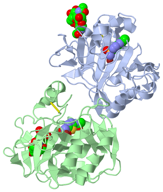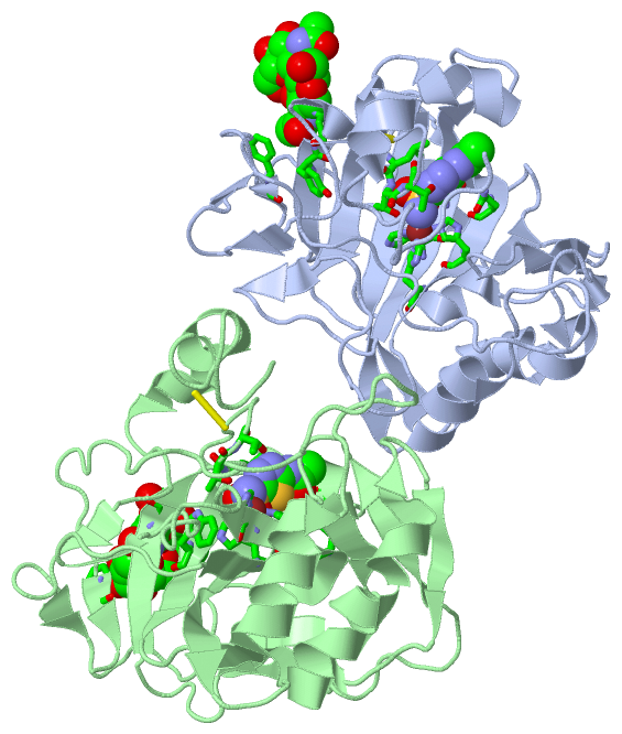 Asymmetric UnitChain A from PDB Type:PROTEIN Length:259 aligned with CAH14_MOUSE | Q9WVT6 from UniProtKB/Swiss-Prot Length:337 Alignment length:259 29 39 49 59 69 79 89 99 109 119 129 139 149 159 169 179 189 199 209 219 229 239 249 259 269 CAH14_MOUSE 20 HHWTYEGPHGQDHWPTSYPECGGDAQSPINIQTDSVIFDPDLPAVQPHGYDQLGTEPLDLHNNGHTVQLSLPPTLHLGGLPRKYTAAQLHLHWGQRGSLEGSEHQINSEATAAELHVVHYDSQSYSSLSEAAQKPQGLAVLGILIEVGETENPAYDHILSRLHEIRYKDQKTSVPPFSVRELFPQQLEQFFRYNGSLTTPPCYQSVLWTVFNRRAQISMGQLEKLQETLSSTEEDPSEPLVQNYRVPQPLNQRTIFASF 278 SCOP domains d1rj6a_ A: Carbonic anhydrase SCOP domains CATH domains 1rj6A00 A:3-260 Carbonic Anhydrase II CATH domains Pfam domains ------------------------------------------------------------------------------------------------------------------------------------------------------------------------------------------------------------------------------------------------------------------- Pfam domains SAPs(SNPs) ------------------------------------------------------------------------------------------------------------------------------------------------------------------------------------------------------------------------------------------------------------------- SAPs(SNPs) PROSITE ALPHA_CA_2 PDB: A:3-260 UniProt: 20-278 PROSITE Transcript ------------------------------------------------------------------------------------------------------------------------------------------------------------------------------------------------------------------------------------------------------------------- Transcript 1rj6 A 3 HHWTYEGPHGQDHWPTSYPECGGDAQSPINIQTDSVIFDPDLPAVQPHGYDQLGTEPLDLHNNGHTVQLSLPPTLHLGGLPRKYTAAQLHLHWGQRGSLEGSEHHINSEATAAELHVVHYDSQSYSSLSEAAQKPQGLAVLGILIEVGETENPAYDHILSRLHEIRYKDQKTSVPPFSVRELFPQQLEQFFRYNGSLTTPPCYQSVLWTVFNRRAQISMGQLEKLQETLSSTEEDPSEPLVQNYRVPQPLNQRTIFASF 260 12 22 32 42 51 || 59 69 || 84 94 103 113 123 133 143 152 162 172 182 191 201 211 221 230 || 241 251 50A 54A| 72| 81| 102A 151A 190A 228A 234| 54B 76 84 236 Chain B from PDB Type:PROTEIN Length:257 aligned with CAH14_MOUSE | Q9WVT6 from UniProtKB/Swiss-Prot Length:337 Alignment length:257 31 41 51 61 71 81 91 101 111 121 131 141 151 161 171 181 191 201 211 221 231 241 251 261 271 CAH14_MOUSE 22 WTYEGPHGQDHWPTSYPECGGDAQSPINIQTDSVIFDPDLPAVQPHGYDQLGTEPLDLHNNGHTVQLSLPPTLHLGGLPRKYTAAQLHLHWGQRGSLEGSEHQINSEATAAELHVVHYDSQSYSSLSEAAQKPQGLAVLGILIEVGETENPAYDHILSRLHEIRYKDQKTSVPPFSVRELFPQQLEQFFRYNGSLTTPPCYQSVLWTVFNRRAQISMGQLEKLQETLSSTEEDPSEPLVQNYRVPQPLNQRTIFASF 278 SCOP domains d1rj6b_ B: Carbonic anhydrase SCOP domains CATH domains 1rj6B00 B:5-260 Carbonic Anhydrase II CATH domains Pfam domains ----------------------------------------------------------------------------------------------------------------------------------------------------------------------------------------------------------------------------------------------------------------- Pfam domains SAPs(SNPs) ----------------------------------------------------------------------------------------------------------------------------------------------------------------------------------------------------------------------------------------------------------------- SAPs(SNPs) PROSITE ALPHA_CA_2 PDB: - UniProt: 20-278 PROSITE Transcript ----------------------------------------------------------------------------------------------------------------------------------------------------------------------------------------------------------------------------------------------------------------- Transcript 1rj6 B 5 WTYEGPHGQDHWPTSYPECGGDAQSPINIQTDSVIFDPDLPAVQPHGYDQLGTEPLDLHNNGHTVQLSLPPTLHLGGLPRKYTAAQLHLHWGQRGSLEGSEHHINSEATAAELHVVHYDSQSYSSLSEAAQKPQGLAVLGILIEVGETENPAYDHILSRLHEIRYKDQKTSVPPFSVRELFPQQLEQFFRYNGSLTTPPCYQSVLWTVFNRRAQISMGQLEKLQETLSSTEEDPSEPLVQNYRVPQPLNQRTIFASF 260 14 24 34 44 | 53 || 61 71|| ||86 96 |105 115 125 135 145 |154 164 174 184 |193 203 213 223 | 232 || 243 253 50A 54A| 72| 81| 102A 151A 190A 228A 234| 54B 76 84 236