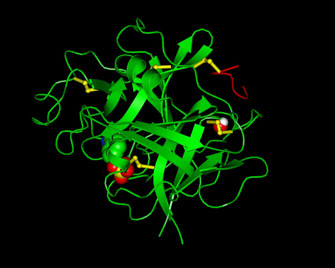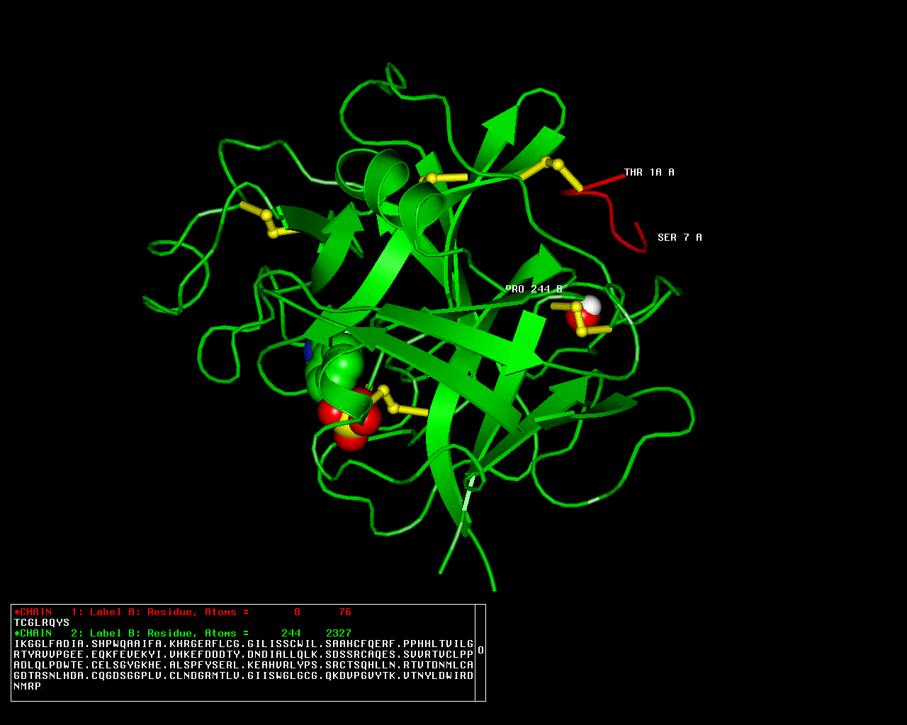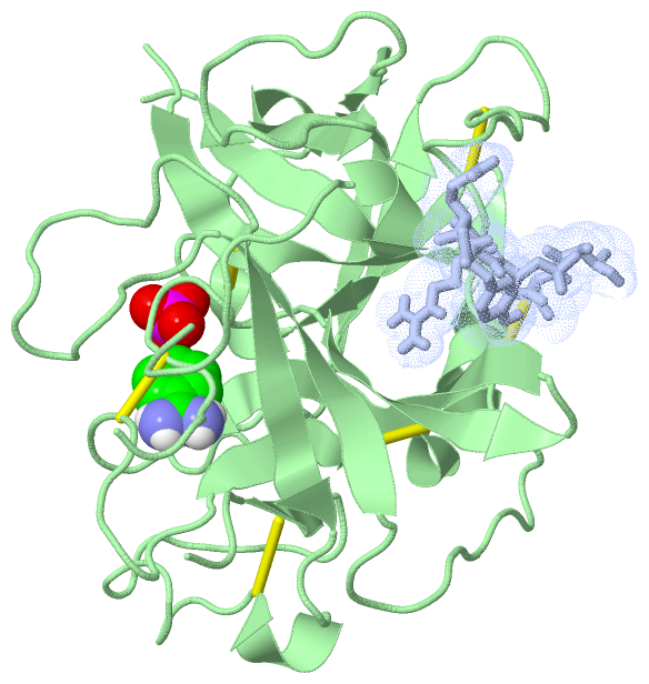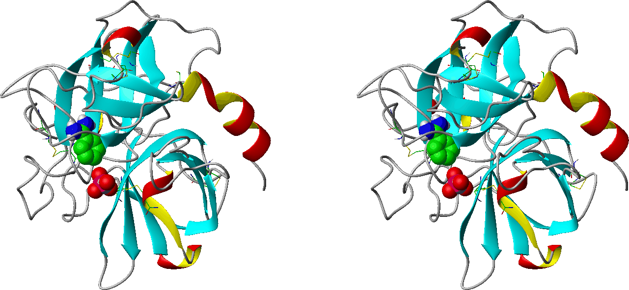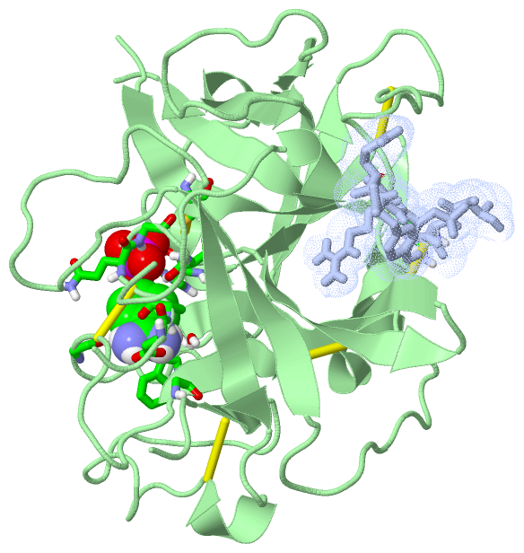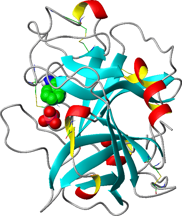 | | GO:0008236 | | serine-type peptidase activity | | Catalysis of the hydrolysis of peptide bonds in a polypeptide chain by a catalytic mechanism that involves a catalytic triad consisting of a serine nucleophile that is activated by a proton relay involving an acidic residue (e.g. aspartate or glutamate) and a basic residue (usually histidine). |