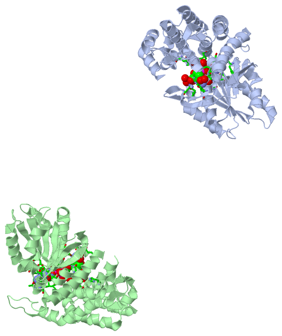 Asymmetric UnitChain A from PDB Type:PROTEIN Length:377 aligned with ARO1_EMENI | P07547 from UniProtKB/Swiss-Prot Length:1583 Alignment length:389 13 23 33 43 53 63 73 83 93 103 113 123 133 143 153 163 173 183 193 203 213 223 233 243 253 263 273 283 293 303 313 323 333 343 353 363 373 383 ARO1_EMENI 4 PTKISILGRESIIADFGLWRNYVAKDLISDCSSTTYVLVTDTNIGSIYTPSFEEAFRKAAAEITPSPRLLIYNAPPGEVSKSRQTKADIEDWMLSQNPPCGRDTVVIALGGGVIGDLTGFVASTYMRGVRYVQVPTTLLAMVDSSIGGKTAIDTPLGKNLIGAIWQPTKIYIDLEFLETLPVREFINGMAEVIKTAAISSEEEFTALEENAETILKAVRREVRPGEHRFEGIEEILKARILASARHKAYVVSADEREGGLRNLLNWGHSIGHAIEAILTPQILHGECVAIGMVKEAELARHLGILKGVAVSRIVKCLAAYGLPTSLKDARIRKLTAGKHCSVDQLMFNMALDKKNDGPKKKIVLLSAIGTPYETRASVVANEDIRVVLA 392 SCOP domains d1sg6a_ A: Dehydroquinate synthase, DHQS SCOP domains CATH domains 1sg6A01 A:4-182 [code=3.40.50.1970, no name defined] 1sg6A02 A:183-391 Dehydroquinate synthase-like - alpha domain - CATH domains Pfam domains ----------------------------------------------------------------------------------------------------------------------------------------------------------------------------------------------------------------------------------------------------------------------------------------------------------------------------------------------------------------------------------------------------- Pfam domains SAPs(SNPs) ----------------------------------------------------------------------------------------------------------------------------------------------------------------------------------------------------------------------------------------------------------------------------------------------------------------------------------------------------------------------------------------------------- SAPs(SNPs) PROSITE ----------------------------------------------------------------------------------------------------------------------------------------------------------------------------------------------------------------------------------------------------------------------------------------------------------------------------------------------------------------------------------------------------- PROSITE Transcript ----------------------------------------------------------------------------------------------------------------------------------------------------------------------------------------------------------------------------------------------------------------------------------------------------------------------------------------------------------------------------------------------------- Transcript 1sg6 A 4 PTKISILGRESIIADFGLWRNYVAKDLISDCSSTTYVLVTDTNIGSIYTPSFEEAFRKRAAEITPSPRLLIYNRPPGEVSKSRQTKADIEDWMLSQNPPCGRDTVVIALGGGVIGDLTGFVASTYMRGVRYVQVPTTLLAMVDSSIGGKTAIDTPLGKNLIGAIWQPTKIYIDLEFLETLPVREFINGMAEVIKTAAISSEEEFTALEENAETILKAVRREVTPGEHRFEGTEEILKARILASARHKAYVVSA-----GLRNLLNWGHSIGHAIEAILTPQILHGECVAIGMVKEAELARHLGILKGVAVSRIVKCLAAYGLPTSLKDARIRKLTAGKHCSVDQLMFNMALD-------KKIVLLSAIGTPYETRASVVANEDIRVVLA 392 13 23 33 43 53 63 73 83 93 103 113 123 133 143 153 163 173 183 193 203 213 223 233 243 253 | 263 273 283 293 303 313 323 333 343 353 | 363 373 383 256 262 355 363 Chain B from PDB Type:PROTEIN Length:378 aligned with ARO1_EMENI | P07547 from UniProtKB/Swiss-Prot Length:1583 Alignment length:390 12 22 32 42 52 62 72 82 92 102 112 122 132 142 152 162 172 182 192 202 212 222 232 242 252 262 272 282 292 302 312 322 332 342 352 362 372 382 392 ARO1_EMENI 3 NPTKISILGRESIIADFGLWRNYVAKDLISDCSSTTYVLVTDTNIGSIYTPSFEEAFRKAAAEITPSPRLLIYNAPPGEVSKSRQTKADIEDWMLSQNPPCGRDTVVIALGGGVIGDLTGFVASTYMRGVRYVQVPTTLLAMVDSSIGGKTAIDTPLGKNLIGAIWQPTKIYIDLEFLETLPVREFINGMAEVIKTAAISSEEEFTALEENAETILKAVRREVRPGEHRFEGIEEILKARILASARHKAYVVSADEREGGLRNLLNWGHSIGHAIEAILTPQILHGECVAIGMVKEAELARHLGILKGVAVSRIVKCLAAYGLPTSLKDARIRKLTAGKHCSVDQLMFNMALDKKNDGPKKKIVLLSAIGTPYETRASVVANEDIRVVLA 392 SCOP domains d1sg6b_ B: Dehydroquinate synthase, DHQS SCOP domains CATH domains -1sg6B01 B:4-182 [code=3.40.50.1970, no name defined] 1sg6B02 B:183-391 Dehydroquinate synthase-like - alpha domain - CATH domains Pfam domains (1) -----------------------------------------------------------------------DHQ_synthase-1sg6B01 B:74-354 ------------------------------ Pfam domains (1) Pfam domains (2) -----------------------------------------------------------------------DHQ_synthase-1sg6B02 B:74-354 ------------------------------ Pfam domains (2) SAPs(SNPs) ------------------------------------------------------------------------------------------------------------------------------------------------------------------------------------------------------------------------------------------------------------------------------------------------------------------------------------------------------------------------------------------------------ SAPs(SNPs) PROSITE ------------------------------------------------------------------------------------------------------------------------------------------------------------------------------------------------------------------------------------------------------------------------------------------------------------------------------------------------------------------------------------------------------ PROSITE Transcript ------------------------------------------------------------------------------------------------------------------------------------------------------------------------------------------------------------------------------------------------------------------------------------------------------------------------------------------------------------------------------------------------------ Transcript 1sg6 B 3 NPTKISILGRESIIADFGLWRNYVAKDLISDCSSTTYVLVTDTNIGSIYTPSFEEAFRKRAAEITPSPRLLIYNRPPGEVSKSRQTKADIEDWMLSQNPPCGRDTVVIALGGGVIGDLTGFVASTYMRGVRYVQVPTTLLAMVDSSIGGKTAIDTPLGKNLIGAIWQPTKIYIDLEFLETLPVREFINGMAEVIKTAAISSEEEFTALEENAETILKAVRREVTPGEHRFEGTEEILKARILASARHKAYVVSA----GGLRNLLNWGHSIGHAIEAILTPQILHGECVAIGMVKEAELARHLGILKGVAVSRIVKCLAAYGLPTSLKDARIRKLTAGKHCSVDQLMFNMAL--------KKIVLLSAIGTPYETRASVVANEDIRVVLA 392 12 22 32 42 