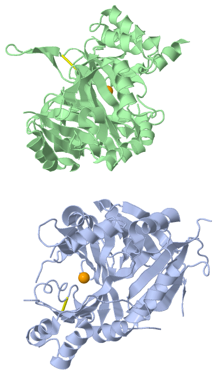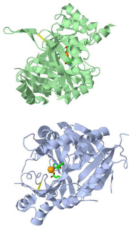 SCOP domains d1sp9a1 A:33-232 4-hydroxyphenylpyruvate dioxygenase, HppD d1sp9a2 A:233-428 4 -hydroxyphenylpyruvate dioxygenase, HppD SCOP domains