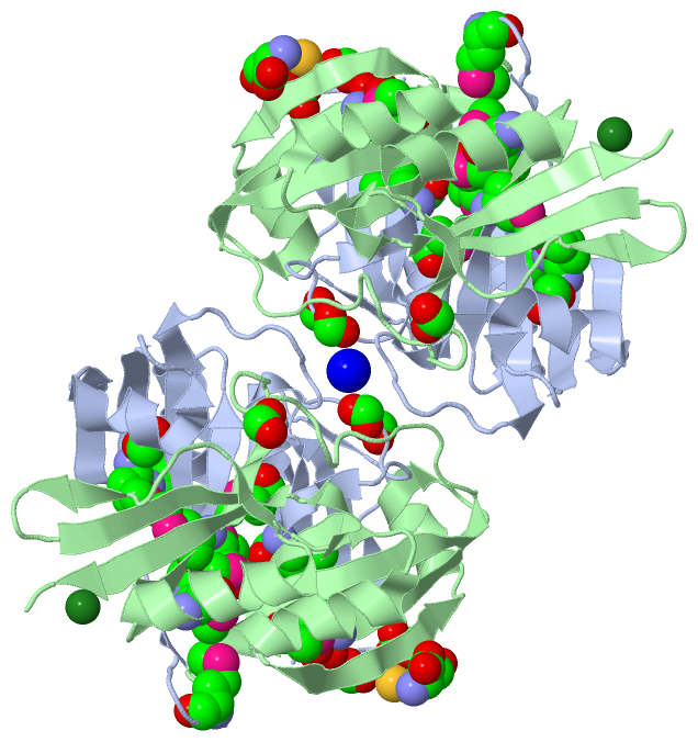 Asymmetric UnitChain A from PDB Type:PROTEIN Length:149 aligned with Q81F54_BACCR | Q81F54 from UniProtKB/TrEMBL Length:150 Alignment length:149 1 | 9 19 29 39 49 59 69 79 89 99 109 119 129 139 Q81F54_BACCR - -MAKNKLLRMDNVSIVVESLDNAISFFEEIGLNLEGRANVEGEWAGRVTGLGSQCVEIAMMVTPDGHSRIELSRFLTPPTIADHRTAPVNALGYLRVMFTVEDIDEMVSRLTKHGAELVGEVVQYENSYRLCYIRGVEGILIGLAEELG 148 SCOP domains d1ss4a_ A: Hypothetical protein BC1747 SCOP domains CATH domains 1ss4A00 A:0-148 2,3-Dihydroxybiphenyl 1,2-Dioxygenase, domain 1 CATH domains Pfam domains ----------------------------------------------------------------------------------------------------------------------------------------------------- Pfam domains SAPs(SNPs) ----------------------------------------------------------------------------------------------------------------------------------------------------- SAPs(SNPs) PROSITE ----------------------------------------------------------------------------------------------------------------------------------------------------- PROSITE Transcript ----------------------------------------------------------------------------------------------------------------------------------------------------- Transcript 1ss4 A 0 AmAKNKLLRmDNVSIVVESLDNAISFFEEIGLNLEGRANVEGEWAGRVTGLGSQCVEIAmmVTPDGHSRIELSRFLTPPTIADHRTAPVNALGYLRVmFTVEDIDEmVSRLTKHGAELVGEVVQYENSYRLCYIRGVEGILIGLAEELG 148 | 9 19 29 39 49 59| 69 79 89 |99 |109 119 129 139 | 9-MSE 59-MSE 97-MSE 106-MSE 1-MSE 60-MSE Chain B from PDB Type:PROTEIN Length:145 aligned with Q81F54_BACCR | Q81F54 from UniProtKB/TrEMBL Length:150 Alignment length:145 13 23 33 43 53 63 73 83 93 103 113 123 133 143 Q81F54_BACCR 4 NKLLRMDNVSIVVESLDNAISFFEEIGLNLEGRANVEGEWAGRVTGLGSQCVEIAMMVTPDGHSRIELSRFLTPPTIADHRTAPVNALGYLRVMFTVEDIDEMVSRLTKHGAELVGEVVQYENSYRLCYIRGVEGILIGLAEELG 148 SCOP domains d1ss4b_ B: Hypothetical protein BC1747 SCOP domains CATH domains 1ss4B00 B:4-148 2,3-Dihydroxybiphenyl 1,2-Dioxygenase, domain 1 CATH domains Pfam domains (1) ----------Glyoxalase_2-1ss4B01 B:14-144 ---- Pfam domains (1) Pfam domains (2) ----------Glyoxalase_2-1ss4B02 B:14-144 ---- Pfam domains (2) SAPs(SNPs) ------------------------------------------------------------------------------------------------------------------------------------------------- SAPs(SNPs) PROSITE ------------------------------------------------------------------------------------------------------------------------------------------------- PROSITE Transcript ------------------------------------------------------------------------------------------------------------------------------------------------- Transcript 1ss4 B 4 NKLLRmDNVSIVVESLDNAISFFEEIGLNLEGRANVEGEWAGRVTGLGSQCVEIAmmVTPDGHSRIELSRFLTPPTIADHRTAPVNALGYLRVmFTVEDIDEmVSRLTKHGAELVGEVVQYENSYRLCYIRGVEGILIGLAEELG 148 | 13 23 33 43 53 || 63 73 83 93 | 103 | 113 123 133 143 9-MSE 59-MSE 97-MSE 106-MSE 60-MSE