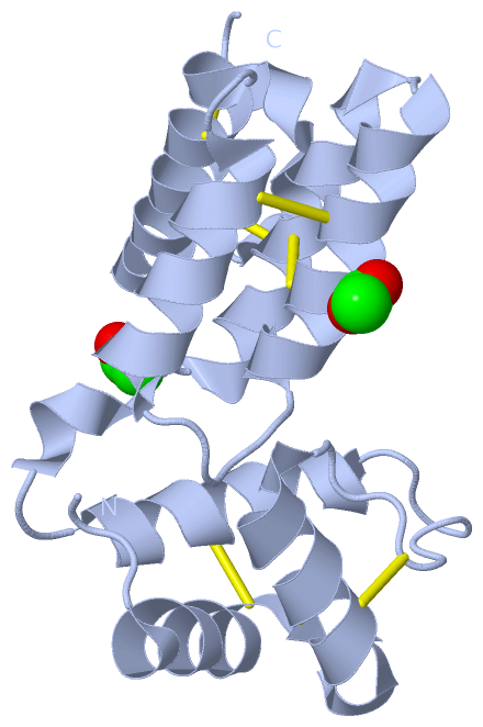 Asymmetric UnitChain A from PDB Type:PROTEIN Length:147 aligned with HER1_CAEEL | P34704 from UniProtKB/Swiss-Prot Length:175 Alignment length:147 27 37 47 57 67 77 87 97 107 117 127 137 147 157 HER1_CAEEL 18 TTLTKELIKDAAEKCCTRNRQECCIEIMKFGTPIRCGYDRDPKLPGYVYKCLQNVLFAKEPKKKINLDDSVCCSVFGNDQNDSGRRCENRCKNLMTSPSIDAATRLDSIKSCSLLDNVLYKCFEKCRSLRKDGIKIEVLQFEEYCNA 164 SCOP domains d1szha_ A: Her-1 SCOP domains CATH domains --------------------------------------------------------------------------------------------------------------------------------------------------- CATH domains Pfam domains --------------------------------------------------------------------------------------------------------------------------------------------------- Pfam domains SAPs(SNPs) --------------------------------------------------------------------------------------------------------------------------------------------------- SAPs(SNPs) PROSITE --------------------------------------------------------------------------------------------------------------------------------------------------- PROSITE Transcript --------------------------------------------------------------------------------------------------------------------------------------------------- Transcript 1szh A 18 STLTKELIKDAAEKCCTRNRQECCIEIMKFGTPIRCGYDRDPKLPGYVYKCLQNVLFAKEPKKKINLDDSVCCSVFGNDQEDSGRRCENRCKNLMTSPSIDAATRLDSIKSCSLLDNVLYKCFEKCRSLRKDGIKIEVLQFEEYCEA 164 27 37 47 57 67 77 87 97 107 117 127 137 147 157 Chain B from PDB Type:PROTEIN Length:143 aligned with HER1_CAEEL | P34704 from UniProtKB/Swiss-Prot Length:175 Alignment length:143 29 39 49 59 69 79 89 99 109 119 129 139 149 159 HER1_CAEEL 20 LTKELIKDAAEKCCTRNRQECCIEIMKFGTPIRCGYDRDPKLPGYVYKCLQNVLFAKEPKKKINLDDSVCCSVFGNDQNDSGRRCENRCKNLMTSPSIDAATRLDSIKSCSLLDNVLYKCFEKCRSLRKDGIKIEVLQFEEYC 162 SCOP domains d1szhb_ B: Her-1 SCOP domains CATH domains ----------------------------------------------------------------------------------------------------------------------------------------------- CATH domains Pfam domains ----------------------------------------------------------------------------------------------------------------------------------------------- Pfam domains SAPs(SNPs) ----------------------------------------------------------------------------------------------------------------------------------------------- SAPs(SNPs) PROSITE ----------------------------------------------------------------------------------------------------------------------------------------------- PROSITE Transcript ----------------------------------------------------------------------------------------------------------------------------------------------- Transcript 1szh B 20 LTKELIKDAAEKCCTRNRQECCIEIMKFGTPIRCGYDRDPKLPGYVYKCLQNVLFAKEPKKKINLDDSVCCSVFGNDQEDSGRRCENRCKNLMTSPSIDAATRLDSIKSCSLLDNVLYKCFEKCRSLRKDGIKIEVLQFEEYC 162 29 39 49 59 69 79 89 99 109 119 129 139 149 159