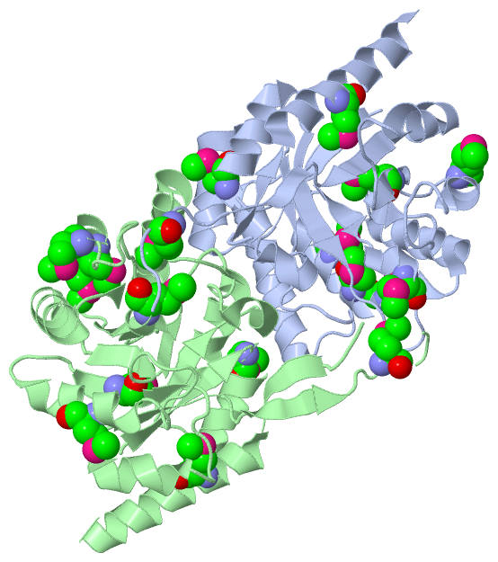 Asymmetric/Biological UnitChain A from PDB Type:PROTEIN Length:234 aligned with CUTC_SHIFL | P67825 from UniProtKB/Swiss-Prot Length:248 Alignment length:247 11 21 31 41 51 61 71 81 91 101 111 121 131 141 151 161 171 181 191 201 211 221 231 241 CUTC_SHIFL 2 ALLEICCYSMECALTAQQNGADRVELCAAPKEGGLTPSLGVLKSVRQRVTIPVHPIIRPRGGDFCYSDGEFAAILEDVRTVRELGFPGLVTGVLDVDGNVDMPRMEKIMAAAGPLAVTFHRAFDMCANPLYTLNNLAELGIARVLTSGQKSDALQGLSKIMELIAHRDAPIIMAGAGVRAENLHHFLDAGVLEVHSSAGAWQASPMRYRNQGLSMSSDEHADEYSRYIVDGAAVAEMKGIIERHQAK 248 SCOP domains d1twda_ A: Copper homeostasis protein CutC SCOP domains CATH domains 1twdA00 A:2-248 CutC-like (Pfam 03932) CATH domains Pfam domains ------------------------------------------------------------------------------------------------------------------------------------------------------------------------------------------------------------------------------------------------------- Pfam domains SAPs(SNPs) ------------------------------------------------------------------------------------------------------------------------------------------------------------------------------------------------------------------------------------------------------- SAPs(SNPs) PROSITE ------------------------------------------------------------------------------------------------------------------------------------------------------------------------------------------------------------------------------------------------------- PROSITE Transcript ------------------------------------------------------------------------------------------------------------------------------------------------------------------------------------------------------------------------------------------------------- Transcript 1twd A 2 ALLEICCYSmECALTAQQNGADRVELCAAPKEGGLTPSLGVLKSVRQRVTIPVHPIIRPRGGDFCYSDGEFAAILEDVRTVRELGFPGLVTGVLDVDGNVDmPRmEKImAAAGPLAVTFHRAFDmCANPLYTLNNLAELGIARVLTSGQKSDALQGLSKImELIAHRDAPIImAGAGVRAENLHHFLDAGVLEVHSSAGAWQASPmRYRN-------------YSRYIVDGAAVAEmKGIIERHQAK 248 11 21 31 41 51 61 71 81 91 101 | | 111 121 | 131 141 151 161| 171 | 181 191 201 | 211 - | 231 |241 11-MSE 103-MSE | 126-MSE 162-MSE 174-MSE 207-MSE 225 238-MSE 106-MSE 110-MSE Chain B from PDB Type:PROTEIN Length:235 aligned with CUTC_SHIFL | P67825 from UniProtKB/Swiss-Prot Length:248 Alignment length:248 248 11 21 31 41 51 61 71 81 91 101 111 121 131 141 151 161 171 181 191 201 211 221 231 241 | CUTC_SHIFL 2 ALLEICCYSMECALTAQQNGADRVELCAAPKEGGLTPSLGVLKSVRQRVTIPVHPIIRPRGGDFCYSDGEFAAILEDVRTVRELGFPGLVTGVLDVDGNVDMPRMEKIMAAAGPLAVTFHRAFDMCANPLYTLNNLAELGIARVLTSGQKSDALQGLSKIMELIAHRDAPIIMAGAGVRAENLHHFLDAGVLEVHSSAGAWQASPMRYRNQGLSMSSDEHADEYSRYIVDGAAVAEMKGIIERHQAK- - SCOP domains d1twdb_ B: Copper homeostasis protein CutC SCOP domains CATH domains 1twdB00 B:2-249 CutC-like (Pfam 03932) CATH domains Pfam domains (1) CutC-1twdB01 B:2-201 ------------------------------------------------ Pfam domains (1) Pfam domains (2) CutC-1twdB02 B:2-201 ------------------------------------------------ Pfam domains (2) SAPs(SNPs) -------------------------------------------------------------------------------------------------------------------------------------------------------------------------------------------------------------------------------------------------------- SAPs(SNPs) PROSITE -------------------------------------------------------------------------------------------------------------------------------------------------------------------------------------------------------------------------------------------------------- PROSITE Transcript -------------------------------------------------------------------------------------------------------------------------------------------------------------------------------------------------------------------------------------------------------- Transcript 1twd B 2 ALLEICCYSmECALTAQQNGADRVELCAAPKEGGLTPSLGVLKSVRQRVTIPVHPIIRPRGGDFCYSDGEFAAILEDVRTVRELGFPGLVTGVLDVDGNVDmPRmEKImAAAGPLAVTFHRAFDmCANPLYTLNNLAELGIARVLTSGQKSDALQGLSKImELIAHRDAPIImAGAGVRAENLHHFLDAGVLEVHSSAGAWQASPmRYR-------------EYSRYIVDGAAVAEmKGIIERHQAKL 249 11 21 31 41 51 61 71 81 91 101 | | 111 121 | 131 141 151 161| 171 | 181 191 201 | |- - | 231 |241 11-MSE 103-MSE | 126-MSE 162-MSE 174-MSE 207-MSE 224 238-MSE 106-MSE 210 110-MSE