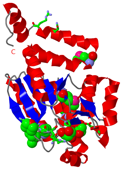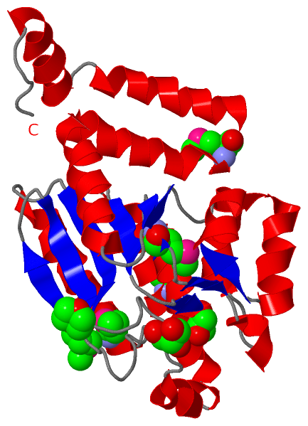 Asymmetric UnitChain A from PDB Type:PROTEIN Length:253 aligned with P83702_THETH | P83702 from UniProtKB/TrEMBL Length:253 Alignment length:253 10 20 30 40 50 60 70 80 90 100 110 120 130 140 150 160 170 180 190 200 210 220 230 240 250 P83702_THETH 1 MVQVEKGHVAVVFLNDPERRNPLSPEMALSLLQALDDLEADPGVRAVVLTGRGKAFSAGADLAFLERVTELGAEENYRHSLSLMRLFHRVYTYPKPTVAAVNGPAVAGGAGLALACDLVVMDEEARLGYTEVKIGFVAALVSVILVRAVGEKAAKDLLLTGRLVEAREAKALGLVNRIAPPGKALEEAKALAEEVAKNAPTSLRLTKELLLALPGMGLEDGFRLAALANAWVRETGDLAEGIRAFFEKRPPRF 253 SCOP domains d1uiya_ A: Enoyl-CoA hydratase (crotonase) SCOP domains CATH domains -1uiyA01 A:2-198 2-enoyl-CoA Hydratase; Chain A, domain 1 1uiyA02 A:199-253 CATH domains Pfam domains --ECH-1uiyA01 A:3-248 ----- Pfam domains SAPs(SNPs) ------------------------------------------------------------------------------------------------------------------------------------------------------------------------------------------------------------------------------------------------------------- SAPs(SNPs) PROSITE ------------------------------------------------------------------------------------------------------------------------------------------------------------------------------------------------------------------------------------------------------------- PROSITE Transcript ------------------------------------------------------------------------------------------------------------------------------------------------------------------------------------------------------------------------------------------------------------- Transcript 1uiy A 1 mVQVEKGHVAVVFLNDPERRNPLSPEmALSLLQALDDLEADPGVRAVVLTGRGKAFSAGADLAFLERVTELGAEENYRHSLSLmRLFHRVYTYPKPTVAAVNGPAVAGGAGLALACDLVVmDEEARLGYTEVKIGFVAALVSVILVRAVGEKAAKDLLLTGRLVEAREAKALGLVNRIAPPGKALEEAKALAEEVAKNAPTSLRLTKELLLALPGmGLEDGFRLAALANAWVRETGDLAEGIRAFFEKRPPRF 253 | 10 20 | 30 40 50 60 70 80 | 90 100 110 120| 130 140 150 160 170 180 190 200 210 | 220 230 240 250 | 27-MSE 84-MSE 121-MSE 216-MSE 1-MSE