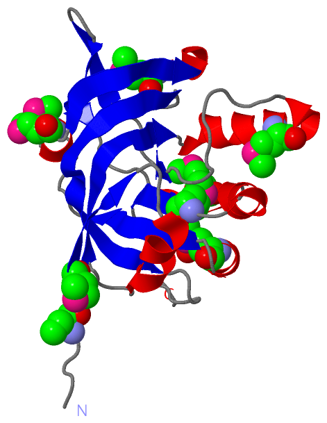 Asymmetric/Biological UnitChain A from PDB Type:PROTEIN Length:184 aligned with O29167_ARCFU | O29167 from UniProtKB/TrEMBL Length:180 Alignment length:184 1 | 6 16 26 36 46 56 66 76 86 96 106 116 126 136 146 156 166 176 O29167_ARCFU - ----MVMEYELRTPLVKDQILKLKVGDVVYITGEIFTARDEAHARALEWMEEGKELPFSFDKGVVYHCGPLVKKNDEWRVVSAGPTTSARMNPFTPKILEKVECMGIIGKGGMSEEVVEAMRGKAAYFAFTGGAGALAAMSIKKVKGVVWEDLGMPEAVWLLEVERFGPCIVAIDAHGNSLYRR 180 SCOP domains d2isba_ A: Fumarate hydratase class I beta subunit SCOP domains CATH domains 2isbA00 A:-3-180 fumarase CATH domains Pfam domains ---------------------------------------------------------------------------------------------------------------------------------------------------------------------------------------- Pfam domains SAPs(SNPs) ---------------------------------------------------------------------------------------------------------------------------------------------------------------------------------------- SAPs(SNPs) PROSITE ---------------------------------------------------------------------------------------------------------------------------------------------------------------------------------------- PROSITE Transcript ---------------------------------------------------------------------------------------------------------------------------------------------------------------------------------------- Transcript 2isb A -3 HHHHmVmEYELRTPLVKDQILKLKVGDVVYITGEIFTARDEAHARALEWmEEGKELPFSFDKGVVYHCGPLVKKNDEWRVVSAGPTTSARmNPFTPKILEKVECmGIIGKGGmSEEVVEAmRGKAAYFAFTGGAGALAAmSIKKVKGVVWEDLGmPEAVWLLEVERFGPCIVAIDAHGNSLYRR 180 | | 6 16 26 36 46 56 66 76 86| 96 | 106 | 116| 126 136 146 | 156 166 176 | | 46-MSE 87-MSE 101-MSE 109-MSE 117-MSE 136-MSE 151-MSE 1-MSE 3-MSE